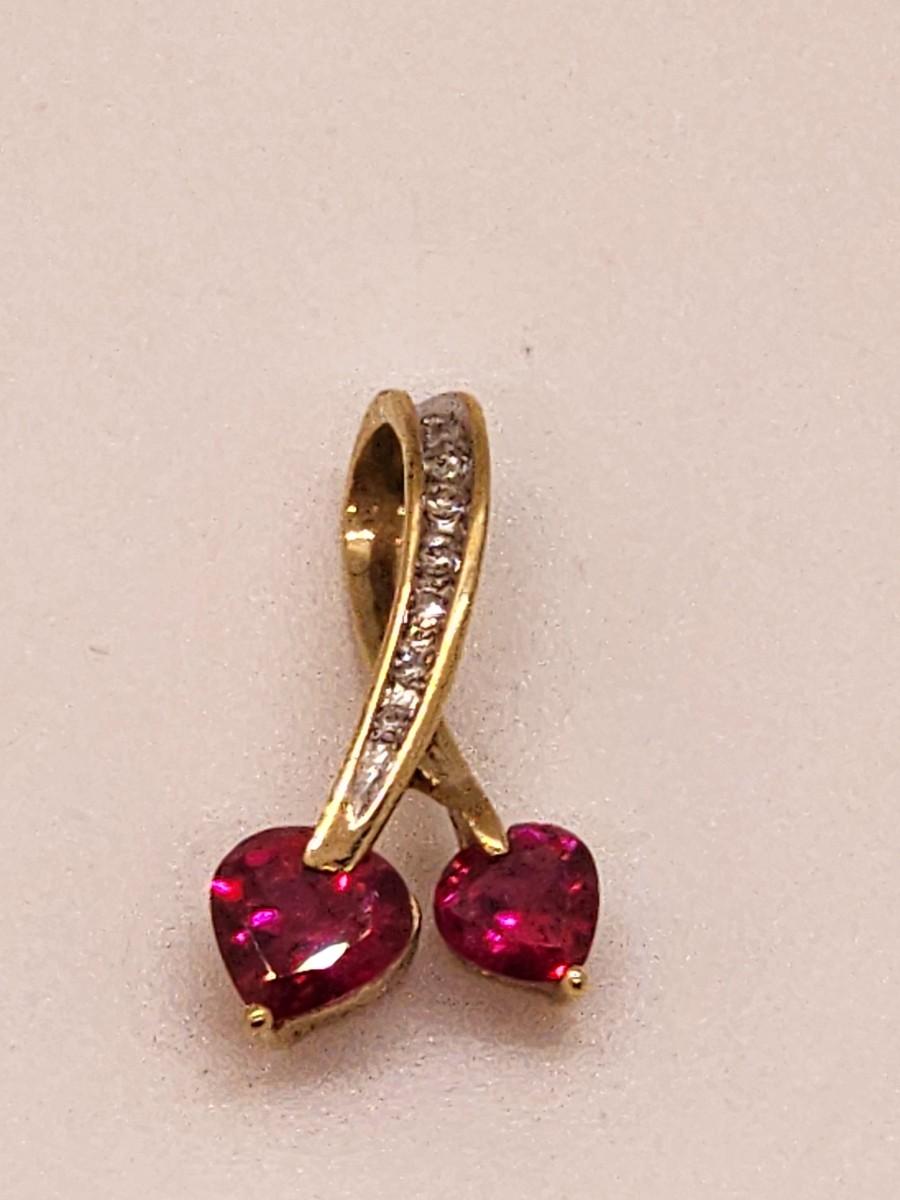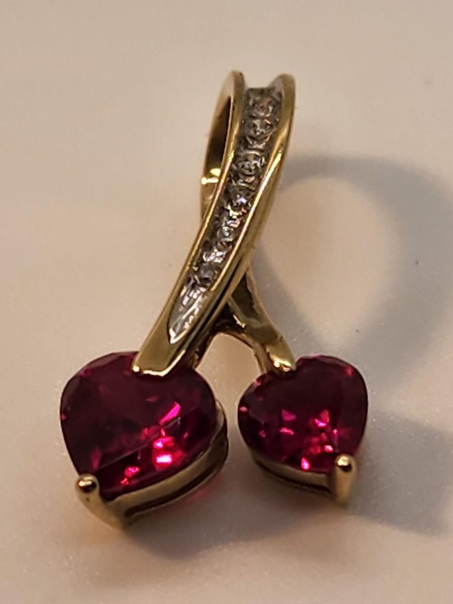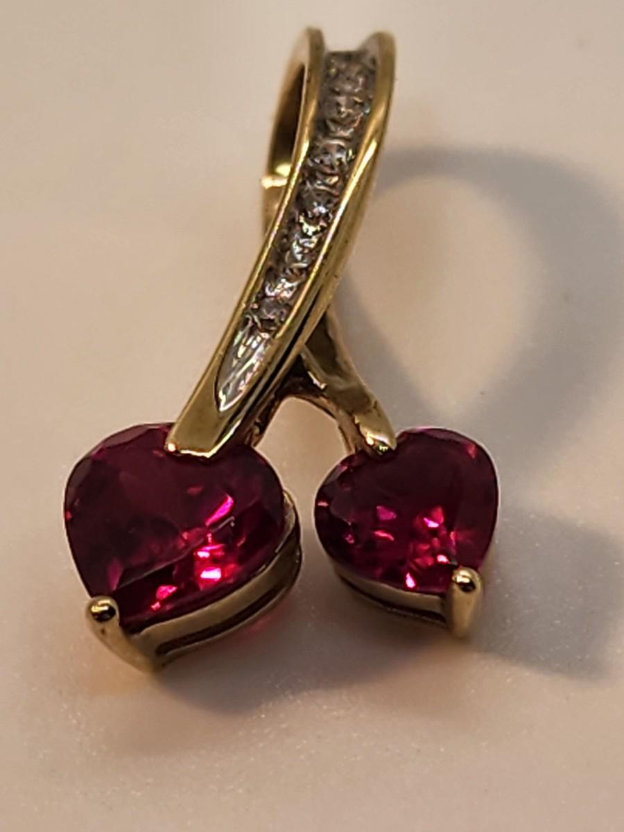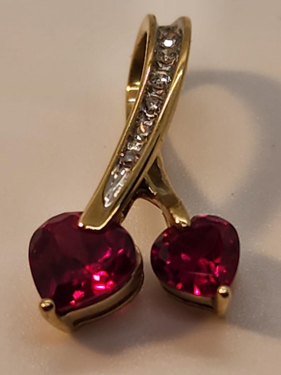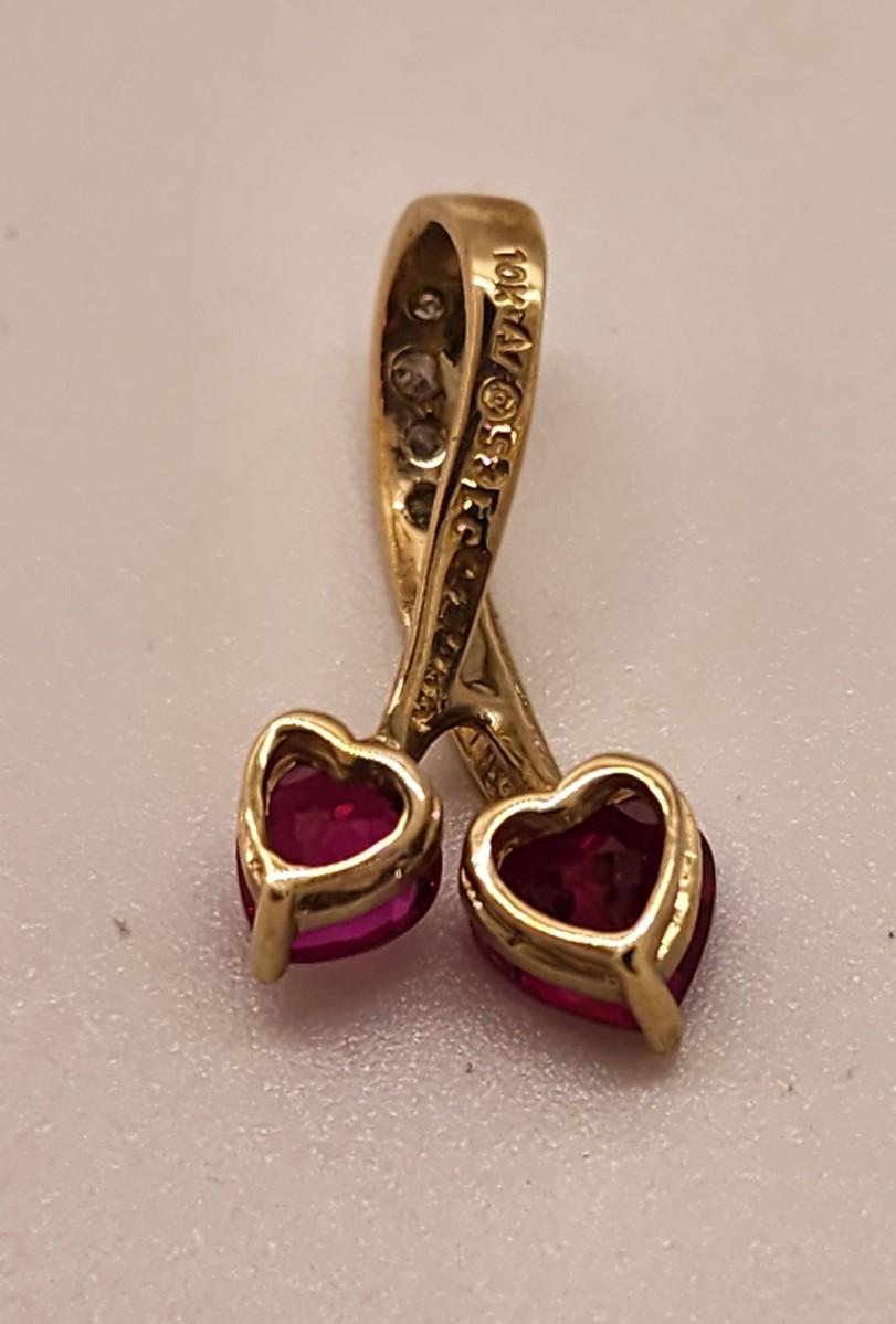 LOT 2:: 1.4g 10k yellow gold Ruby and Diamond Double Heart Pendant
