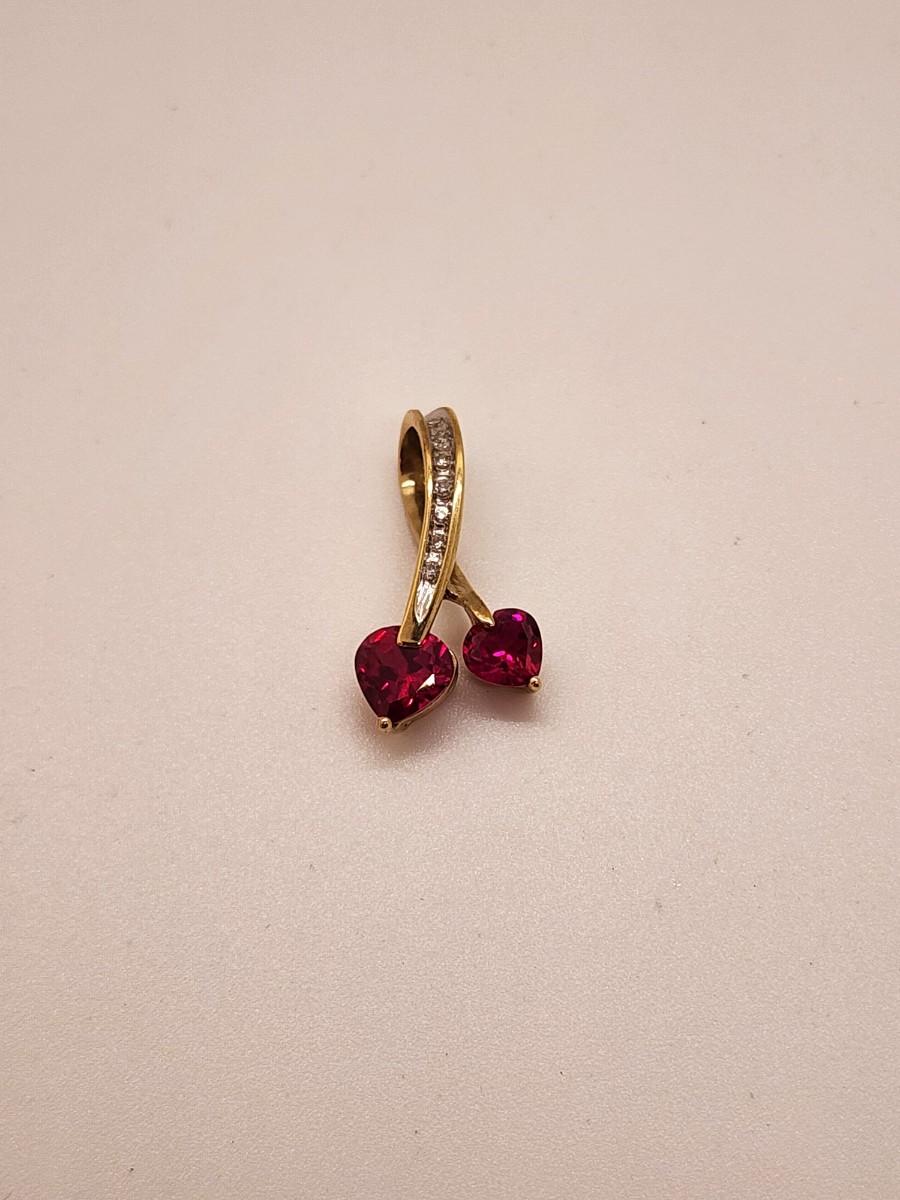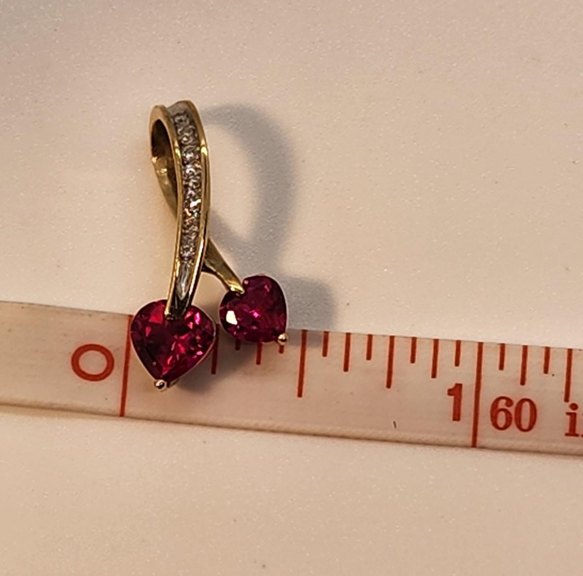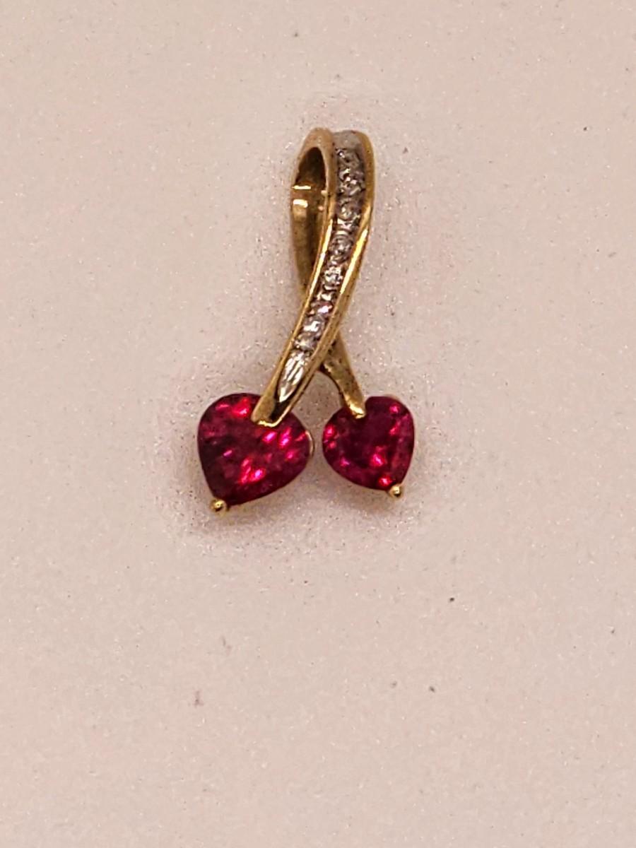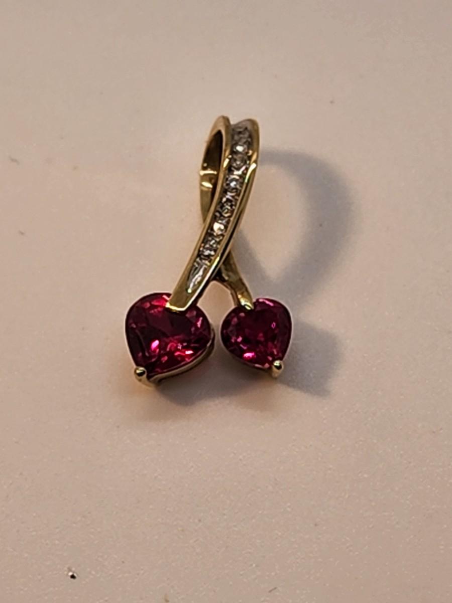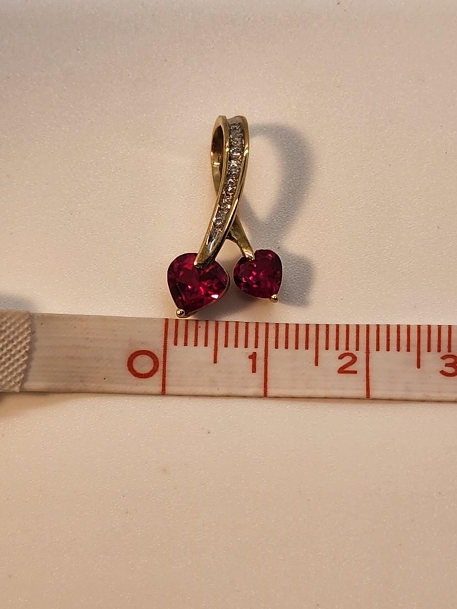 LOT 2:: 1.4g 10k yellow gold Ruby and Diamond Double Heart Pendant