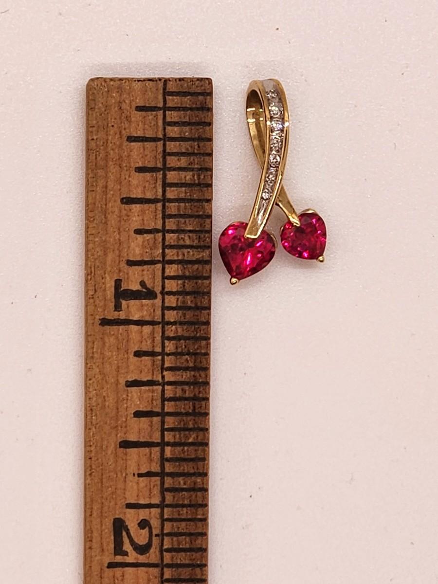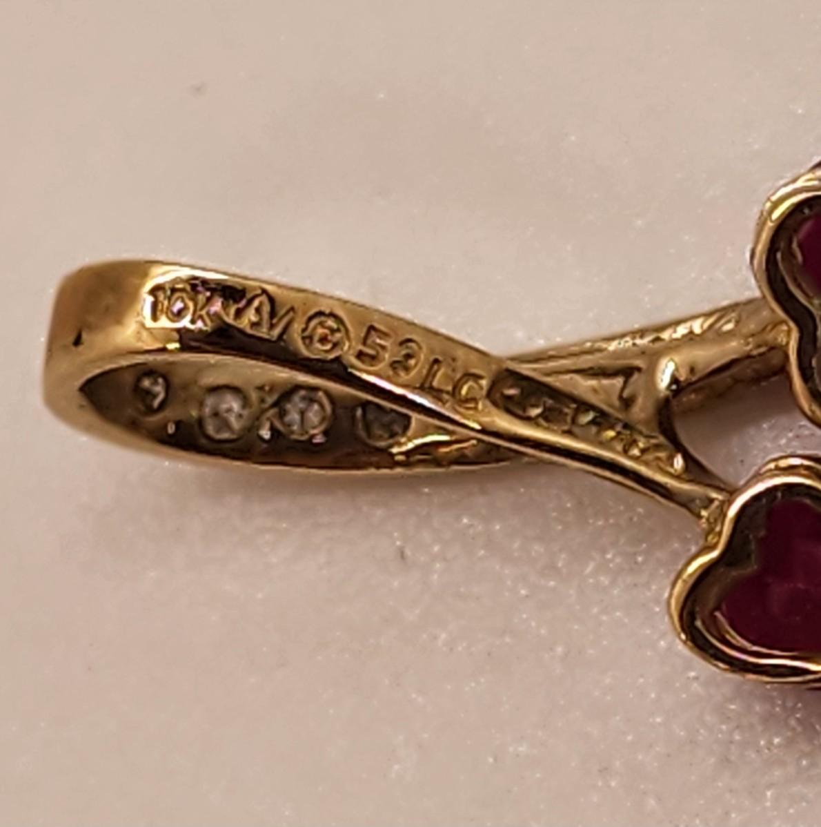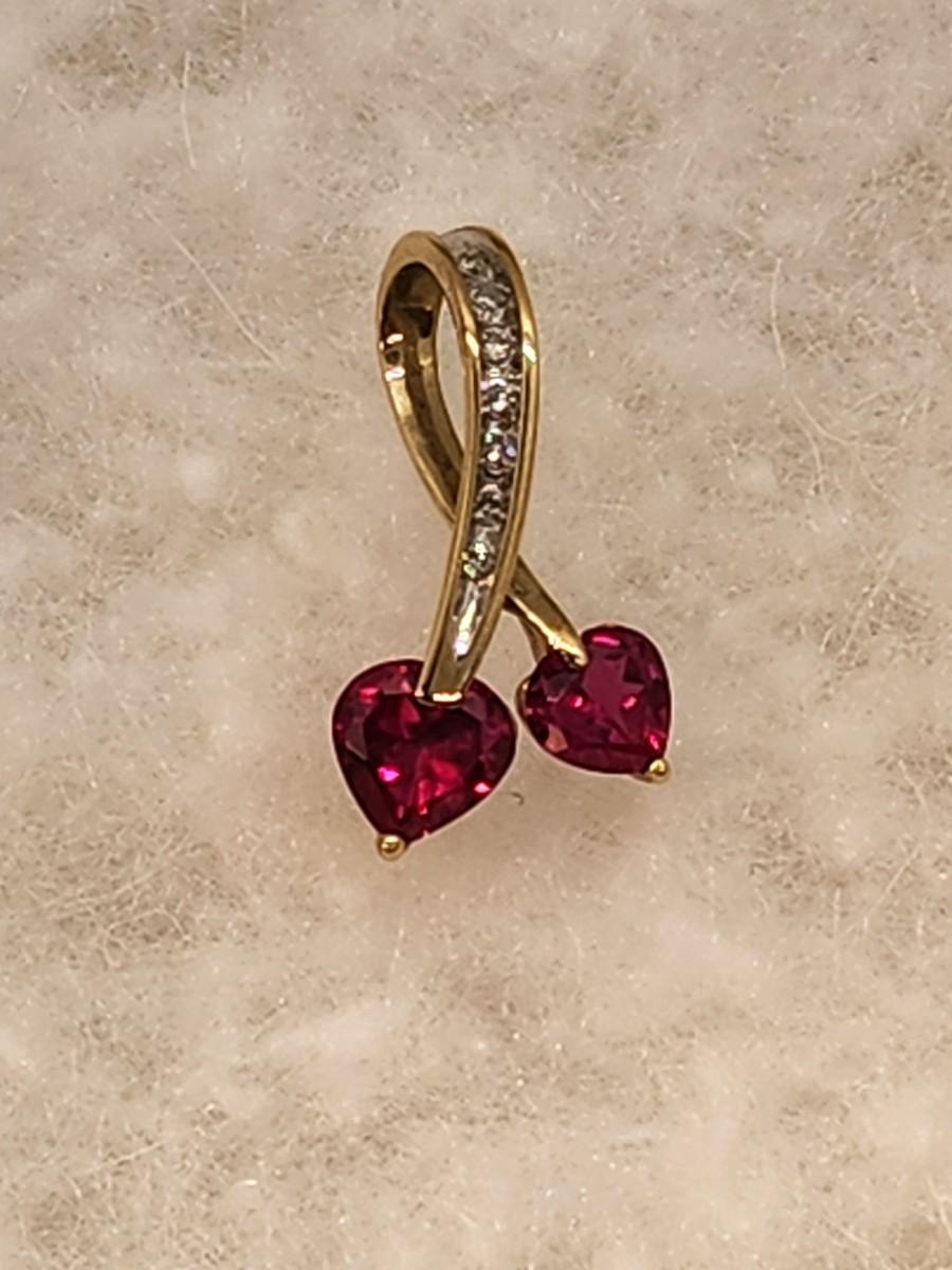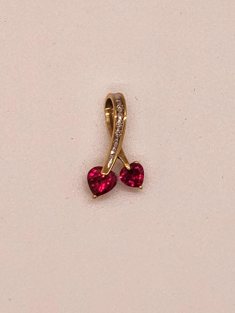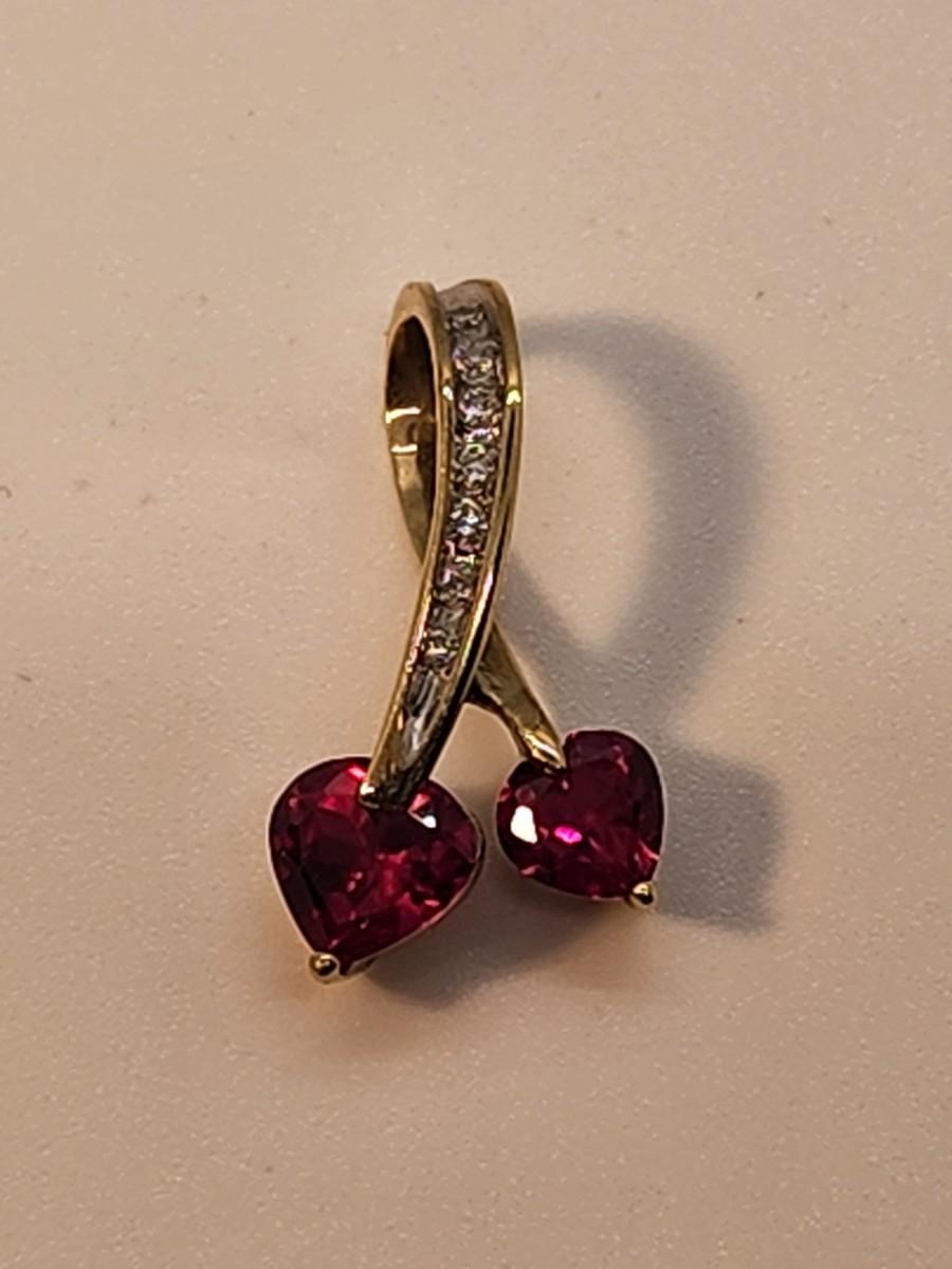 LOT 2:: 1.4g 10k yellow gold Ruby and Diamond Double Heart Pendant