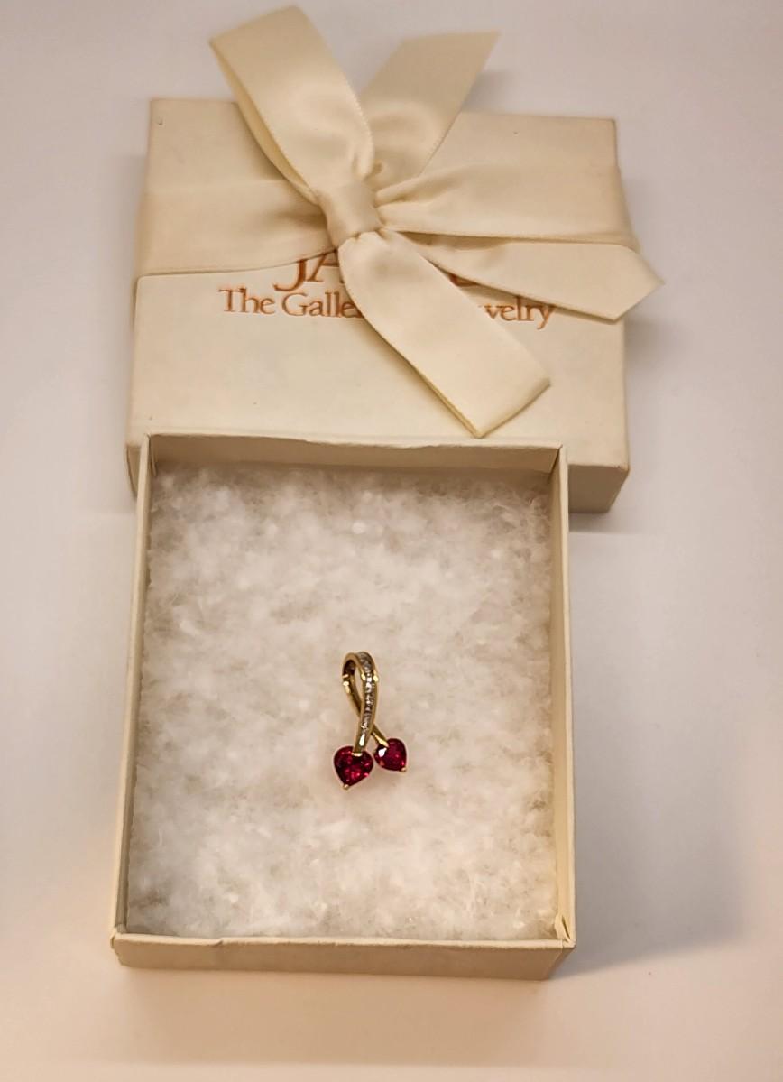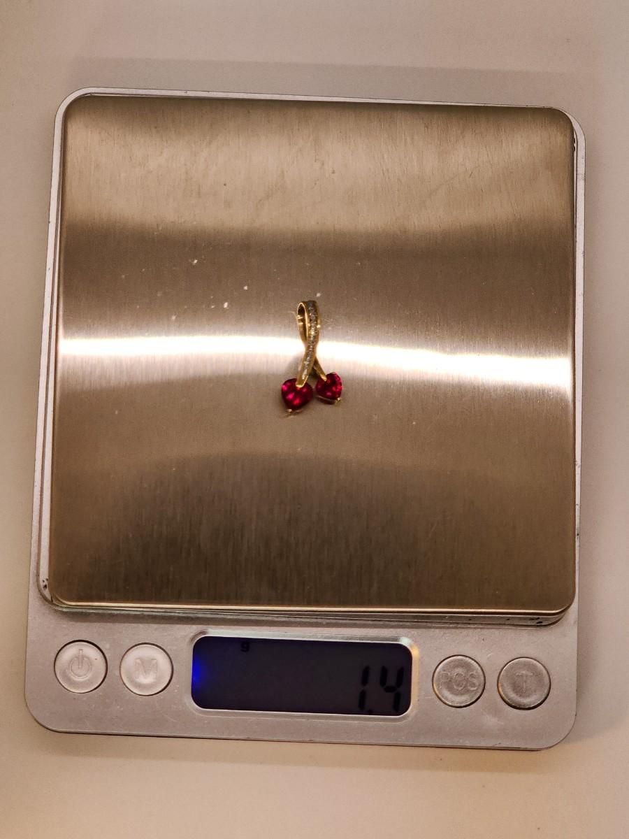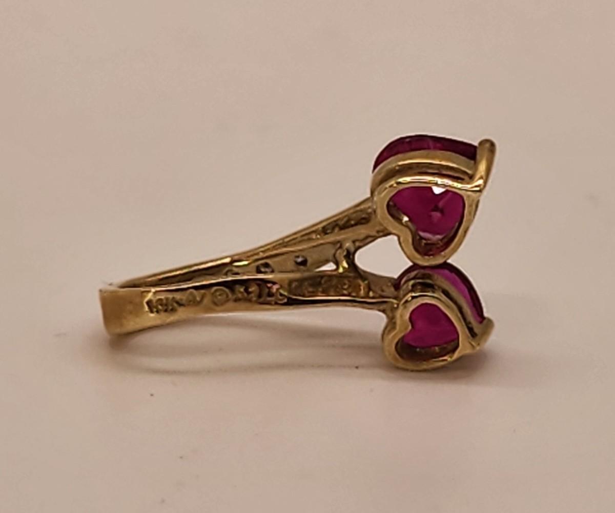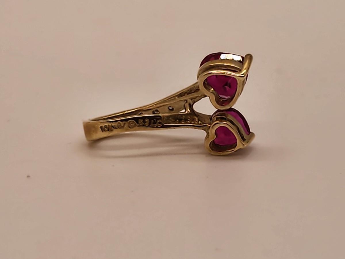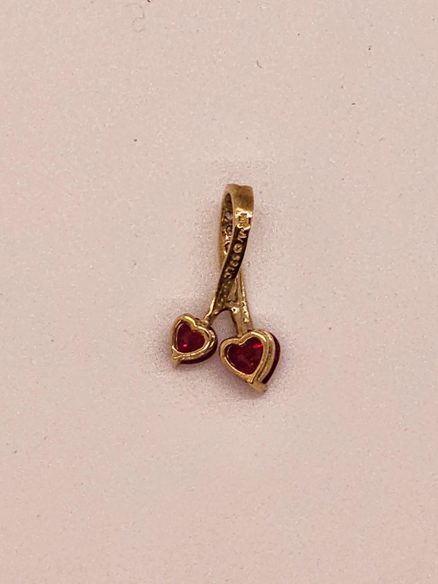 LOT 2:: 1.4g 10k yellow gold Ruby and Diamond Double Heart Pendant