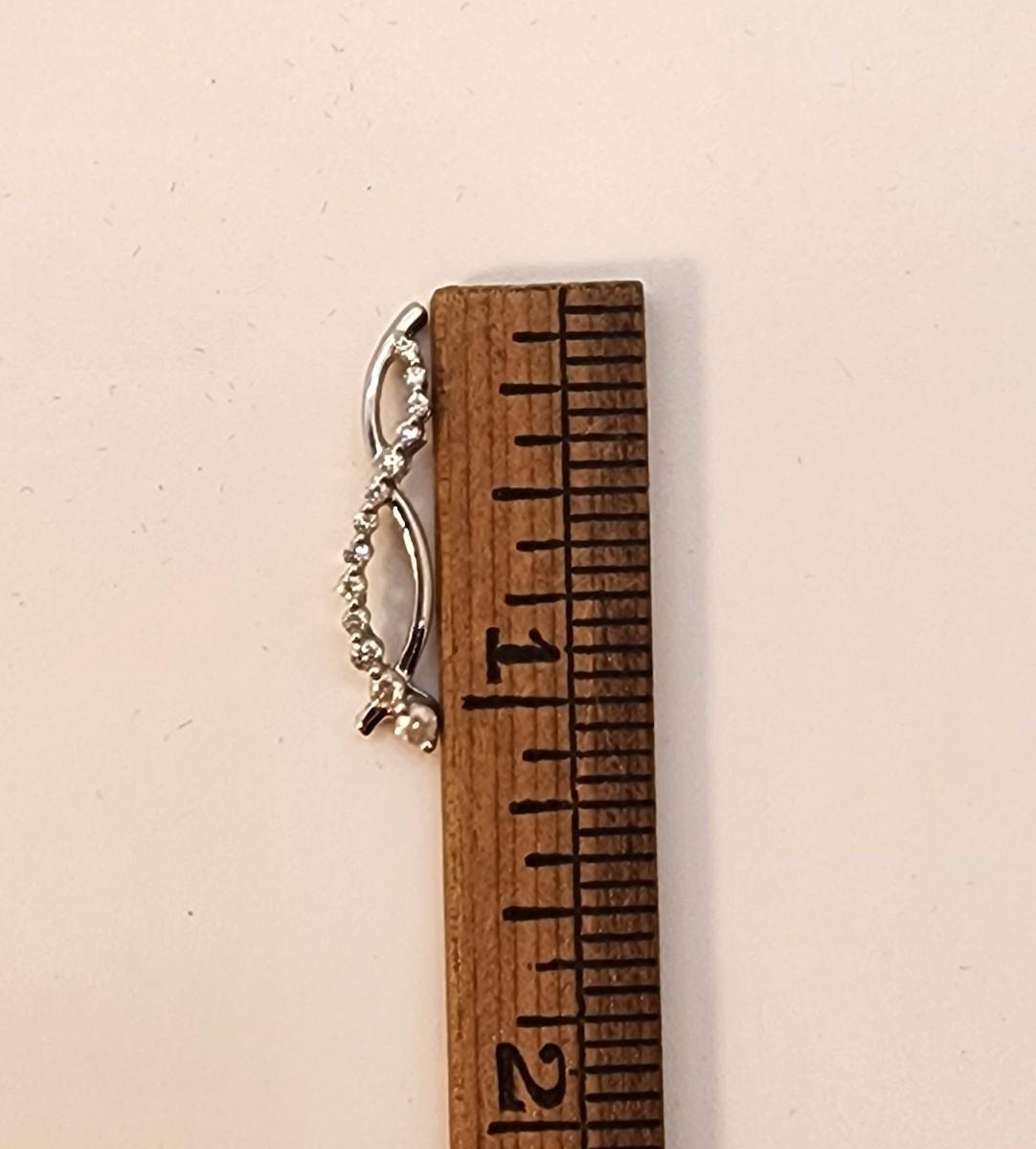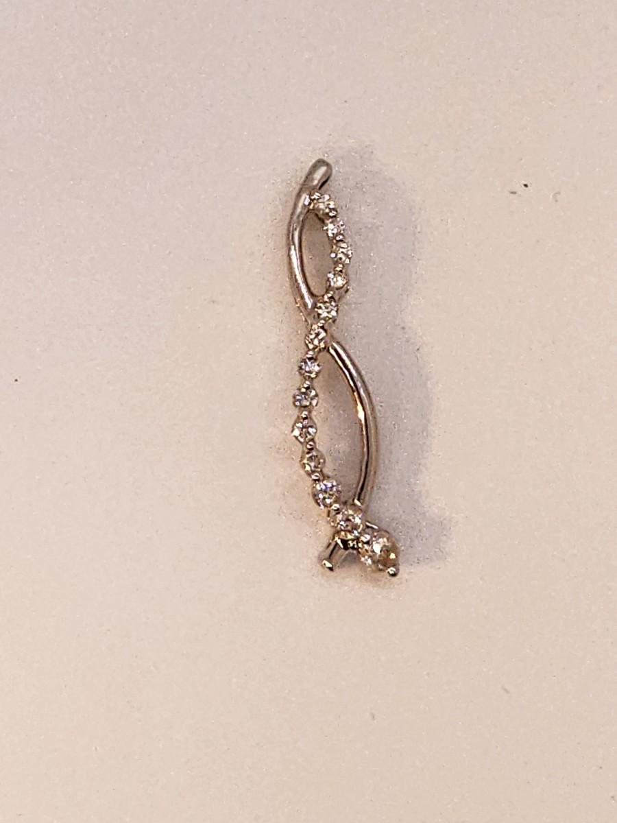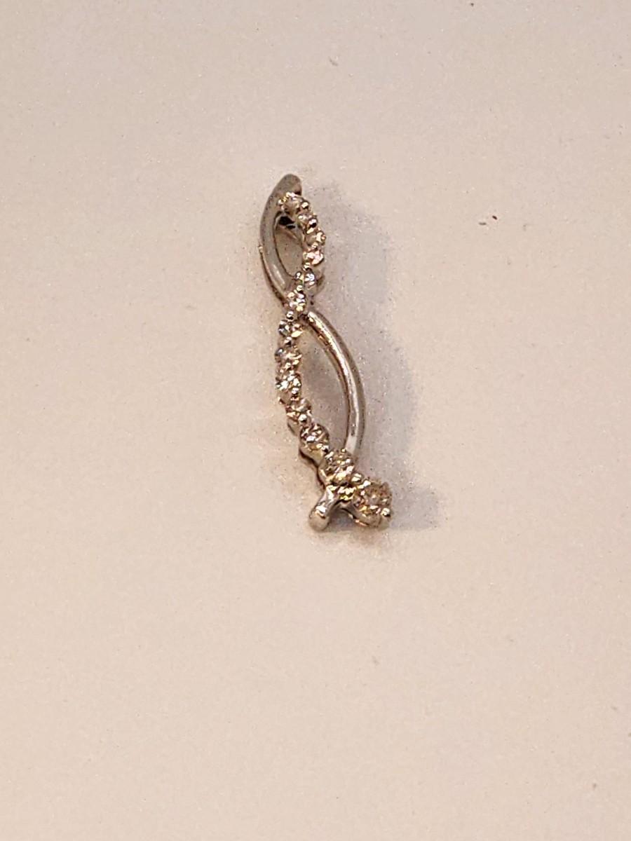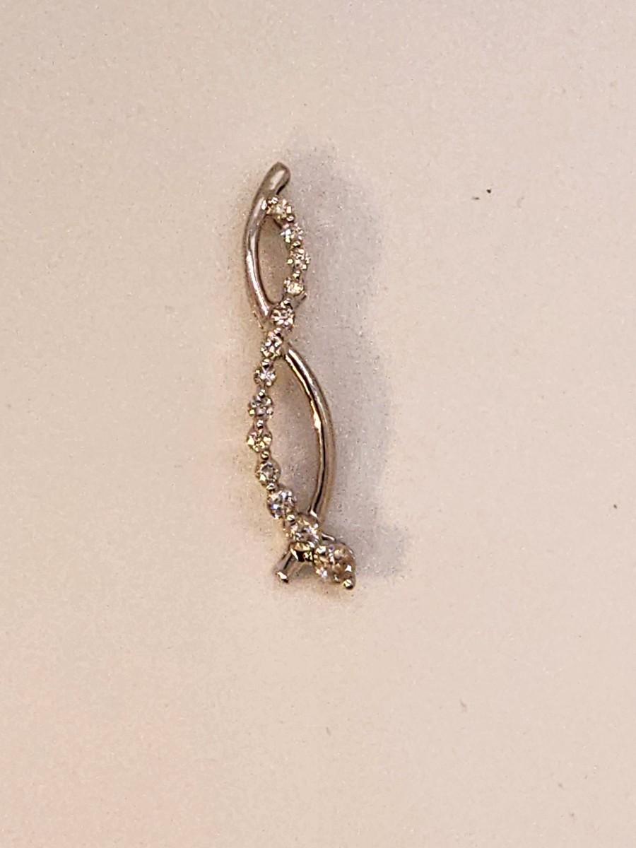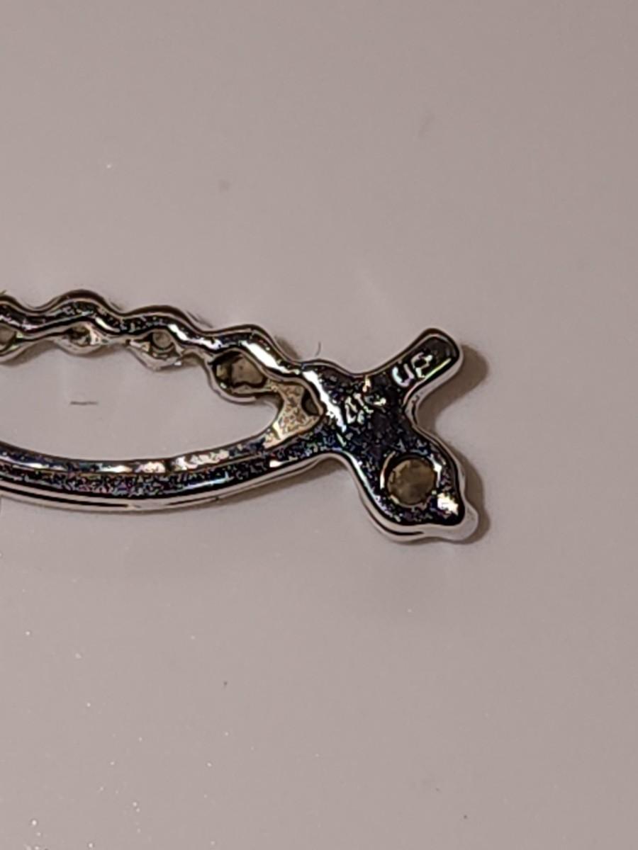 LOT 8:: 1.3g 14k White Gold Diamond Infinety Pendant marked 14k UP has 13 graduated size diamond chipst