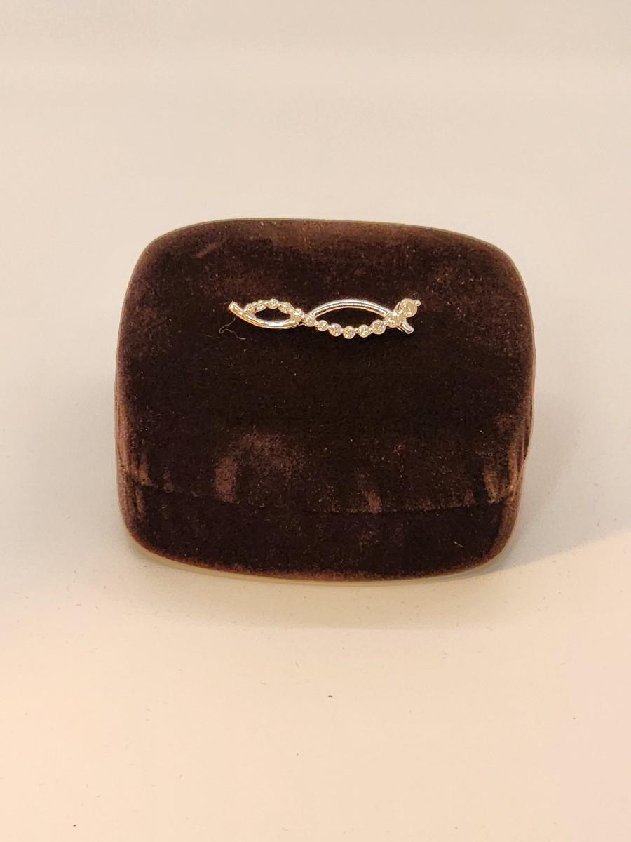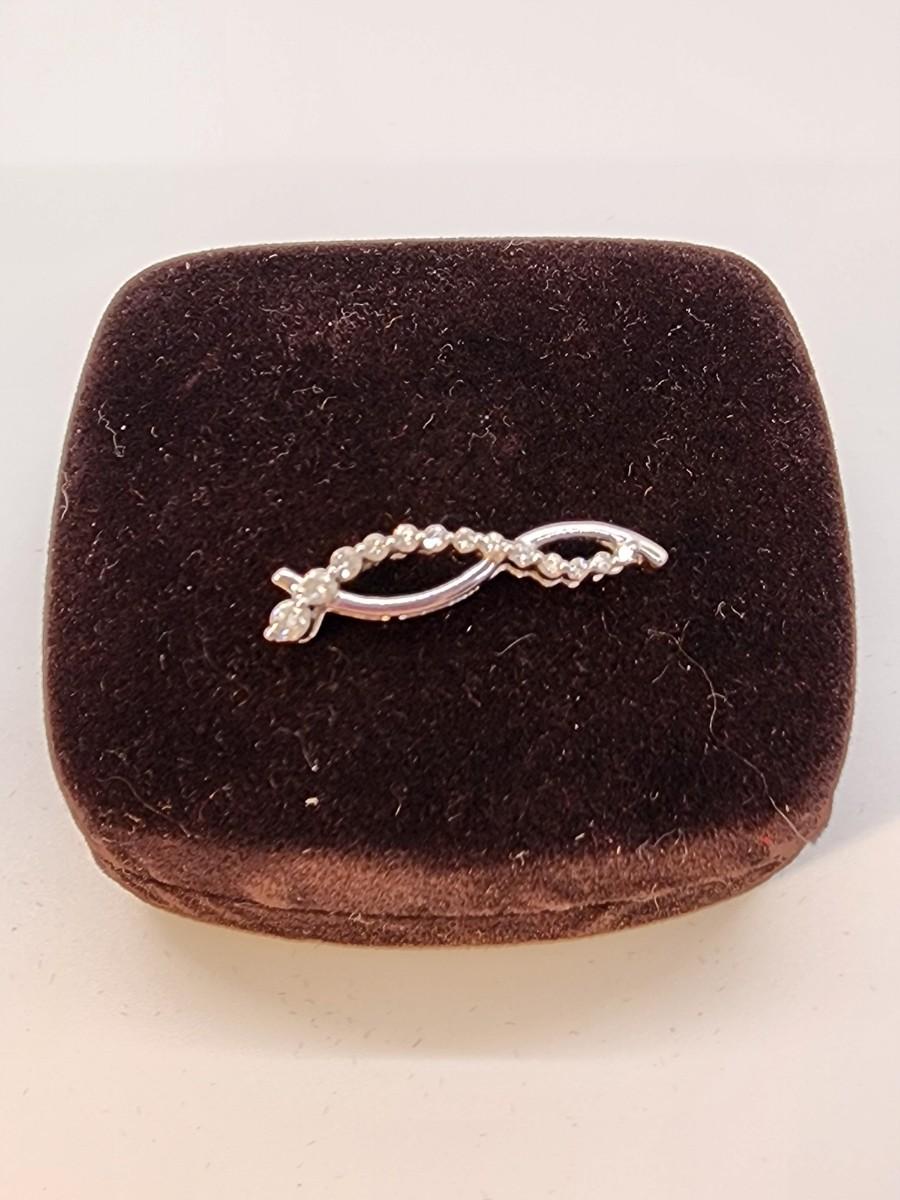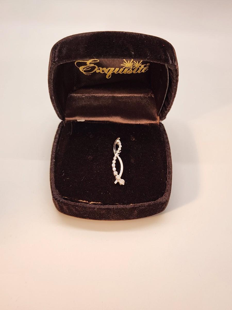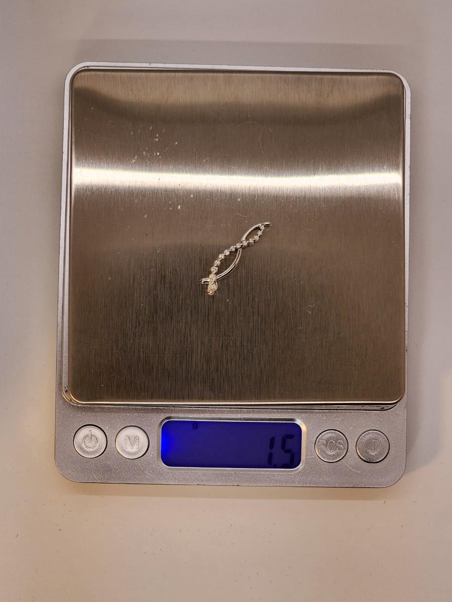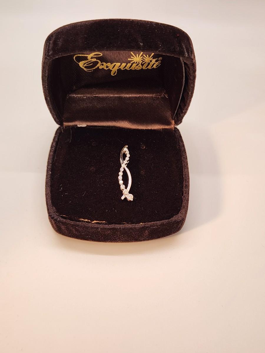 LOT 8:: 1.3g 14k White Gold Diamond Infinety Pendant marked 14k UP has 13 graduated size diamond chipst