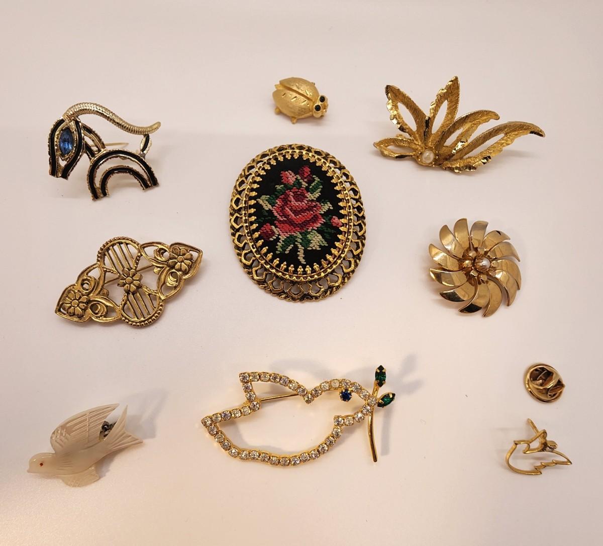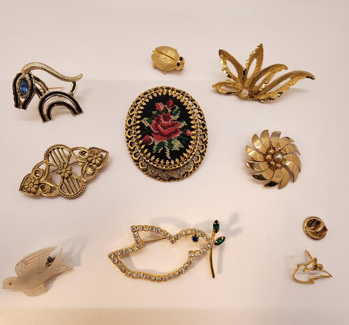 LOT 13:: Nine Pins and Brooches