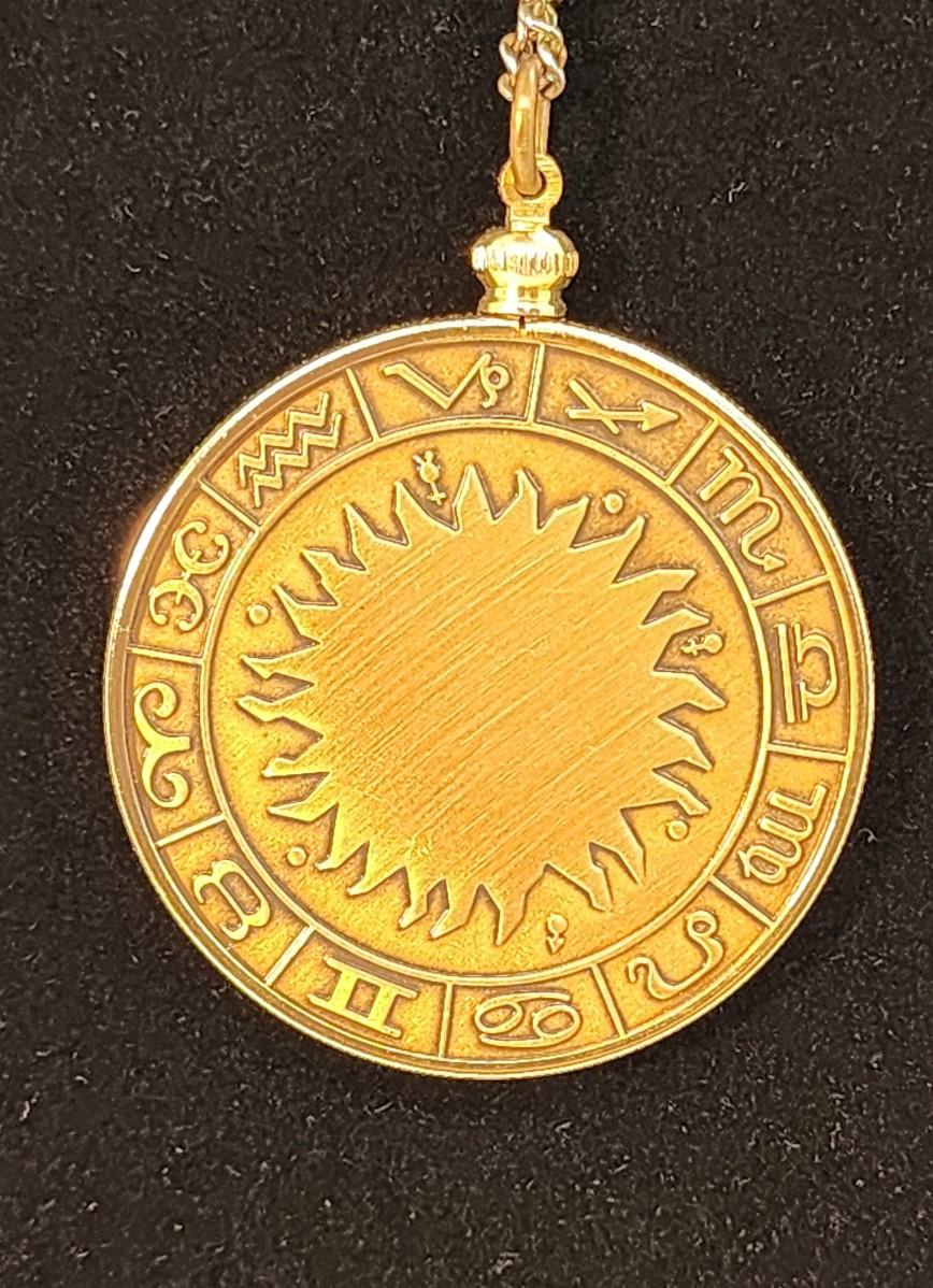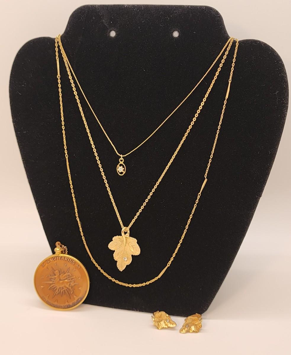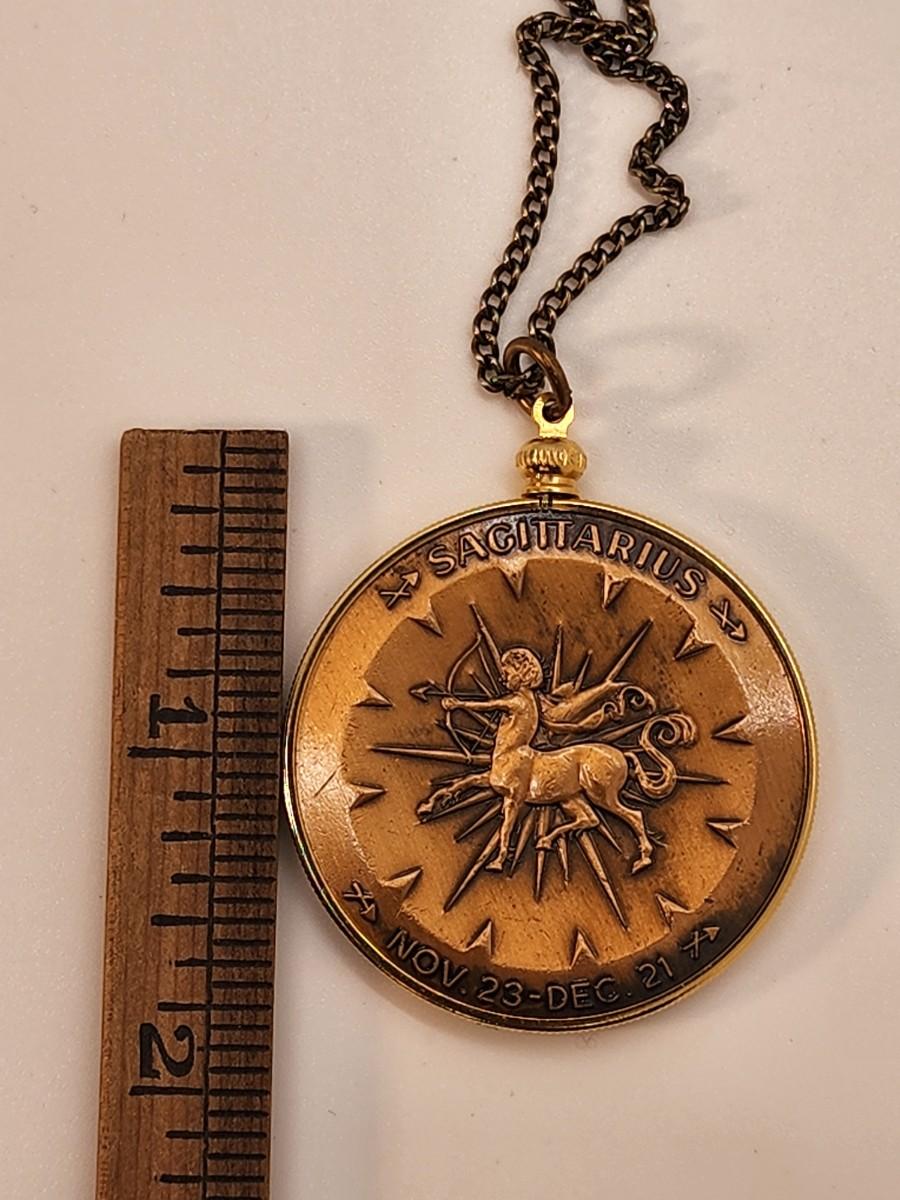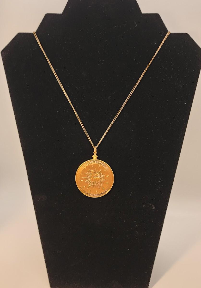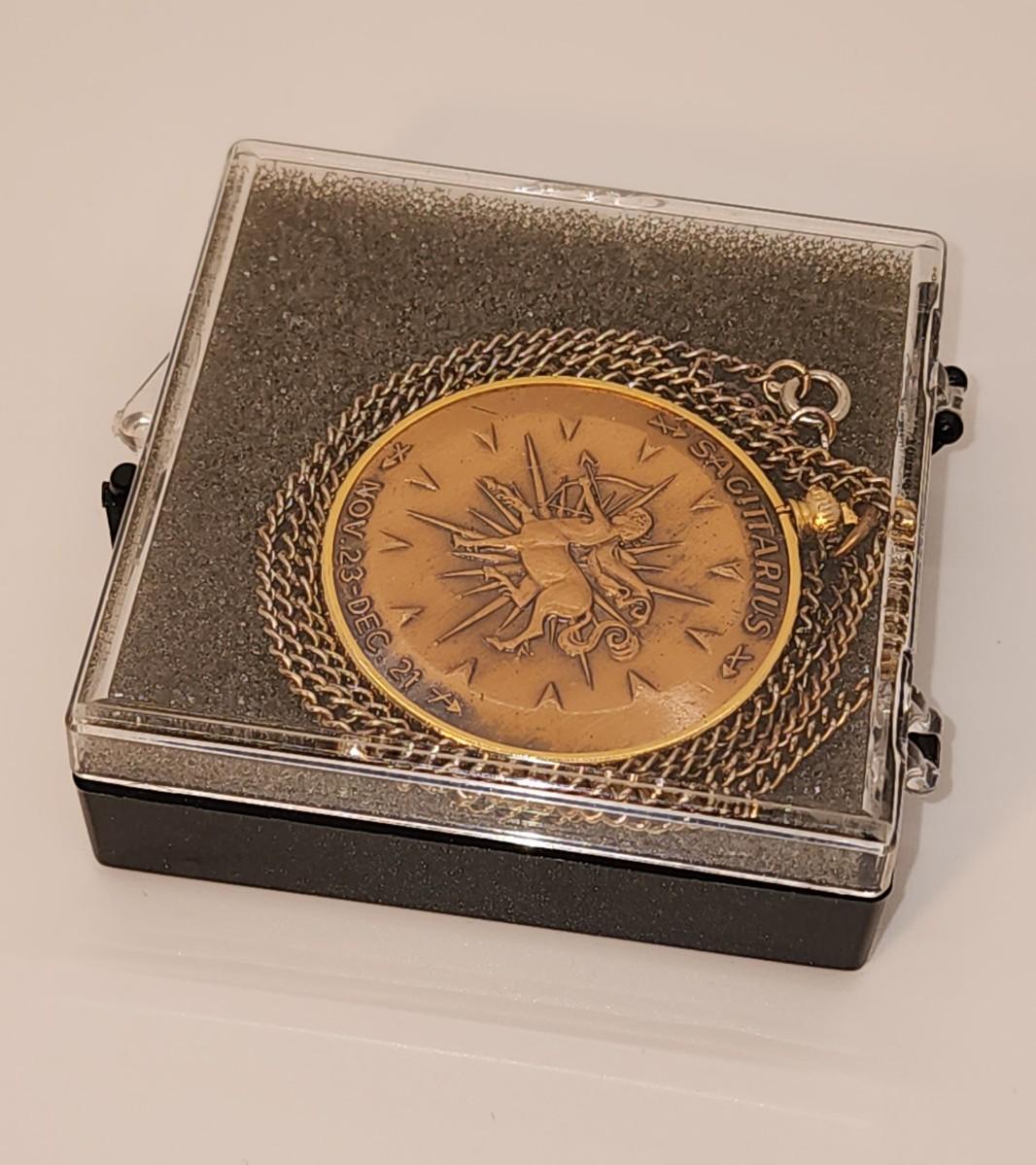 LOT 20:: Sagittarius Medallion necklace, new in box, 1/20 14k GF gold necklace and Avon Set