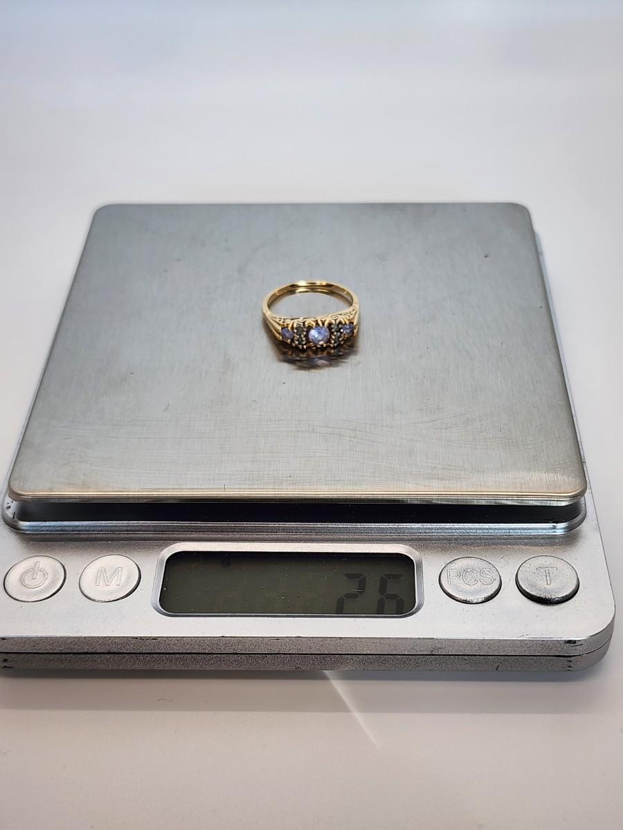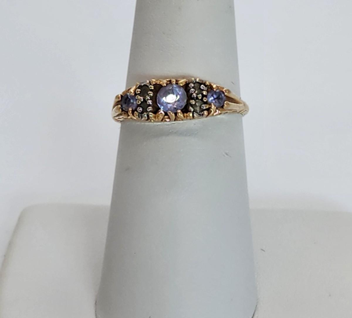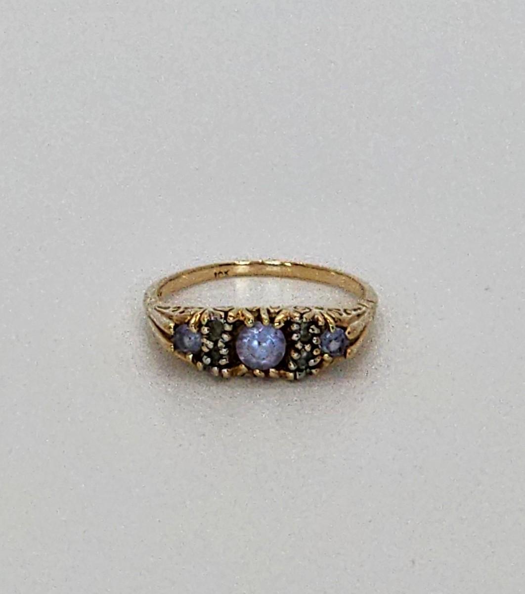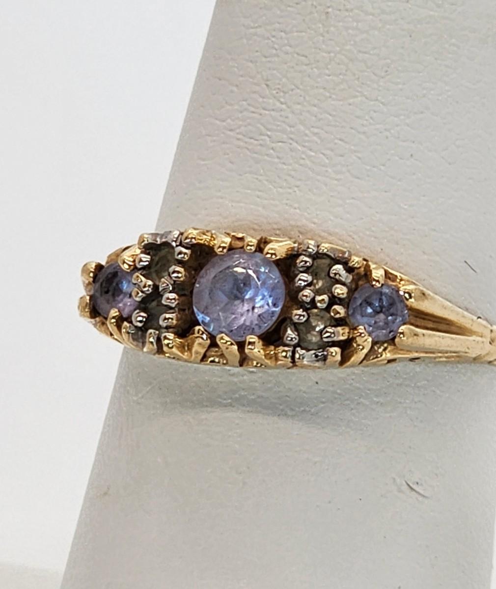 LOT:: 2.6g 10k yellow gold Tanzanite and Diamond Gemstone Ring