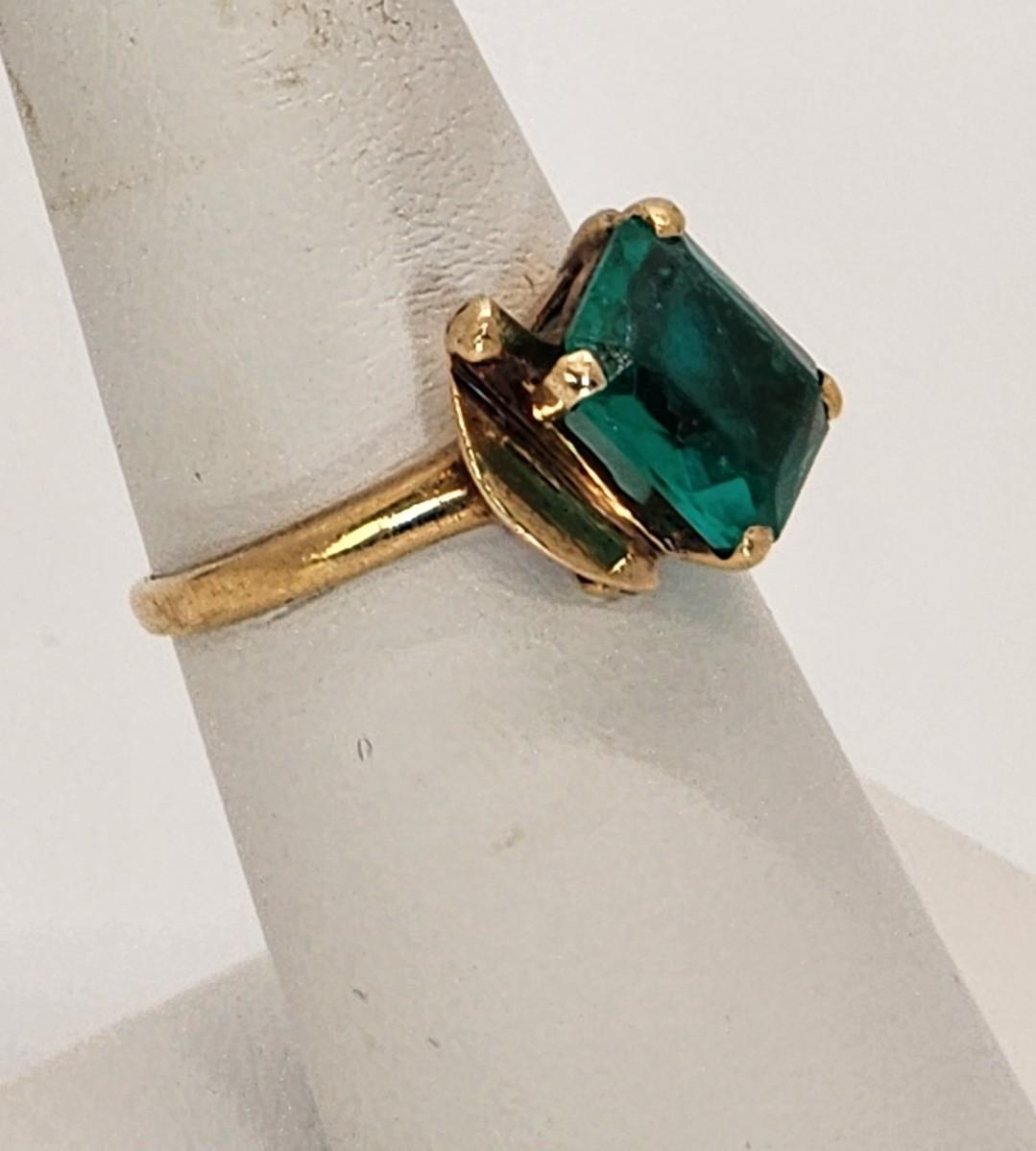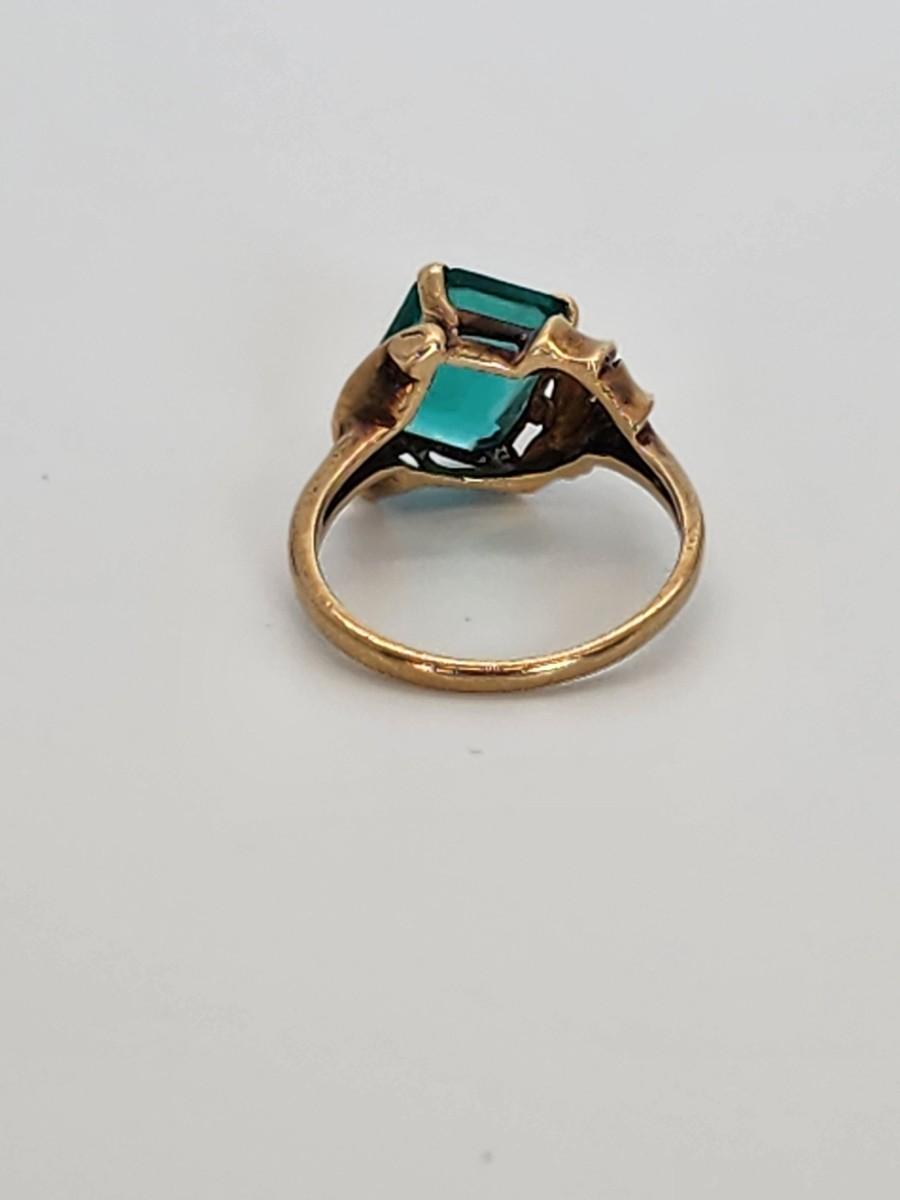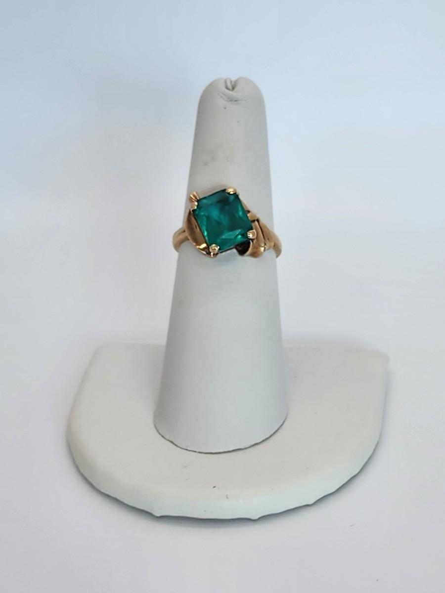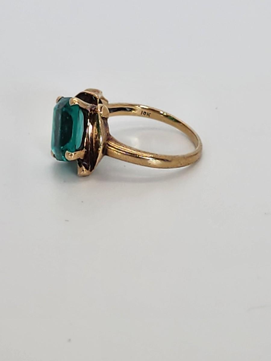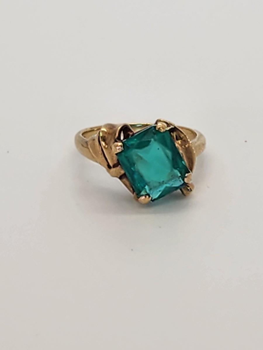 LOT 27:: 3.2g 10k Vintage Cocktail Ring with Teal Color Art Glass Stone sz. 6.5