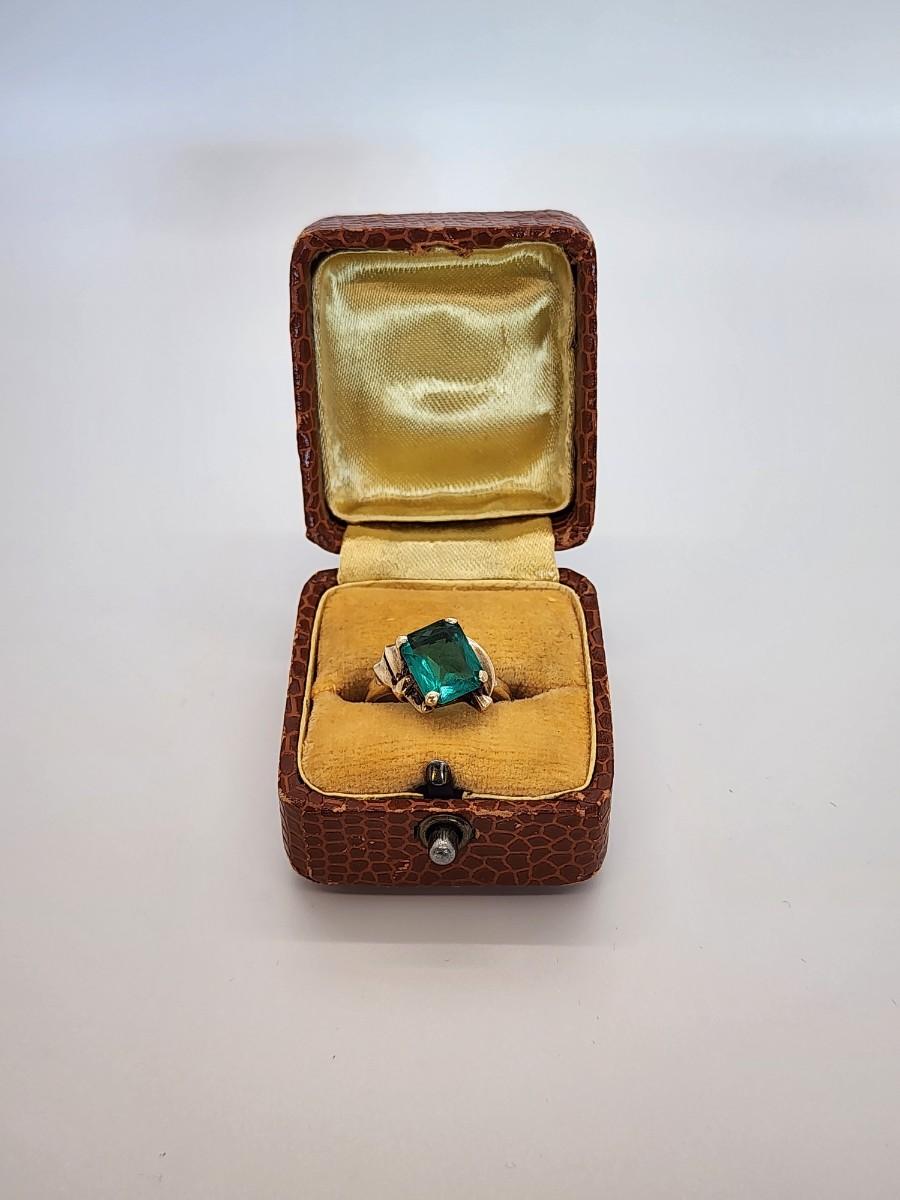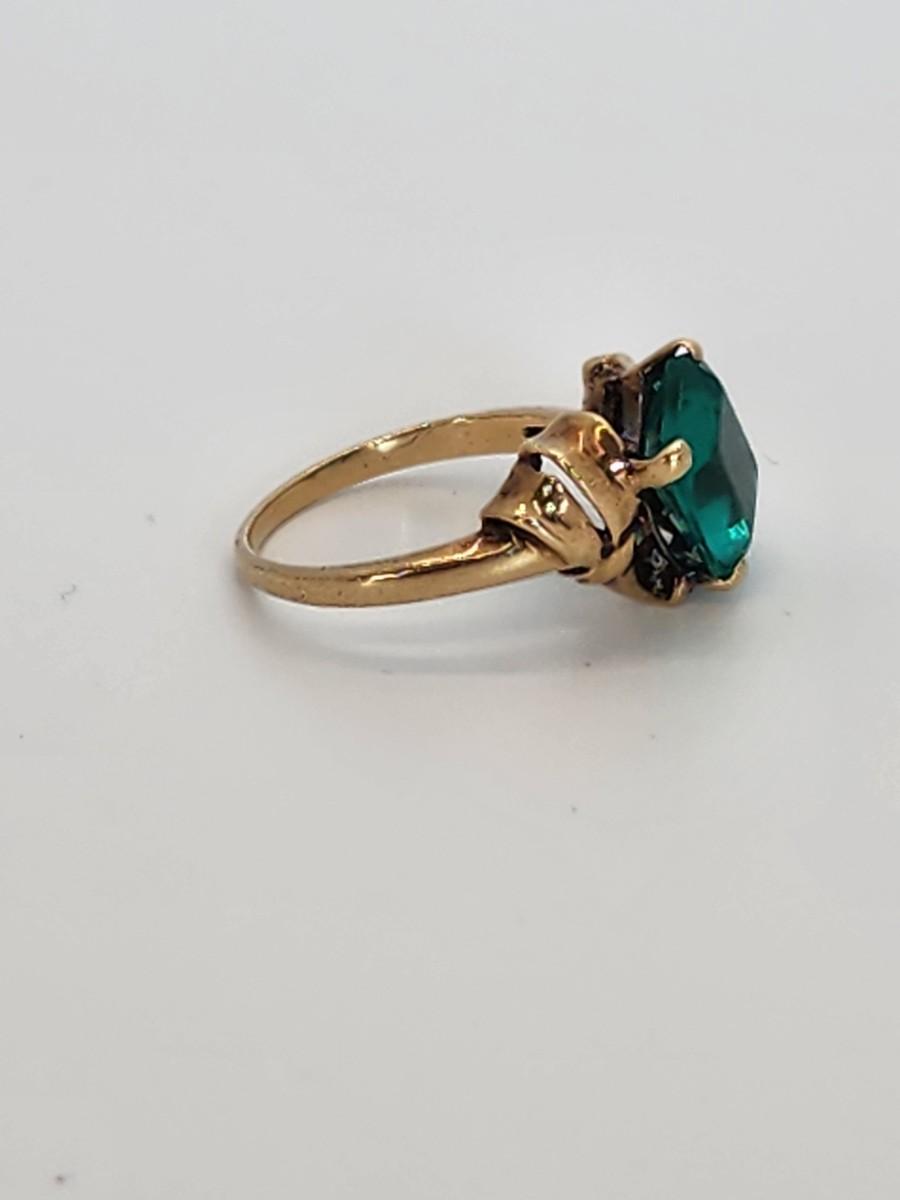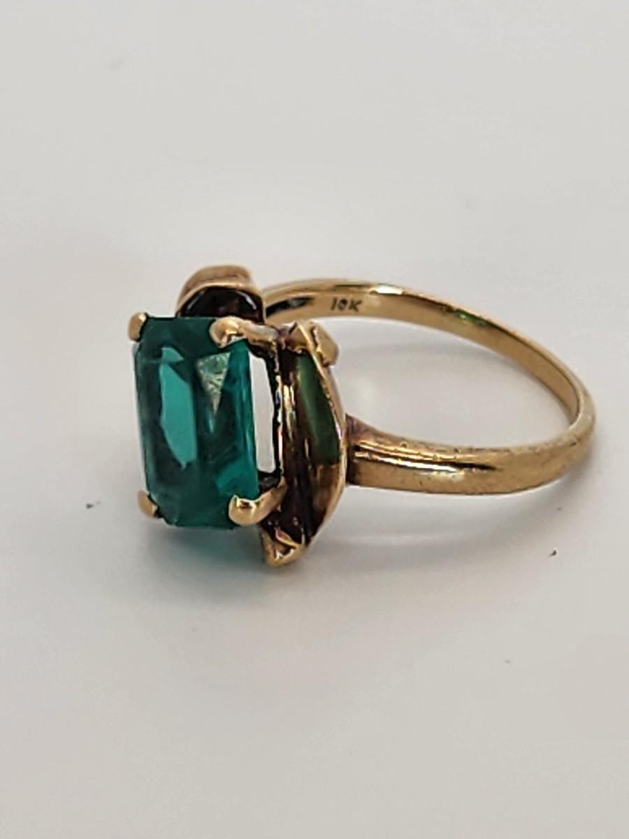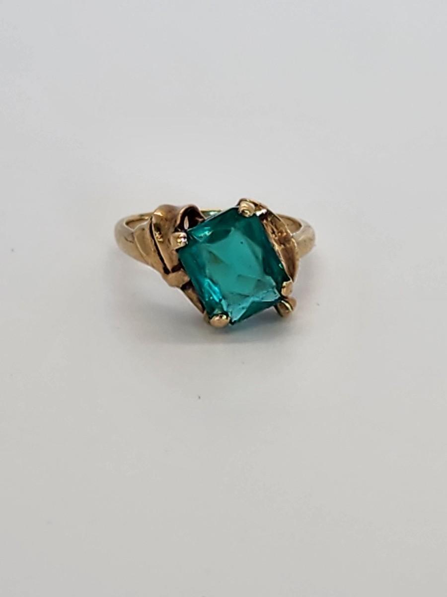 LOT 27:: 3.2g 10k Vintage Cocktail Ring with Teal Color Art Glass Stone sz. 6.5