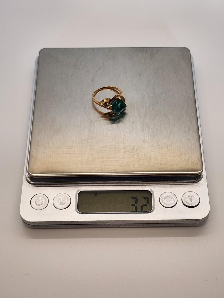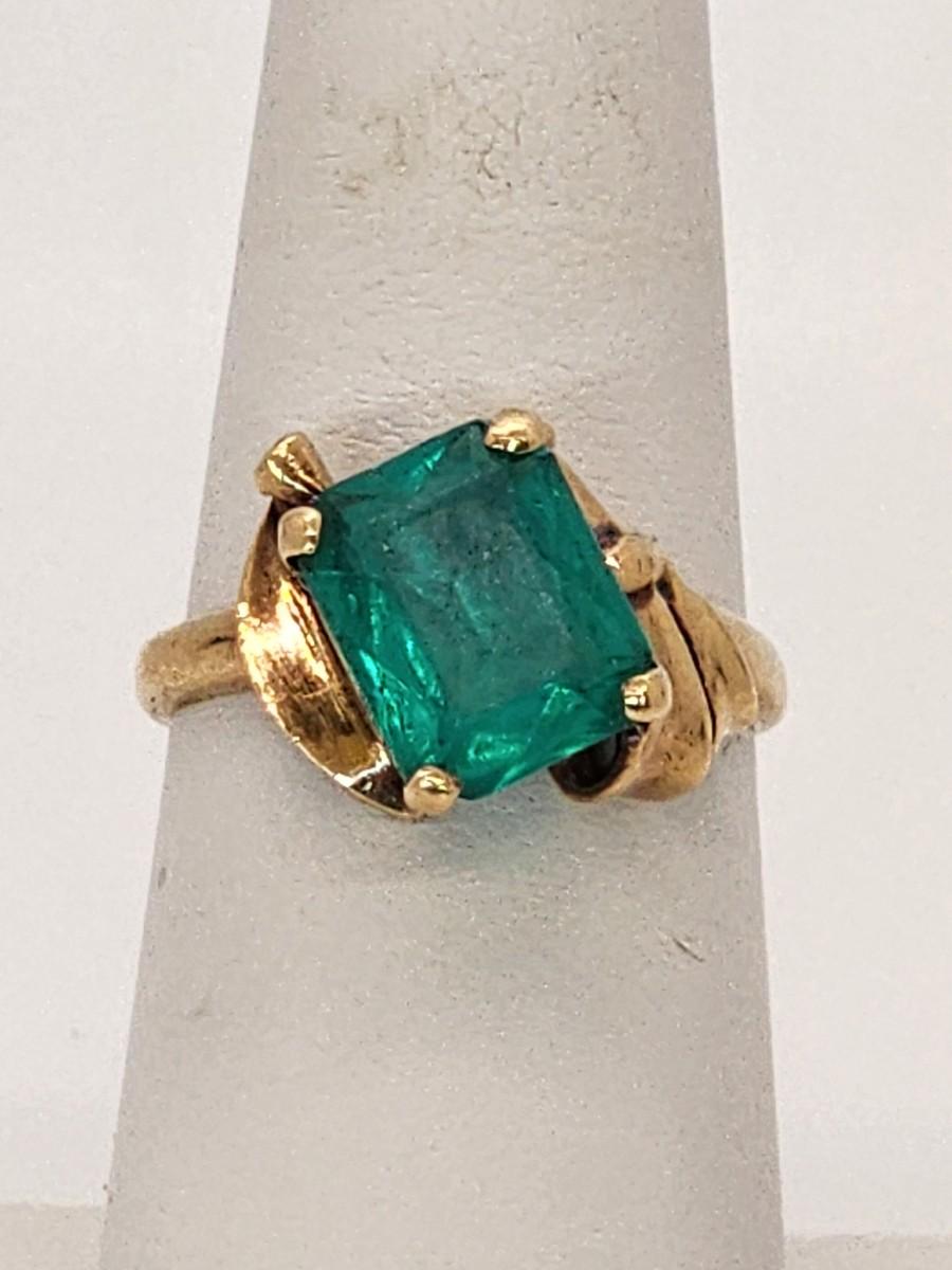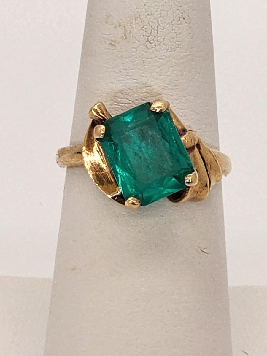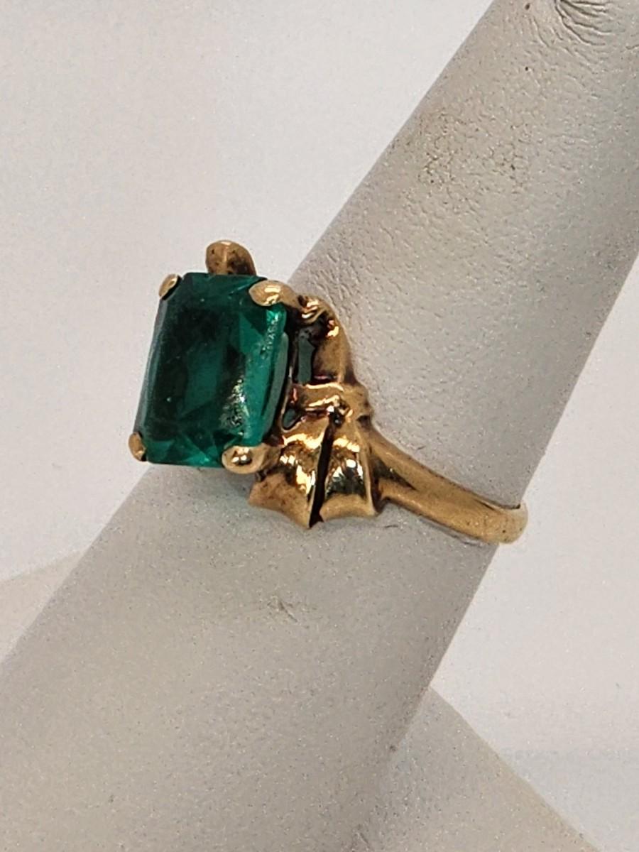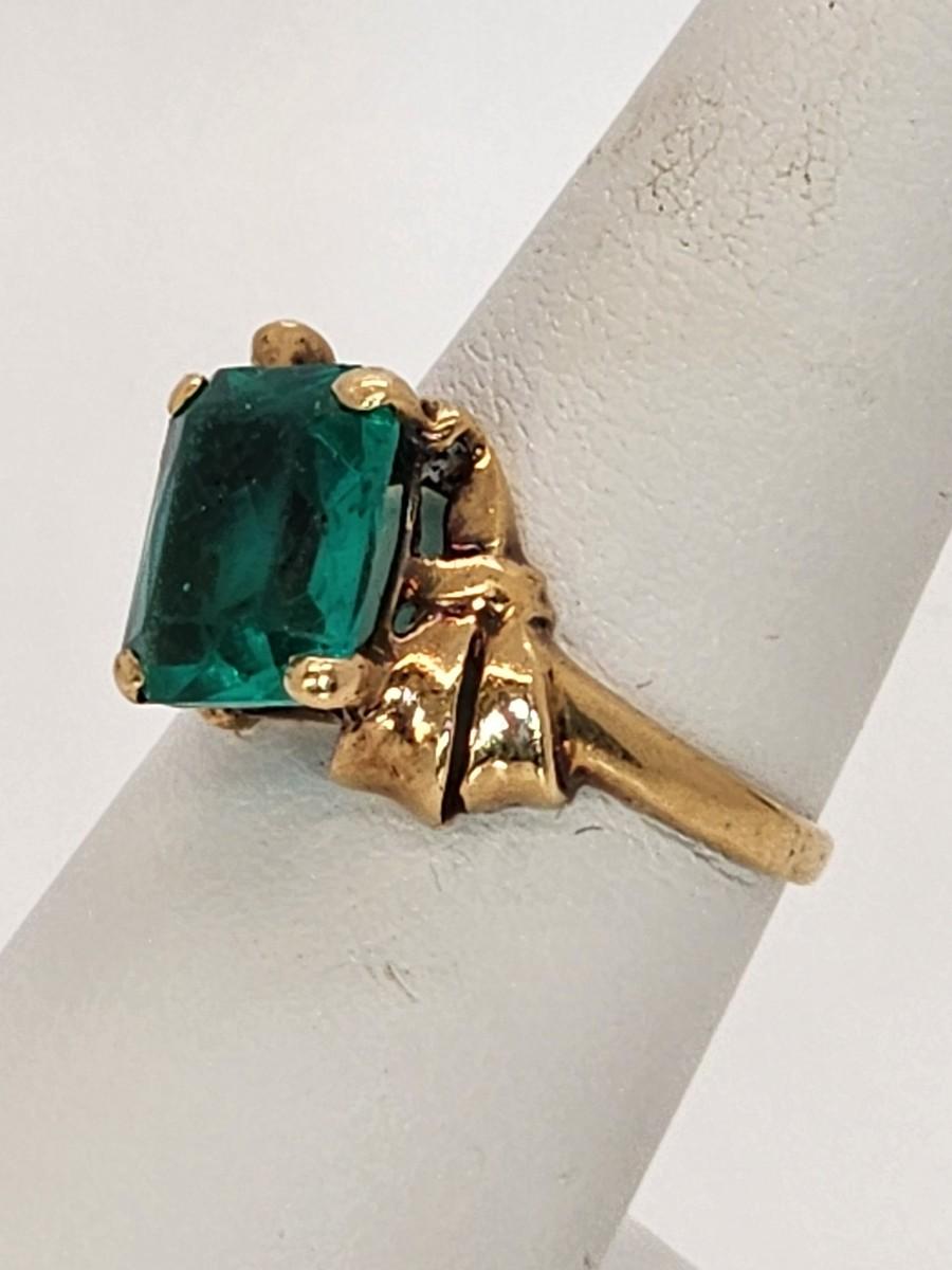 LOT 27:: 3.2g 10k Vintage Cocktail Ring with Teal Color Art Glass Stone sz. 6.5