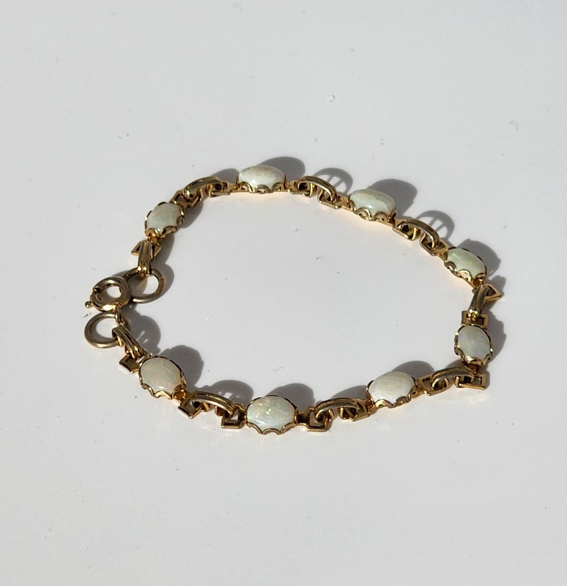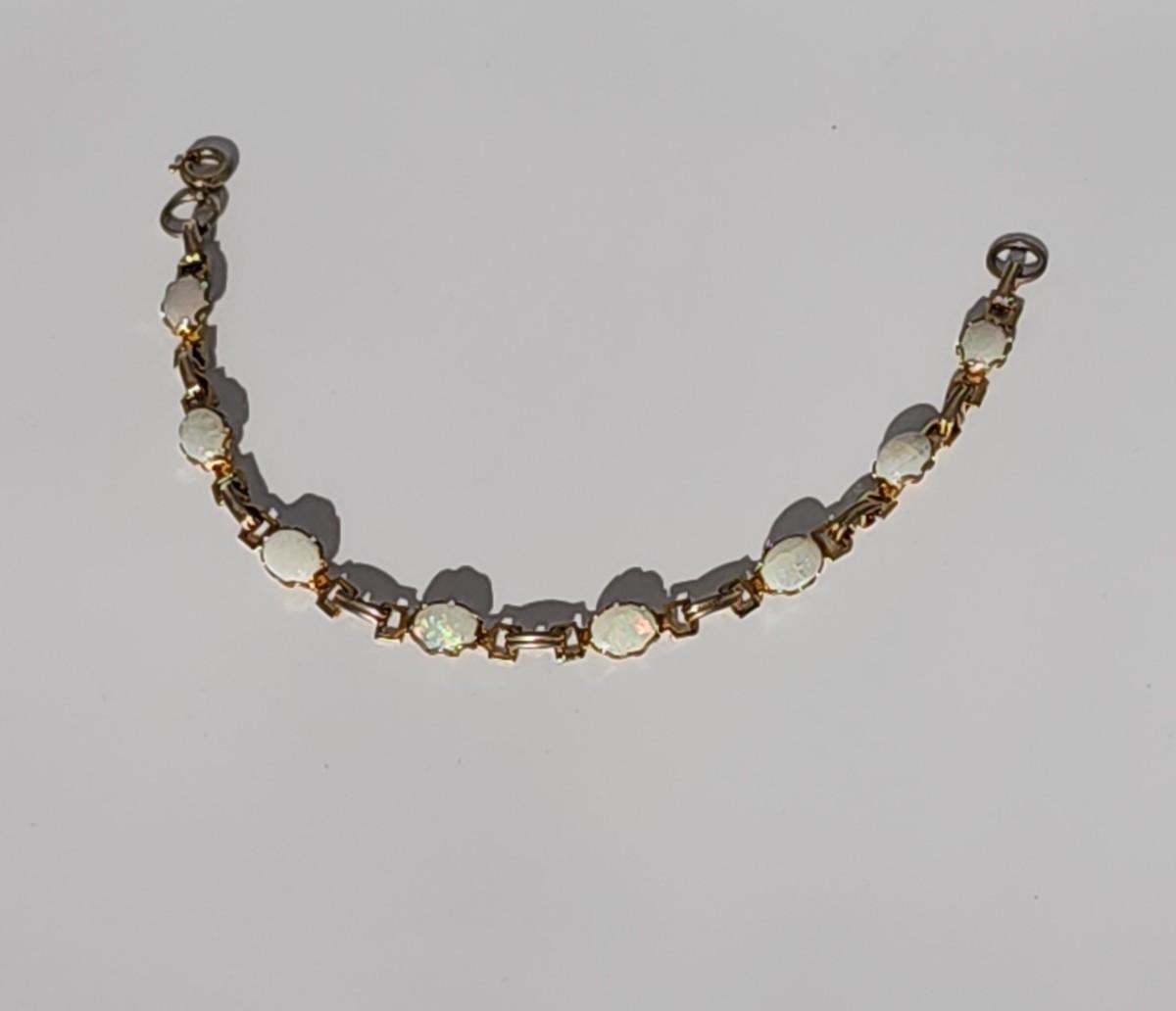 LOT 29:: 12kt Gold filled Opal Bracelet 7" L