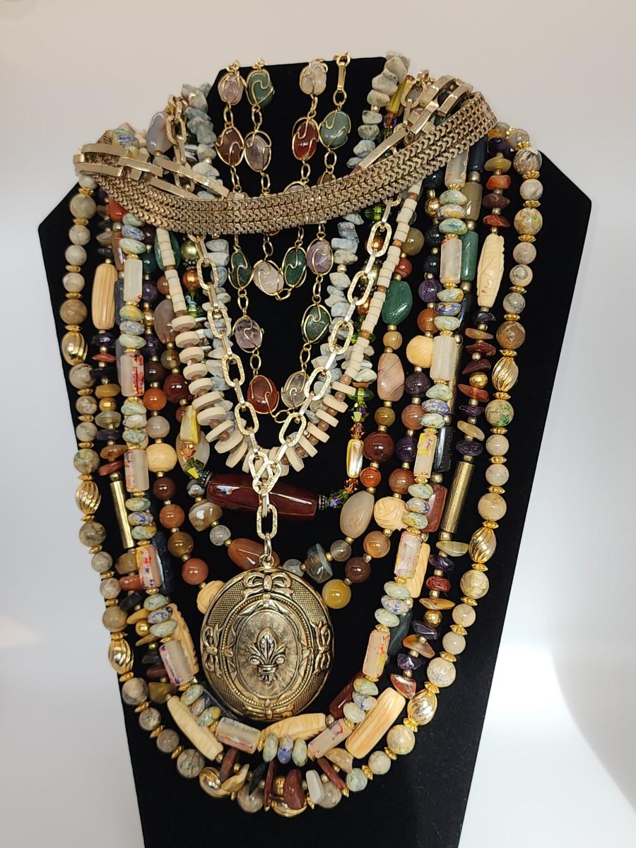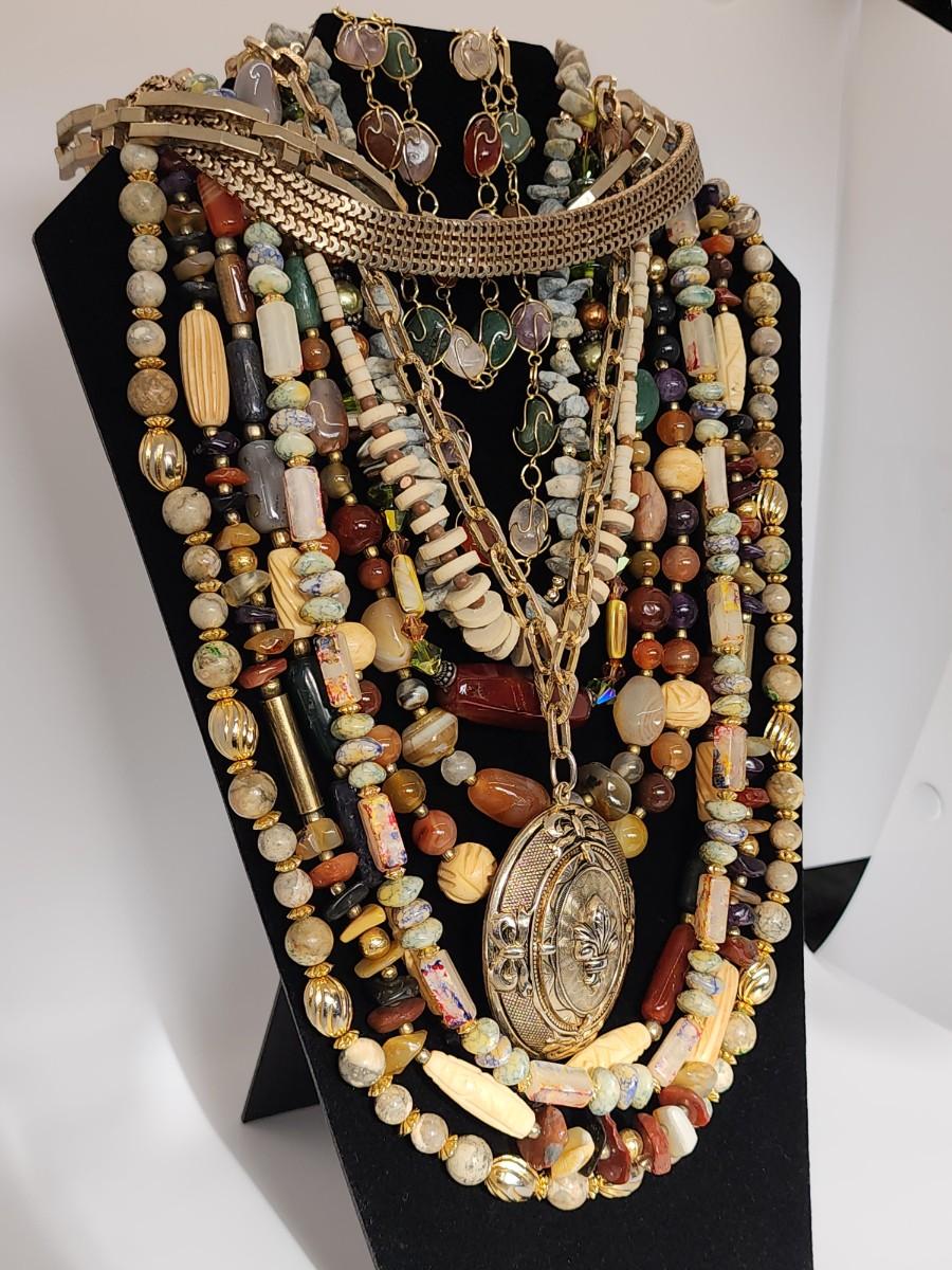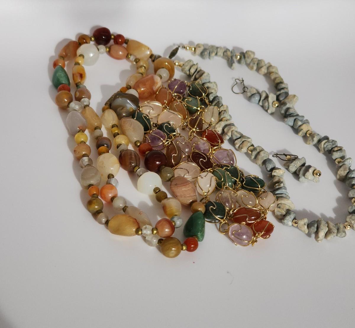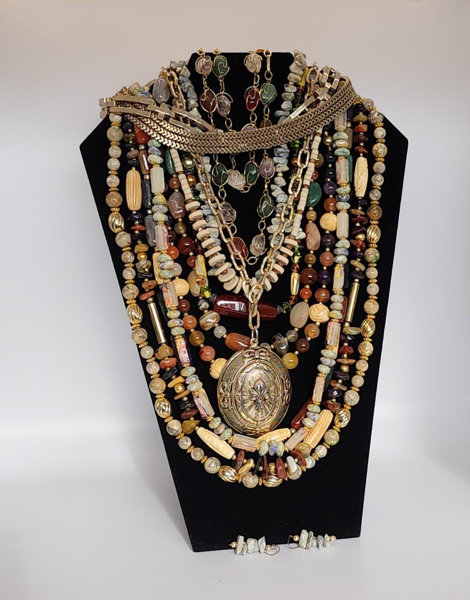 LOT 31:: Multiple Necklaces Lot Natural gemstones, glass beads and more