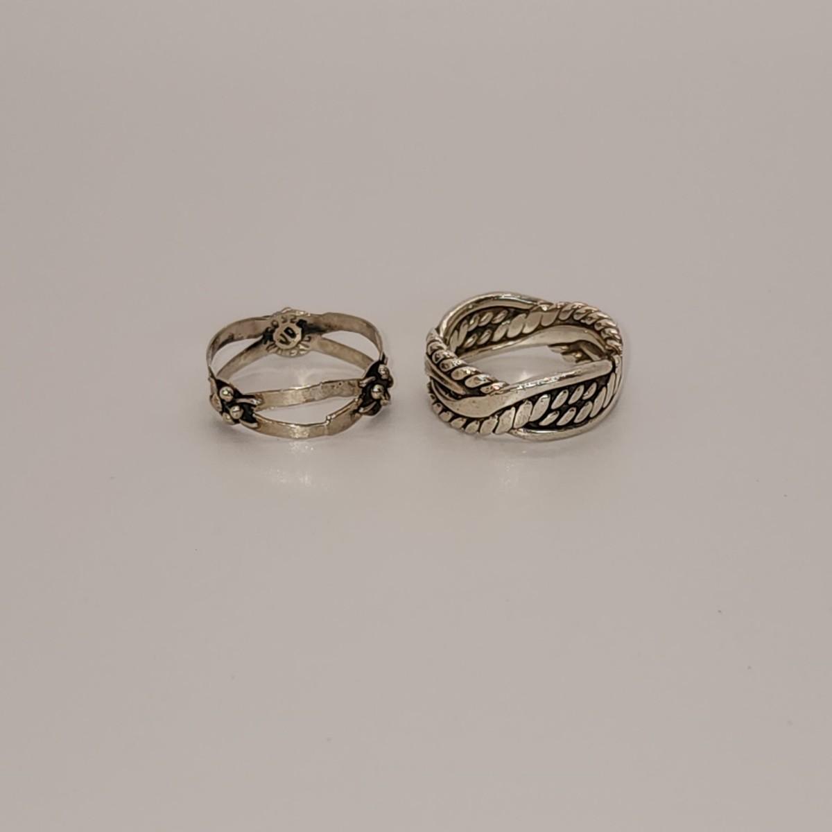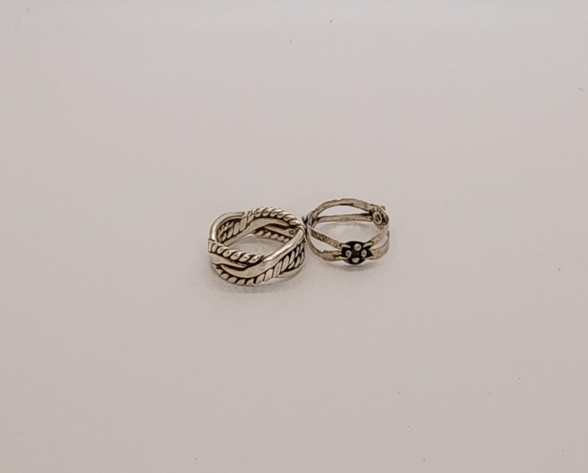 LOT 35:: Two Vintage Sterling Silver Rings-braid band is sz 7 and other is 7.5