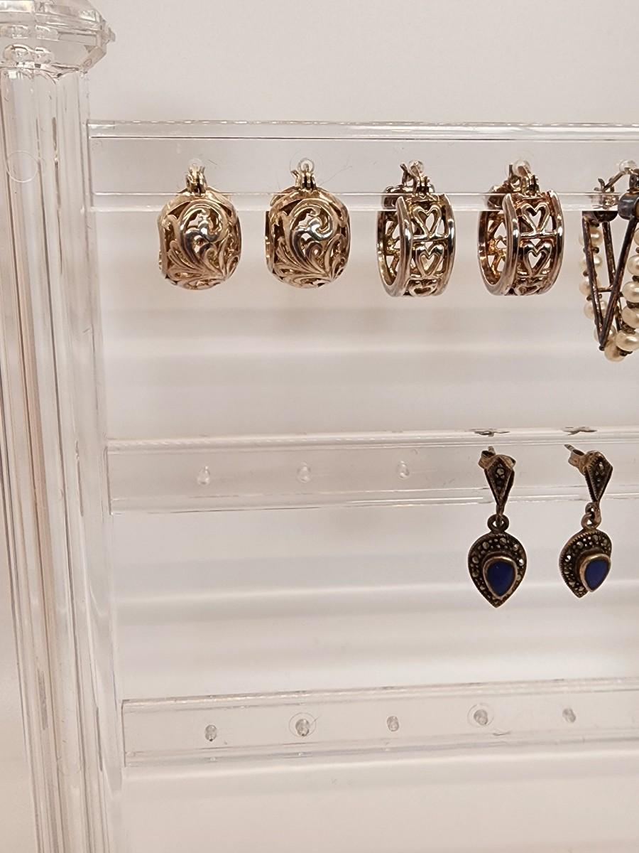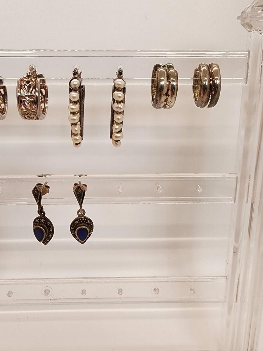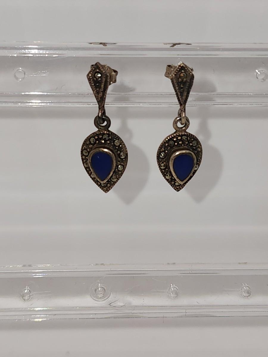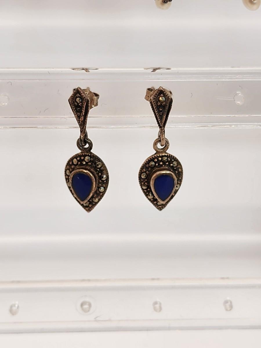 LOT 36:: 5 pair Sterling Silver Pierced Earrings featuring a pair of Marcasite and Lapis Lazuli