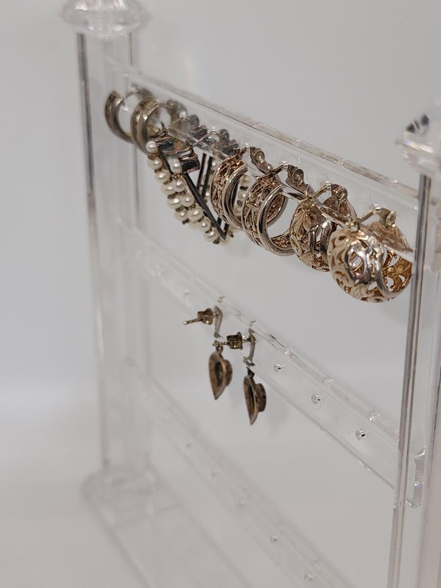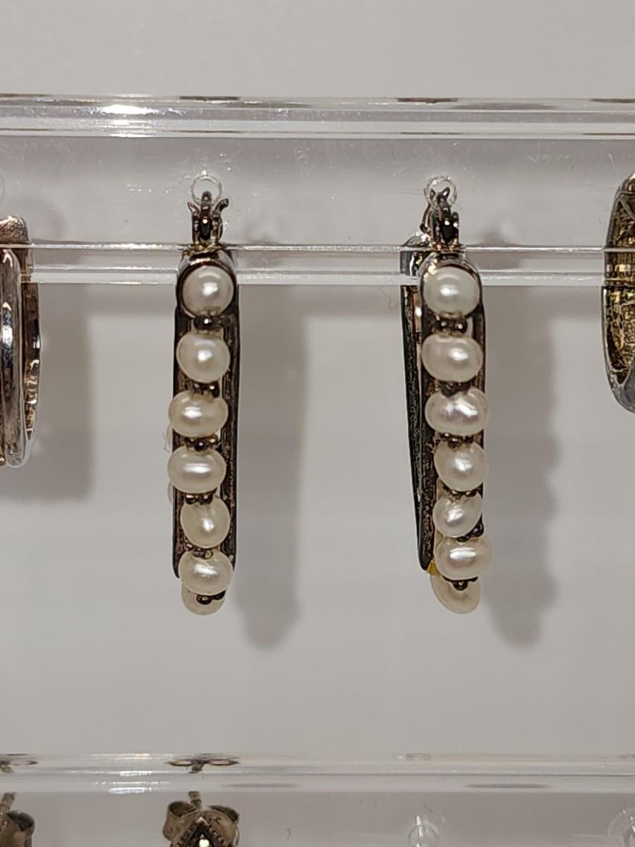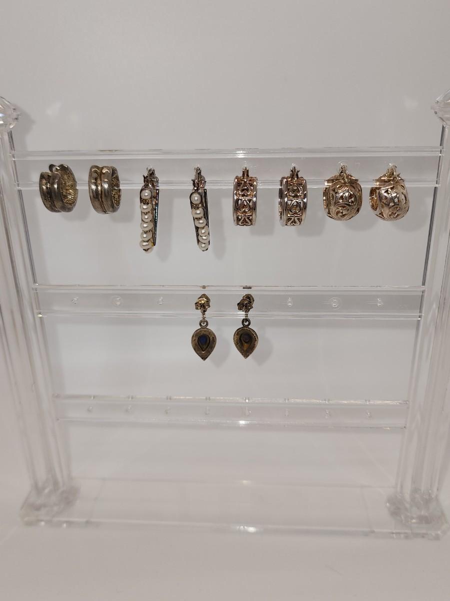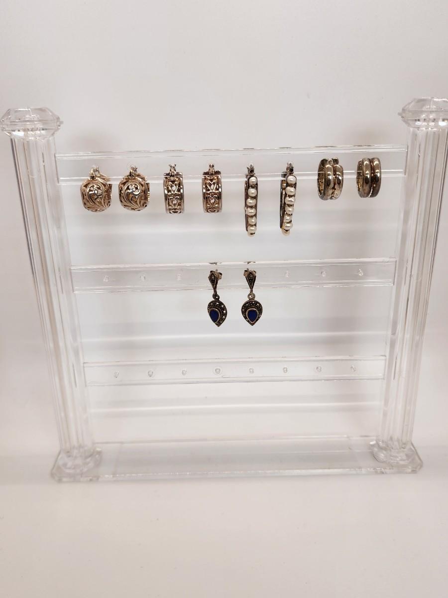 LOT 36:: 5 pair Sterling Silver Pierced Earrings featuring a pair of Marcasite and Lapis Lazuli