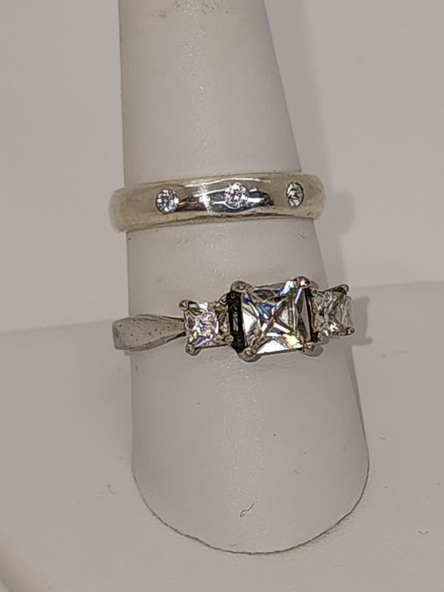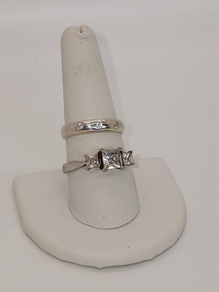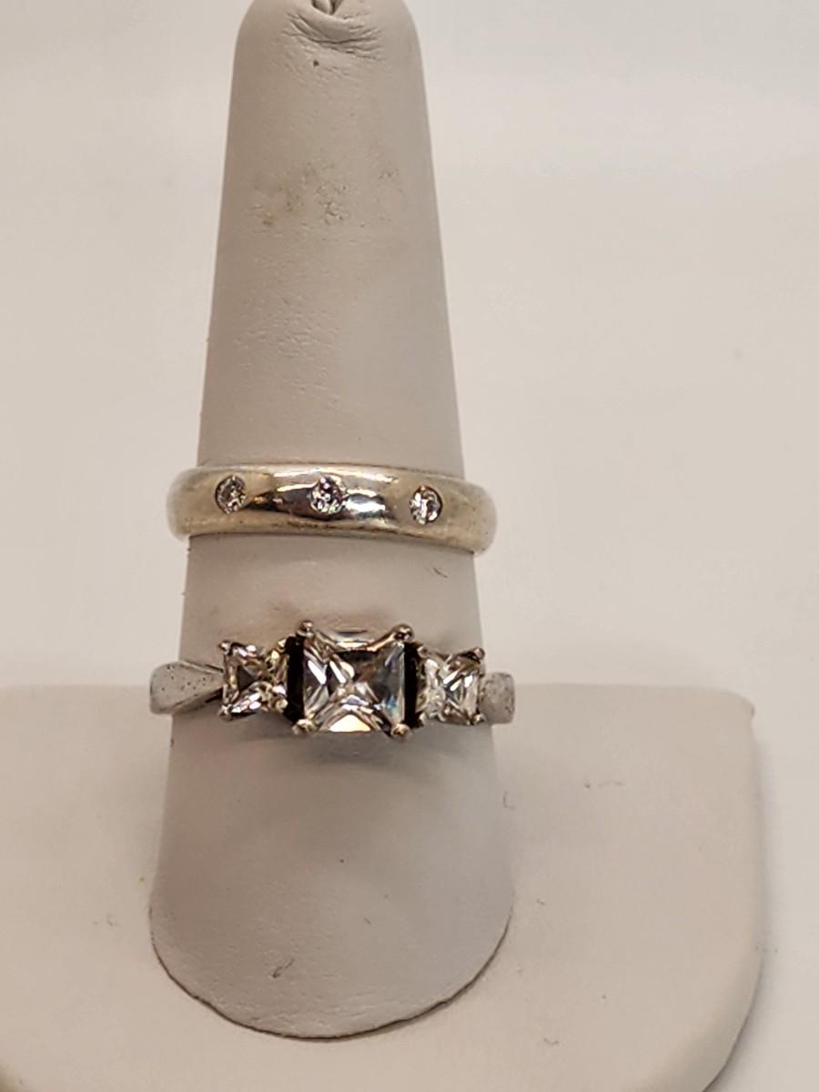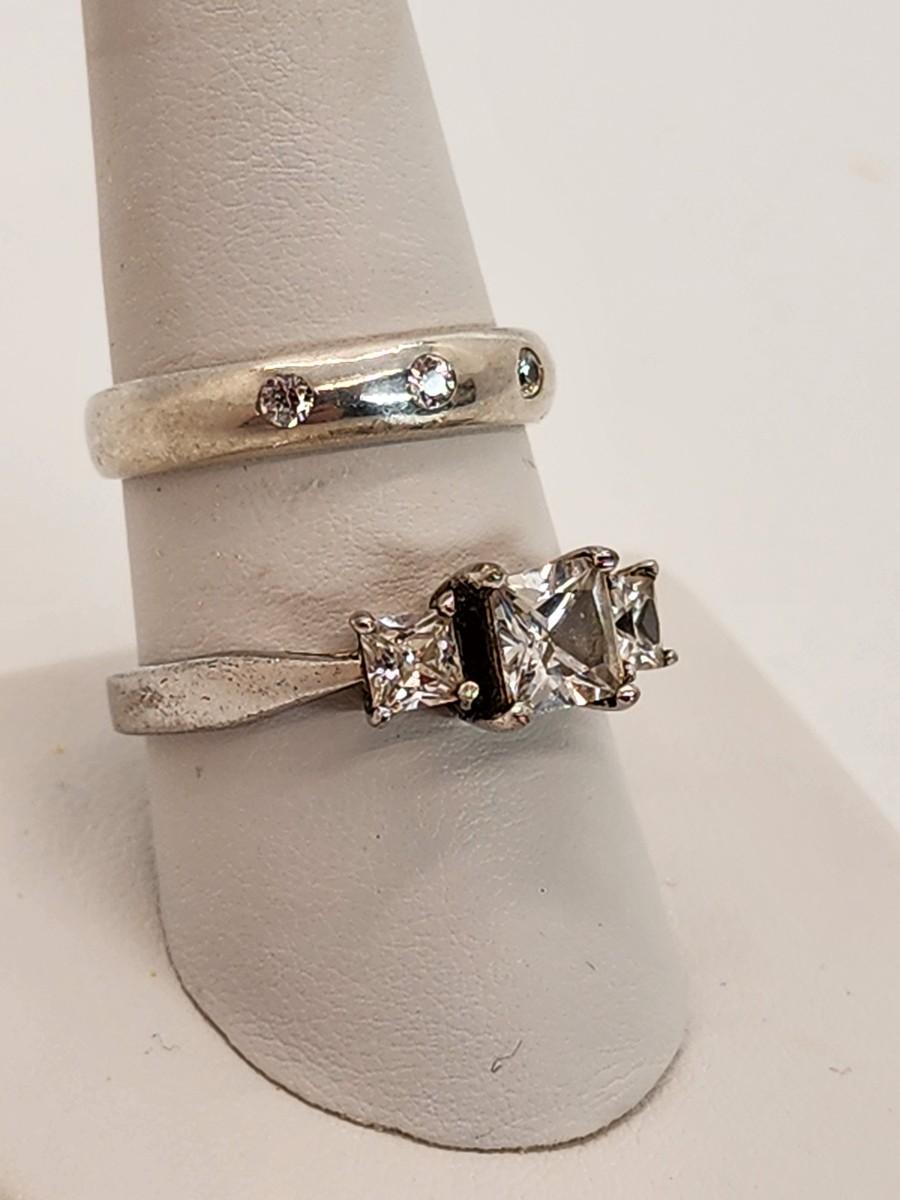 LOT 37:: Two Sterling Silver Rings Band with 3 czs is sz. 7.5 and other is sz. 10