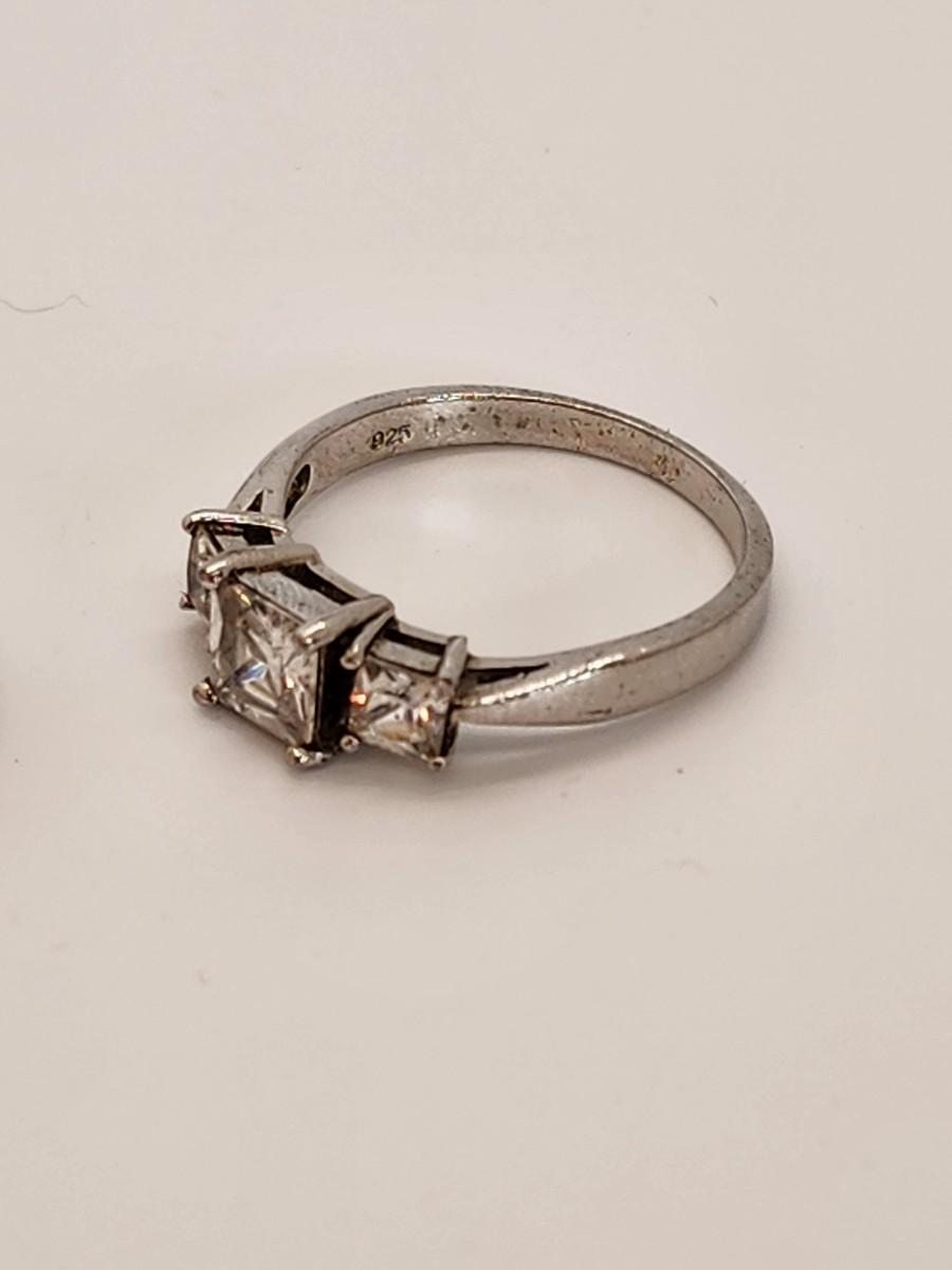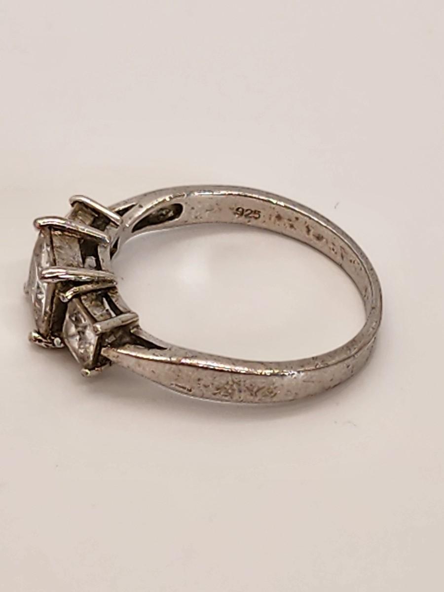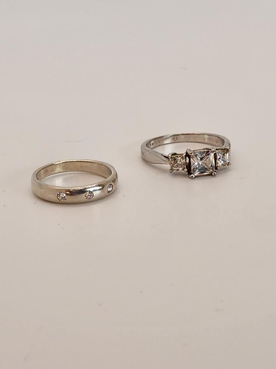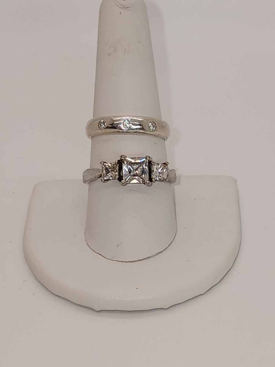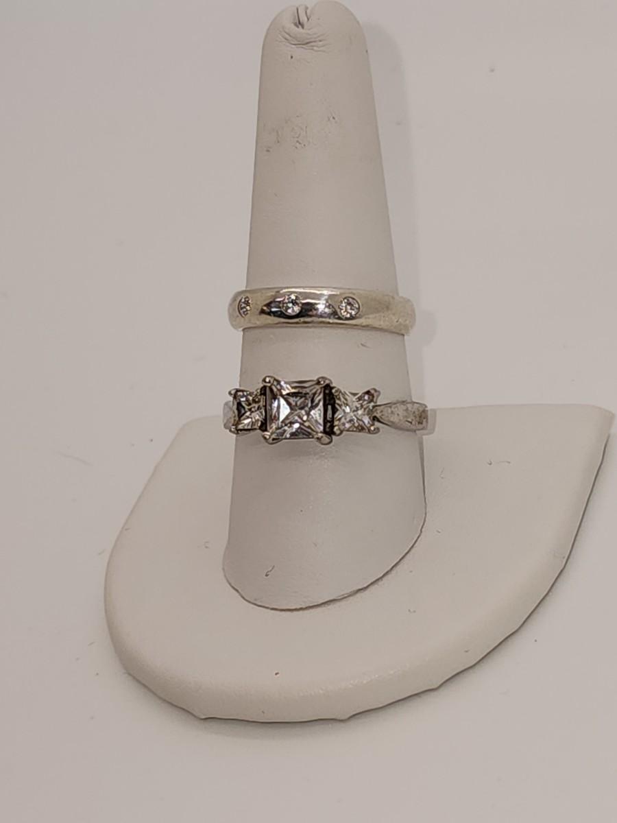 LOT 37:: Two Sterling Silver Rings Band with 3 czs is sz. 7.5 and other is sz. 10