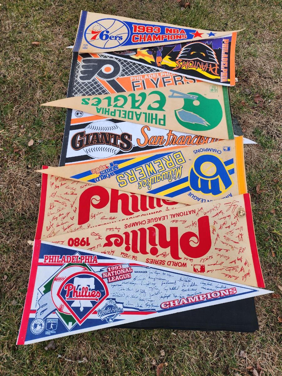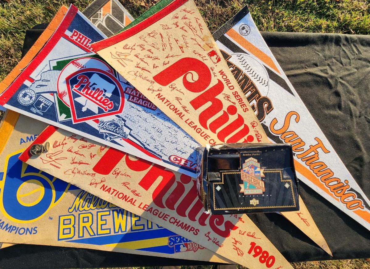 LOT 42:: Vintage Pennants and Box of unopened Upper Deck Card Packs