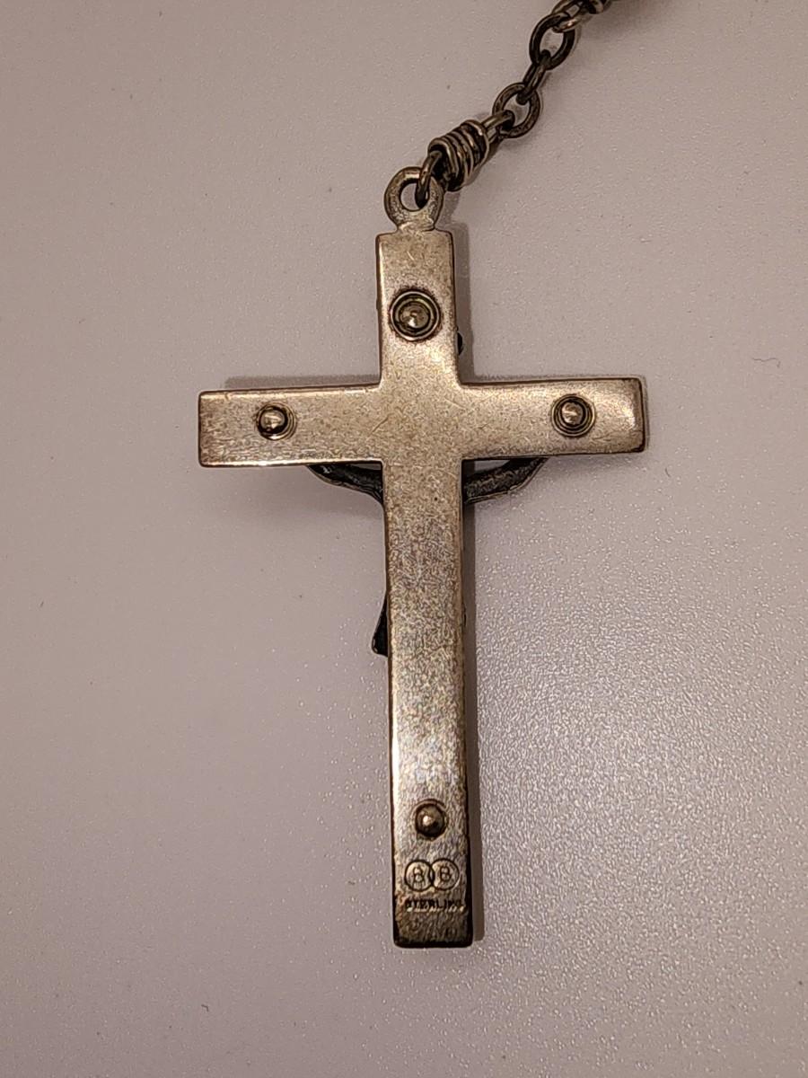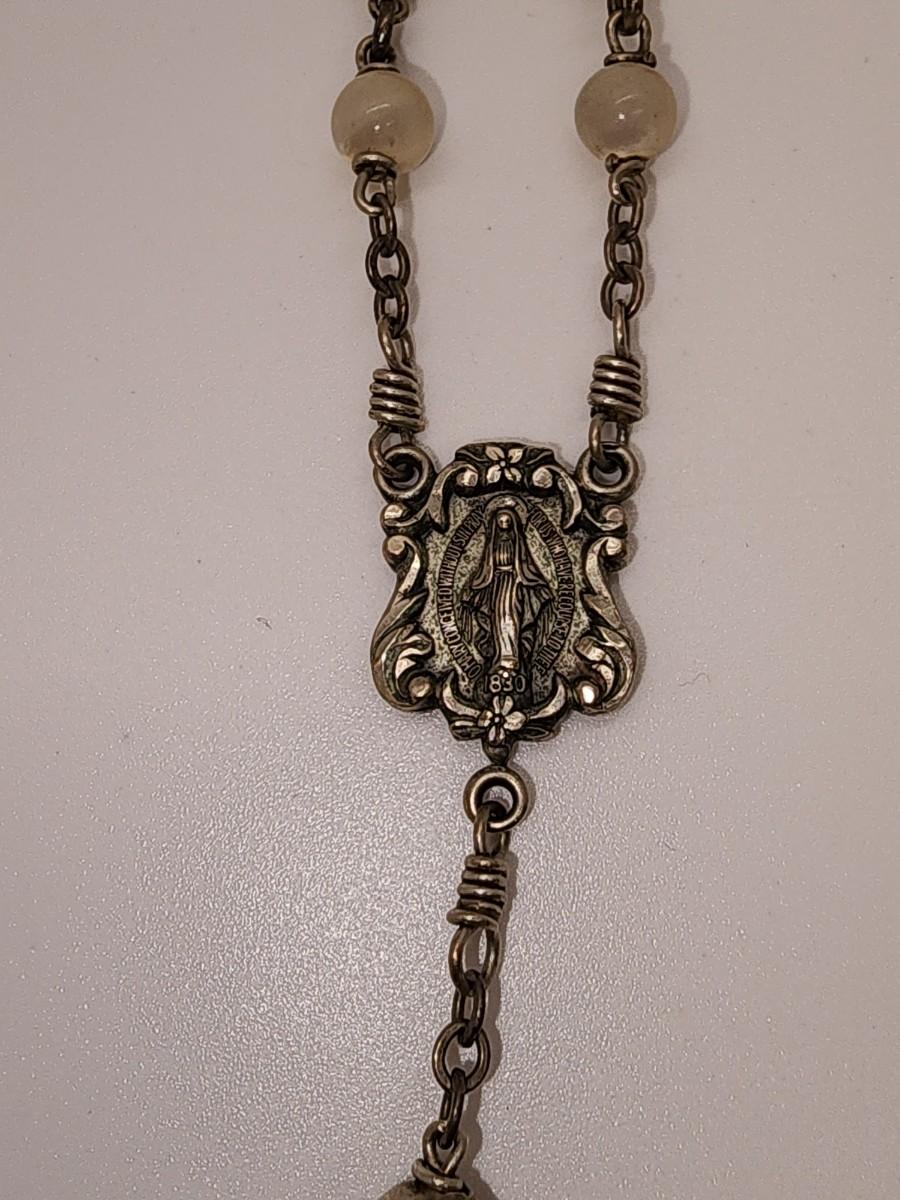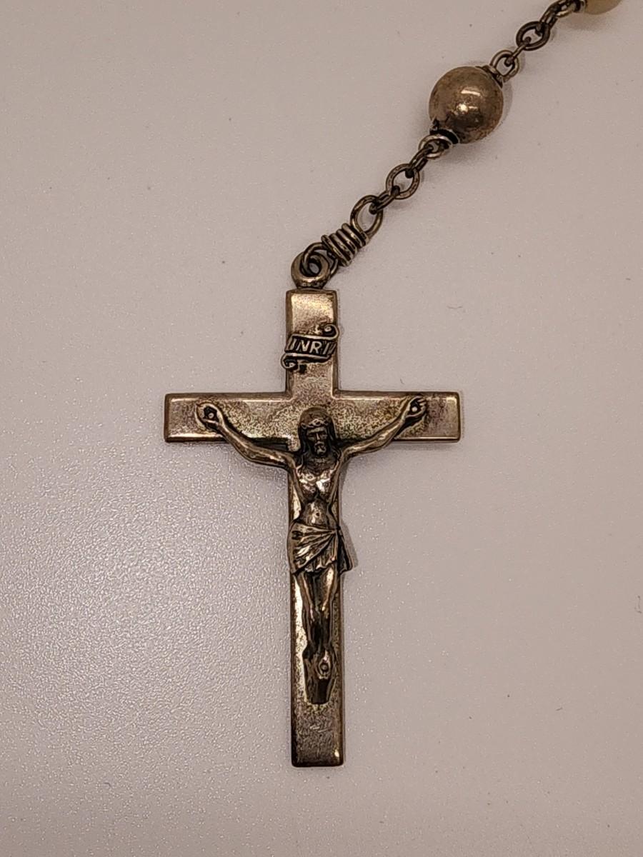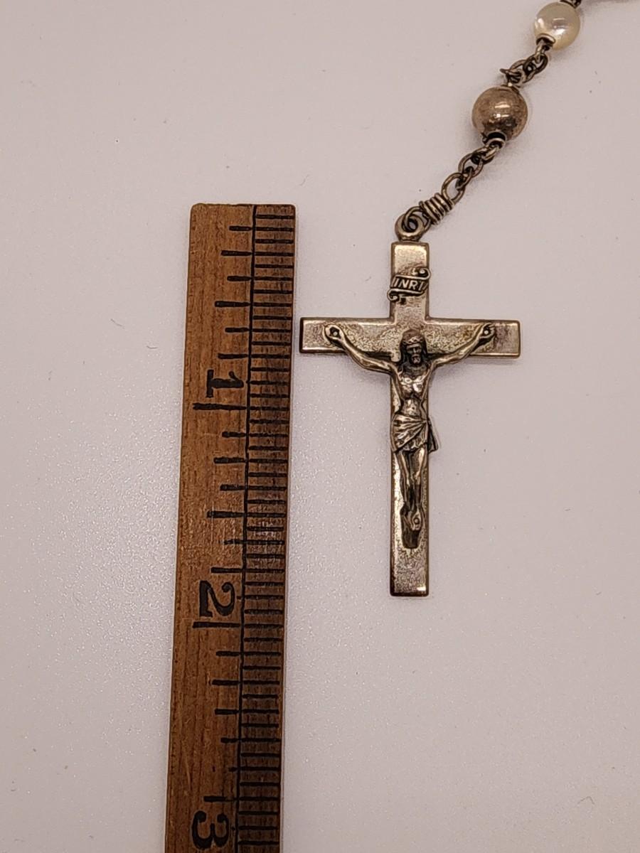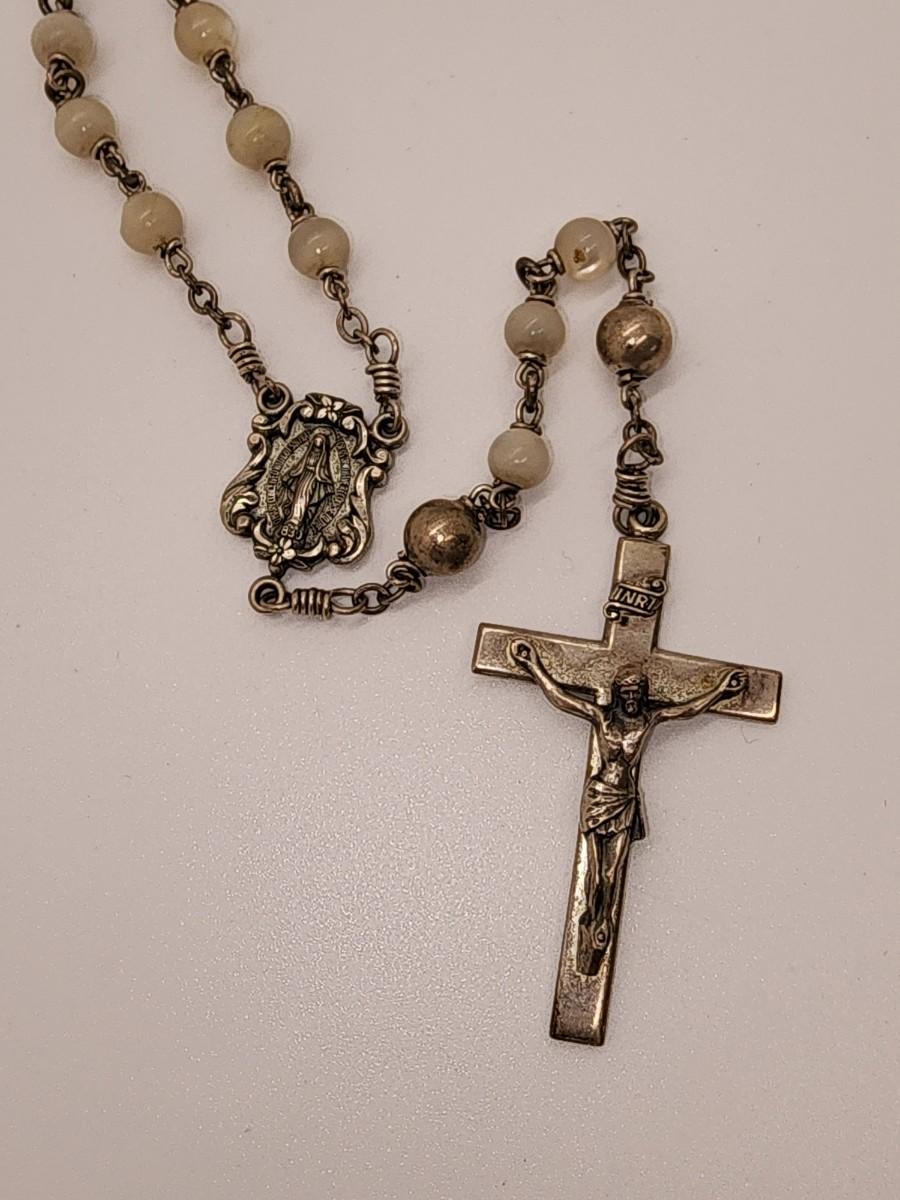 LOT 49:: Beautiful Vintage Sterling and Mother of Pearl Beads Prayer Rosary 925 Silver Signed BB 30"L