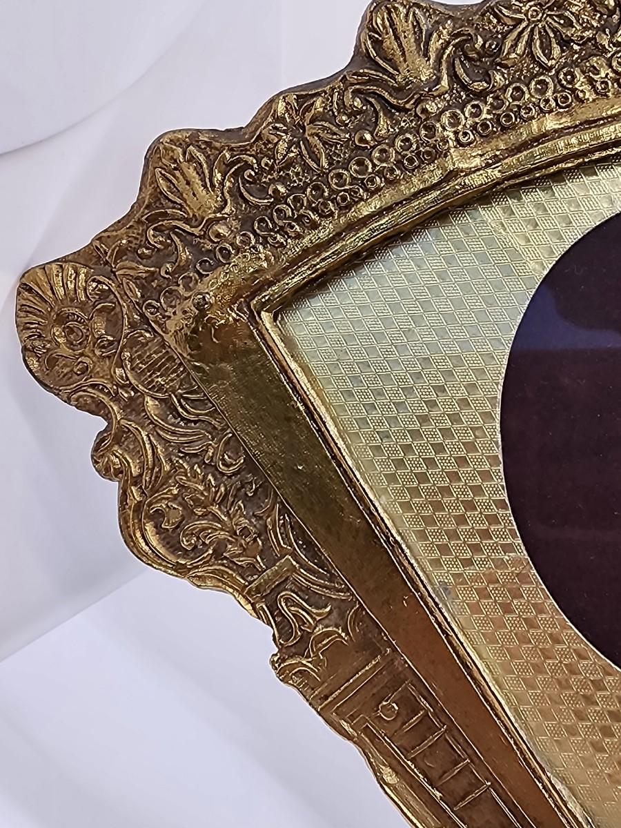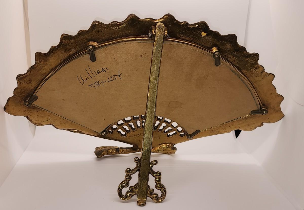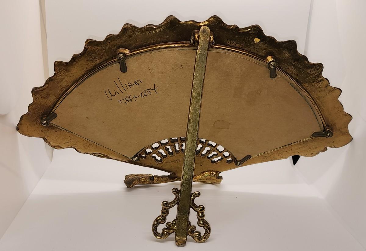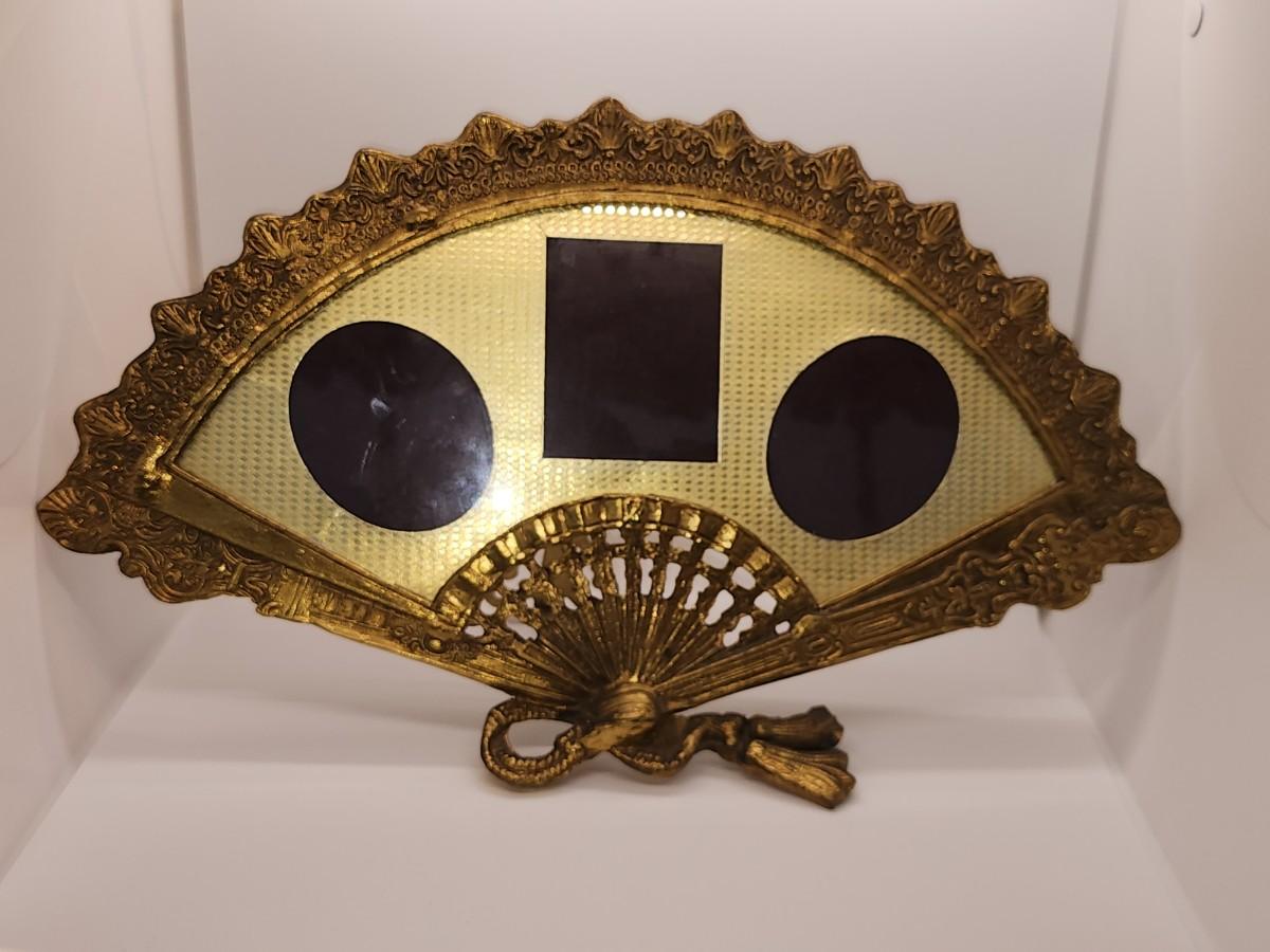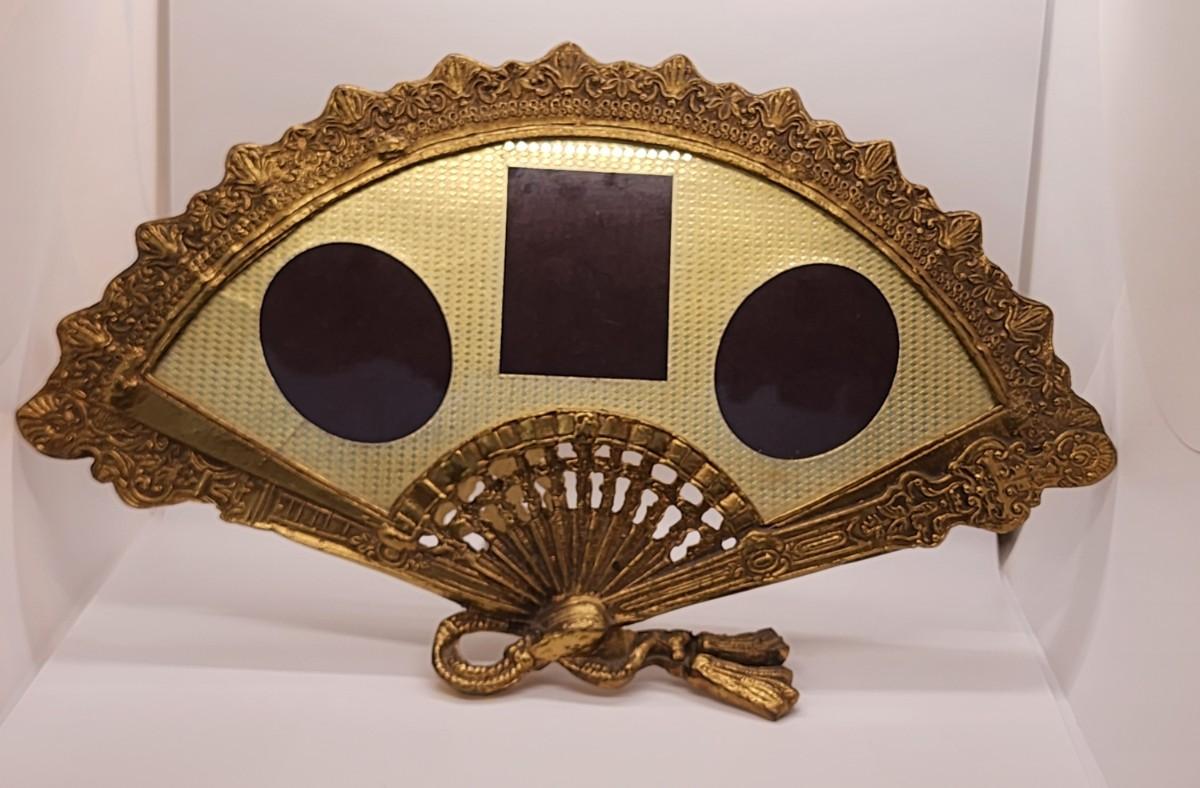 LOT 50:: Antique Victorian Baroque Style Brass Goldtone Cast Iron Picture Frame Fan Shape 10" by 17" 3 lbs! Big, ornate and beautiful!