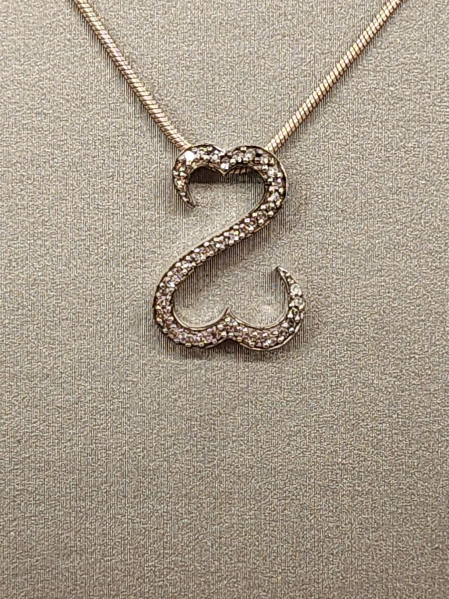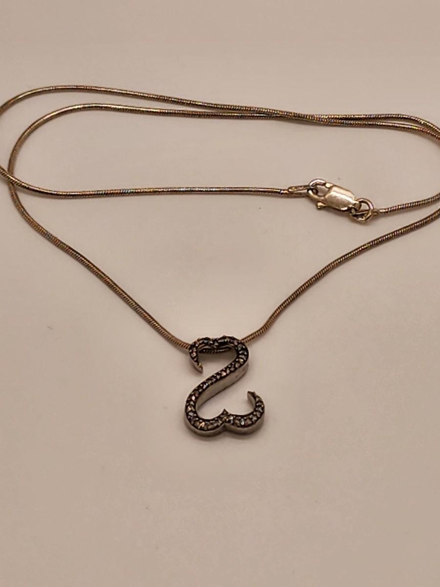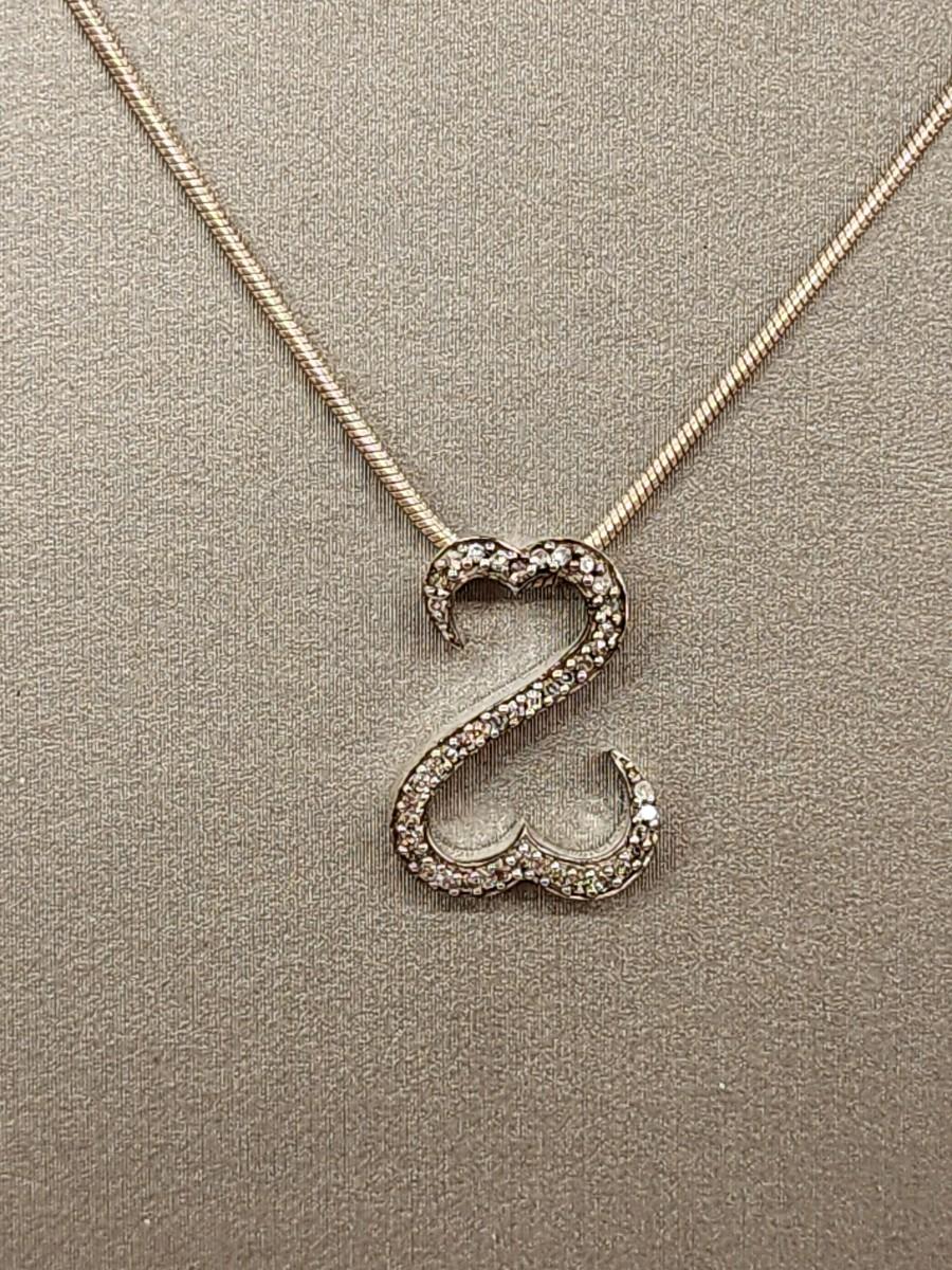 LOT 60:: Sterling Silver Diamond Pendant Necklace 16" Chain