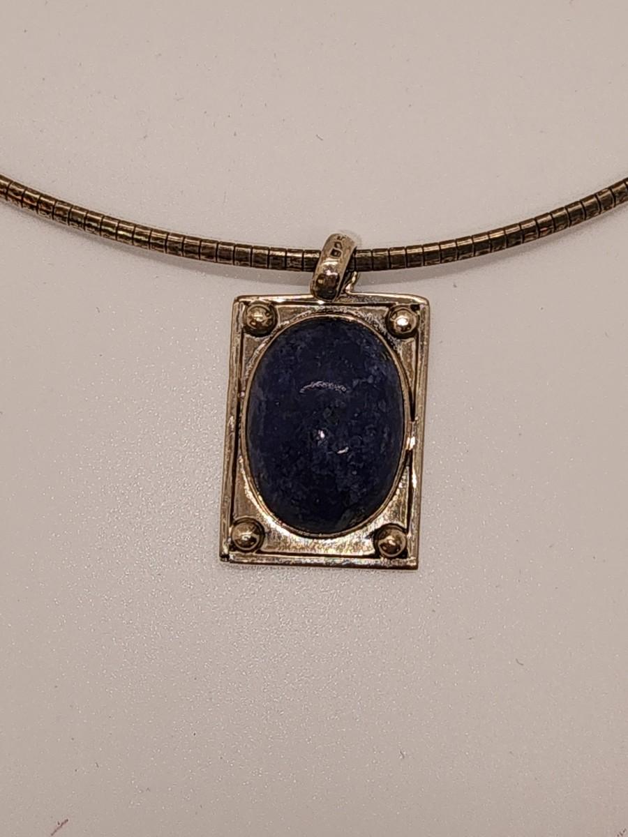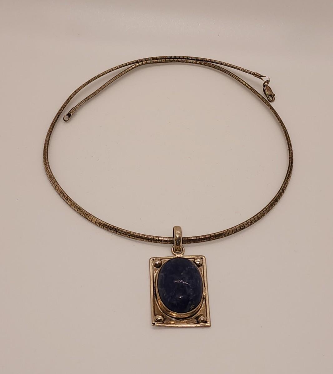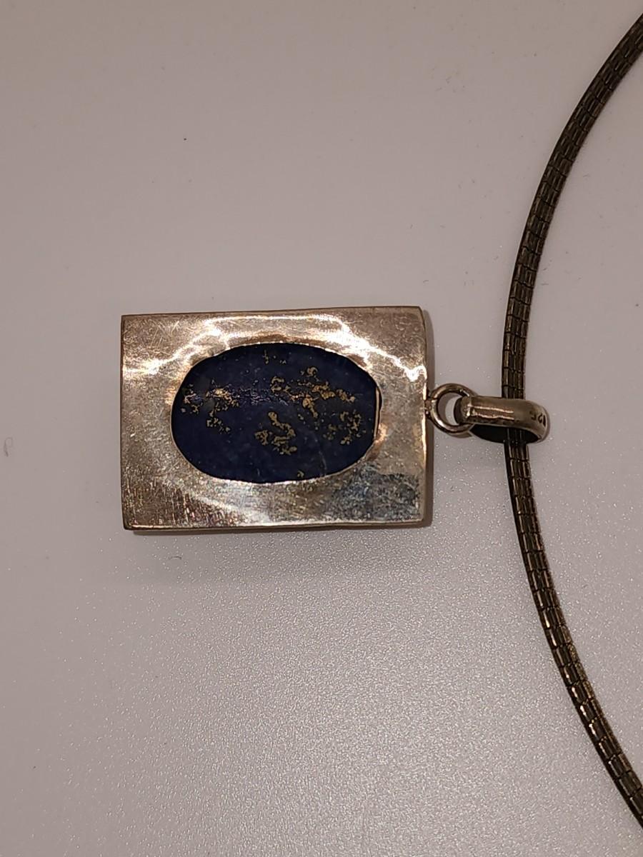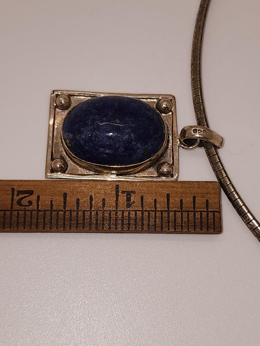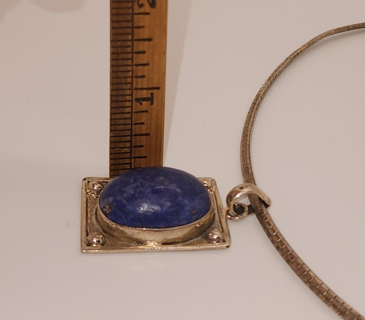 LOT 61:: Sterling Silver and Blue Lapis Pendant Necklace 20"L chain