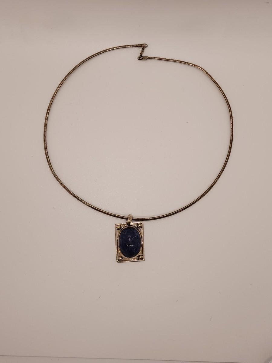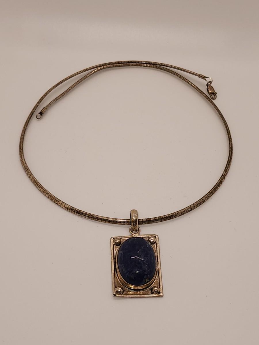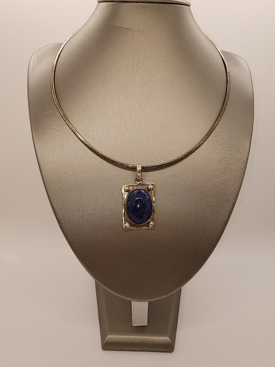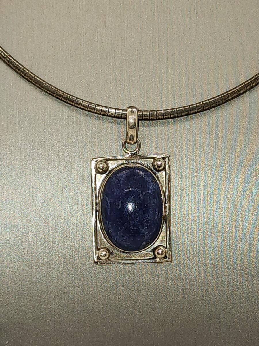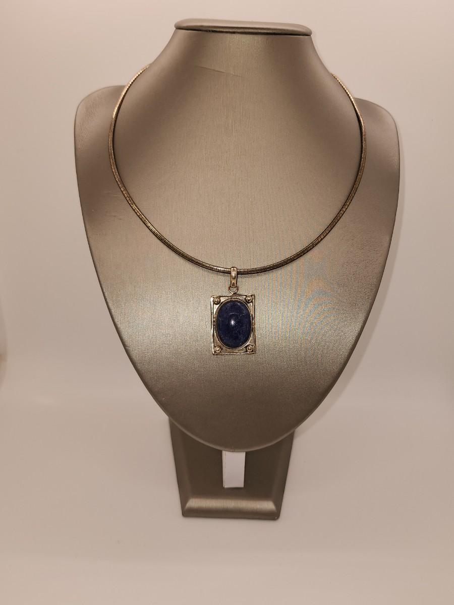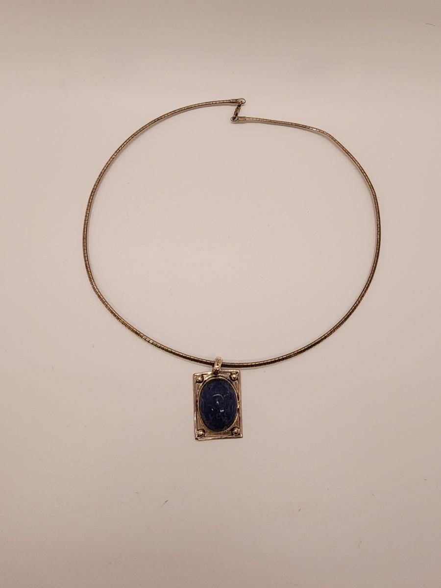 LOT 61:: Sterling Silver and Blue Lapis Pendant Necklace 20"L chain