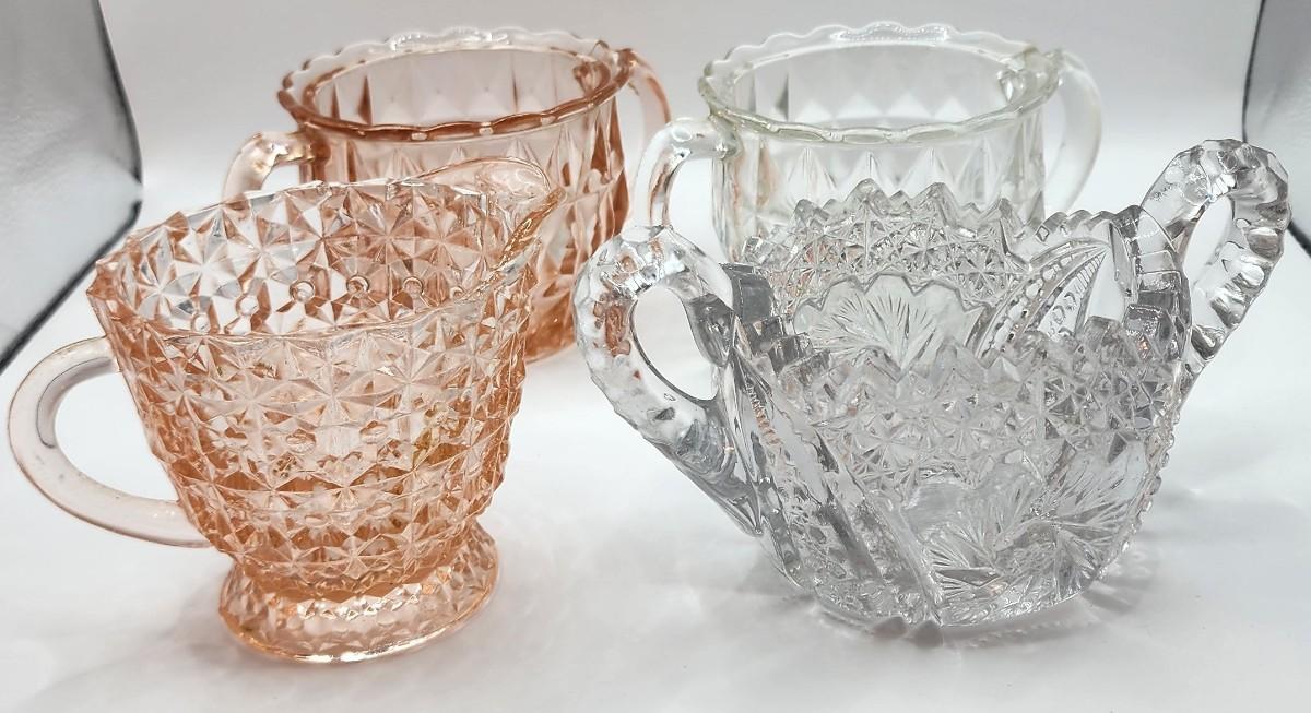 LOT::130 Four vintage Orphaned Cream & Sugar Depression Glass Bowls