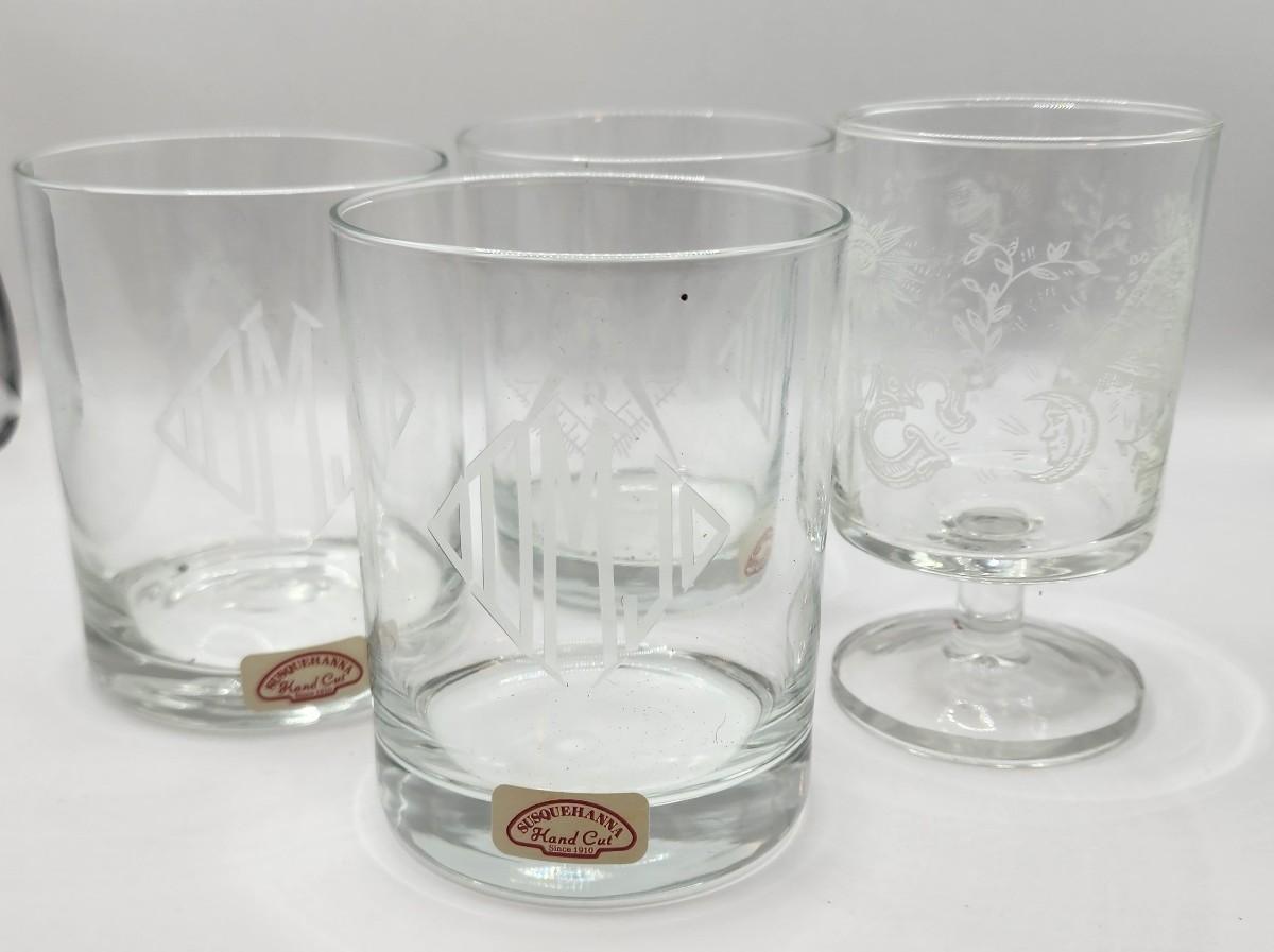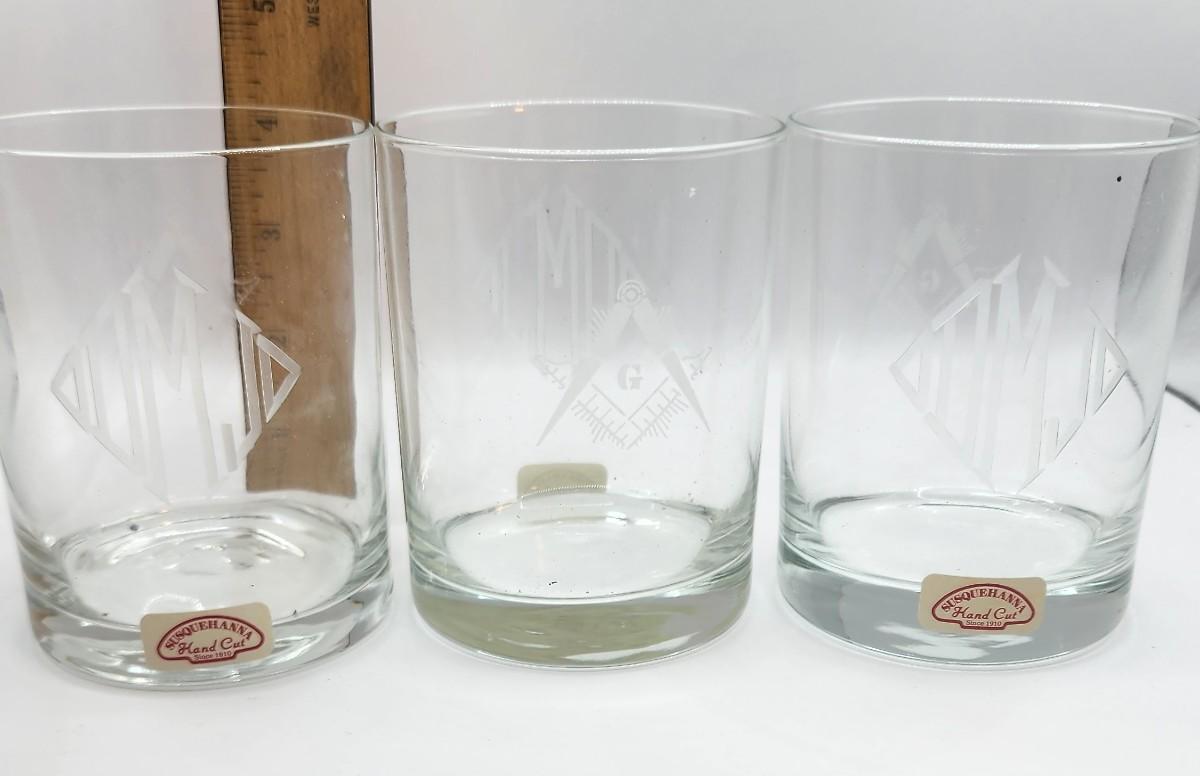 LOT::136 Four Piece Bundle Masonic Lodge Bar Glasses