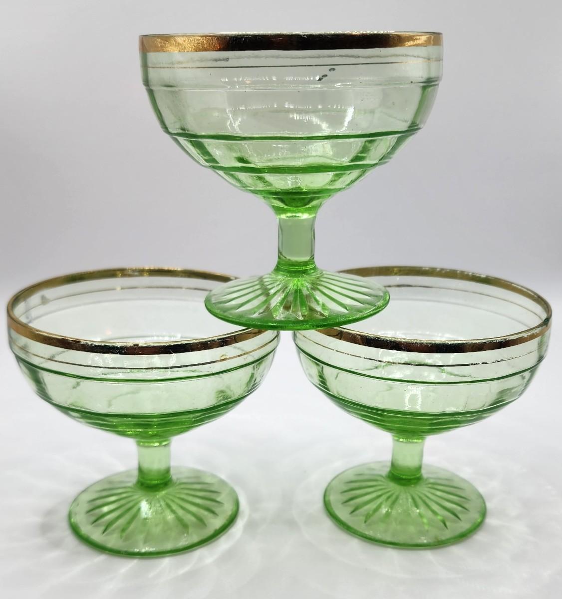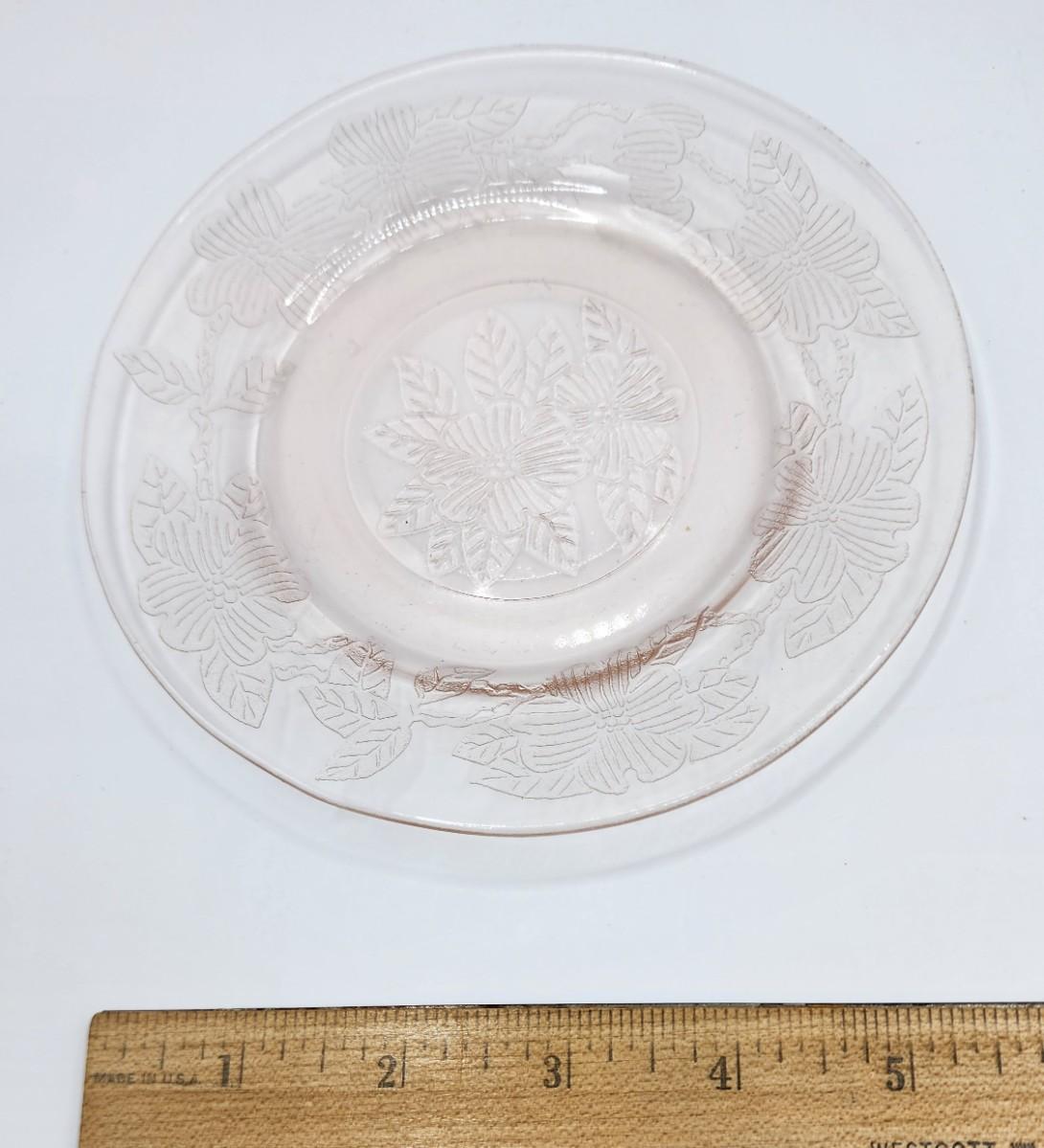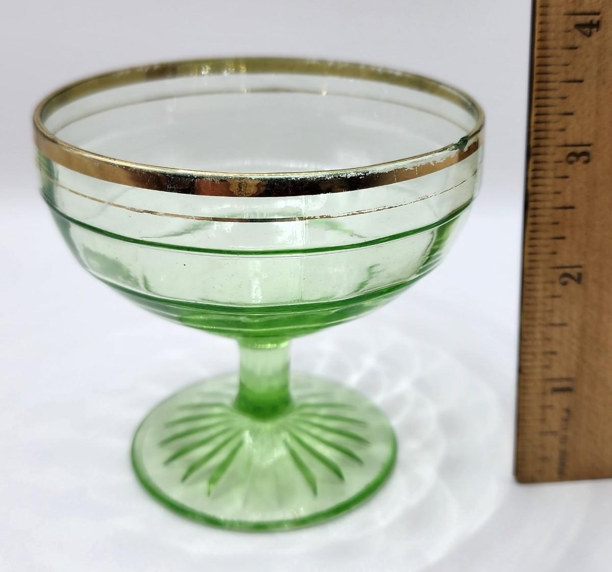 Anchor Hocking Pink Depression Glass Mayfair lidded butter dish. Pink Cakeplate. 3 Green Sherbert cups gold trimmed.