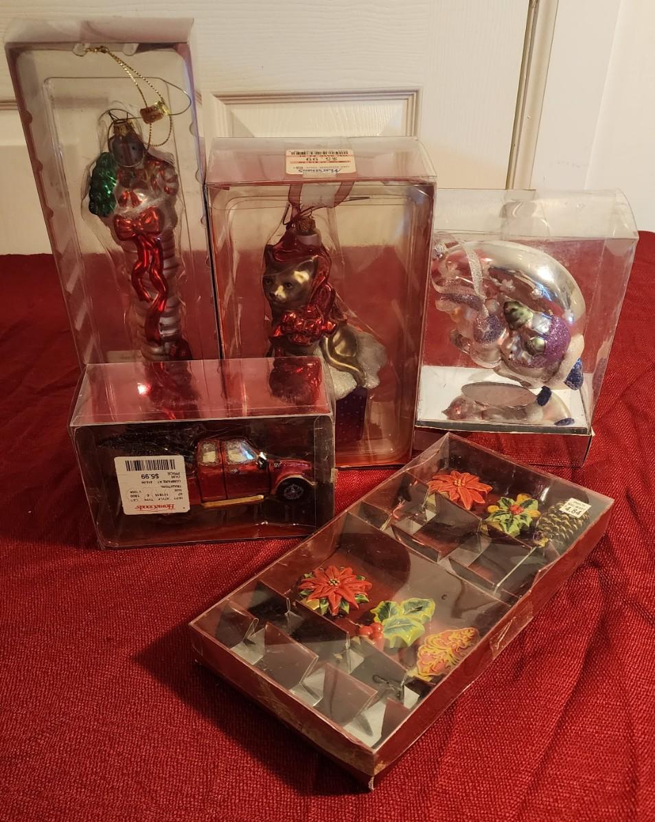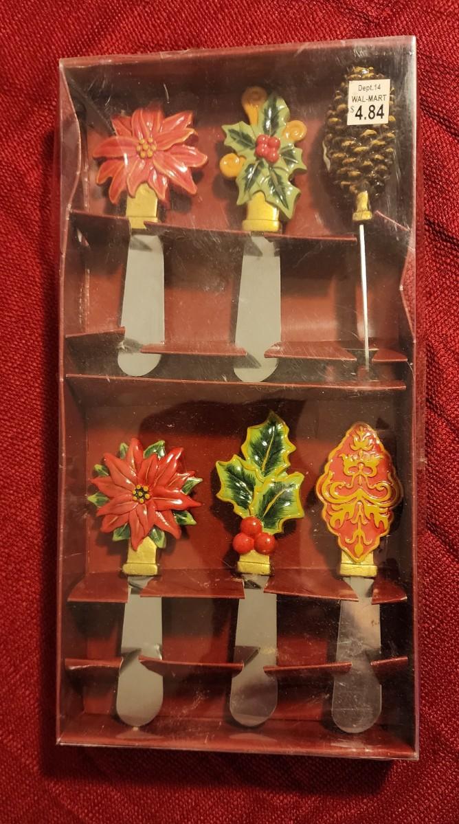 LOT::143 Christmas Bundle 4 Mercury Glass Ornaments and Pack Of Cheese Spreaders