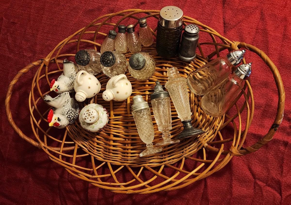 LOT::161 Bundle of Salt & Pepper Shakers (Basket Included)