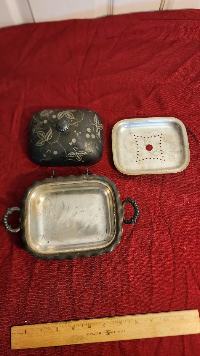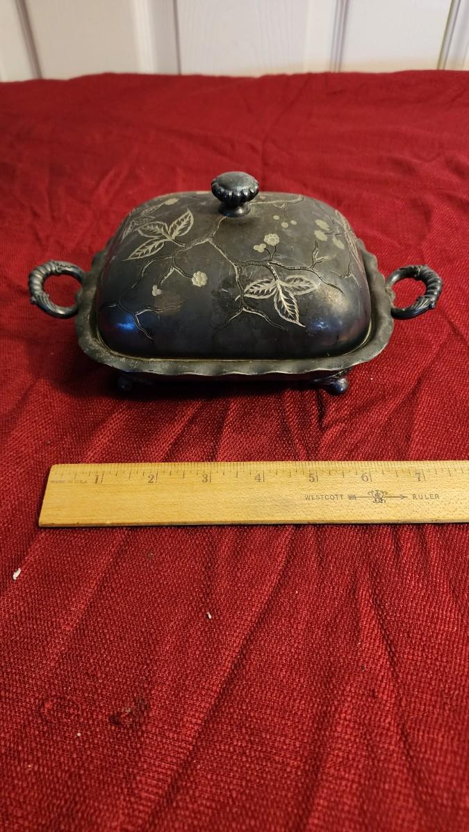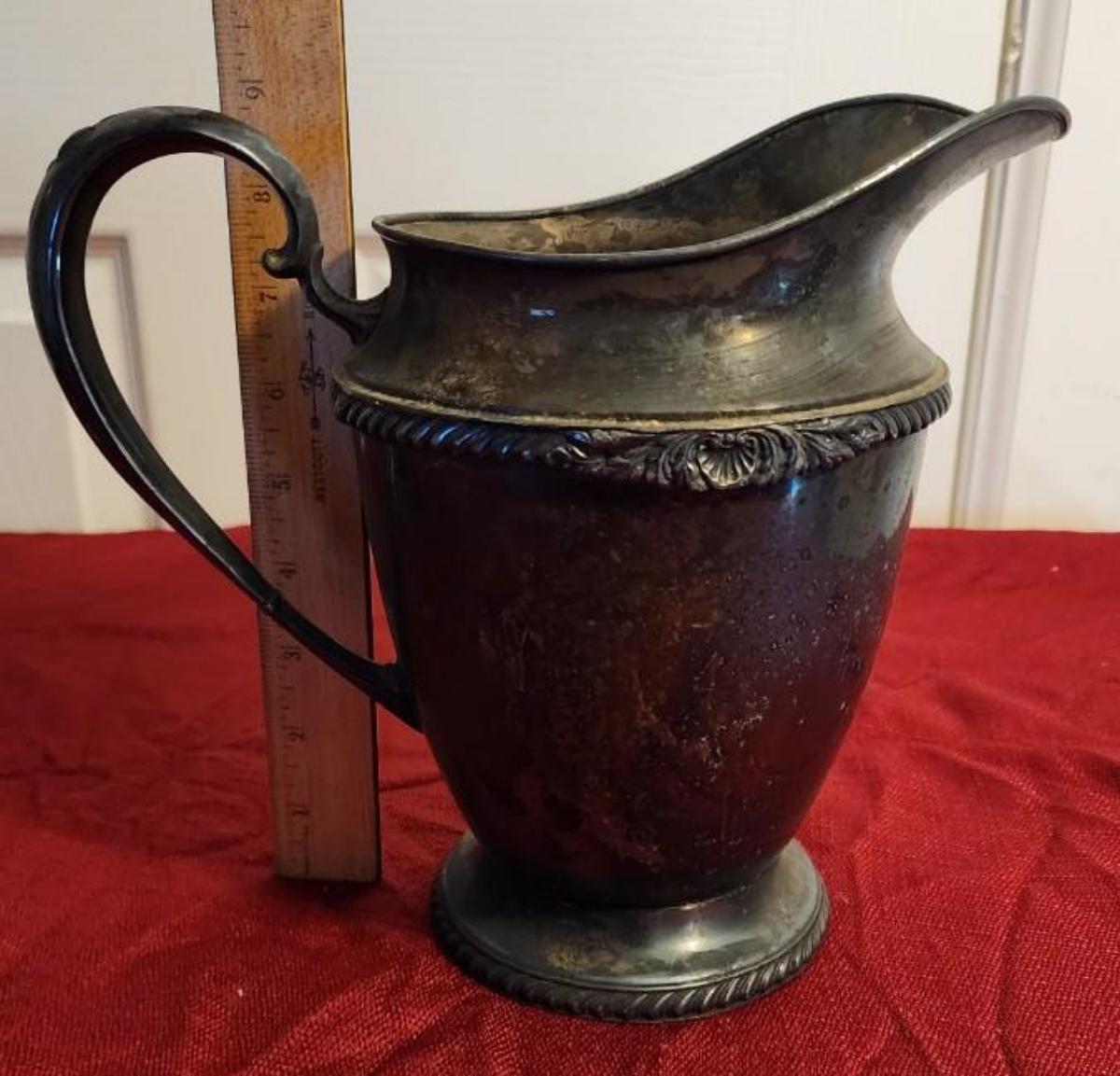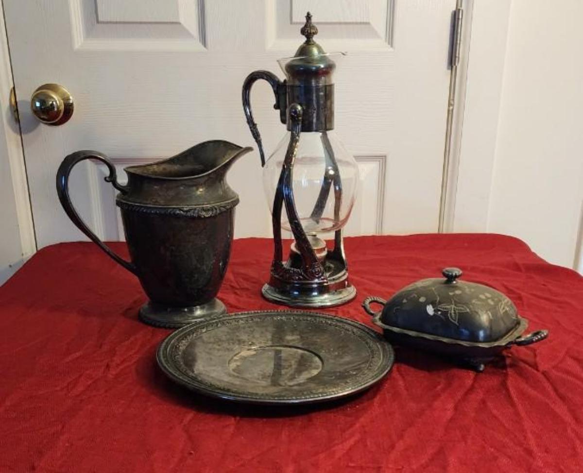 LOT::162 Vintage Silver Plate Bundle. Samovar, Plate, Pitcher, Lidded Butter Dish