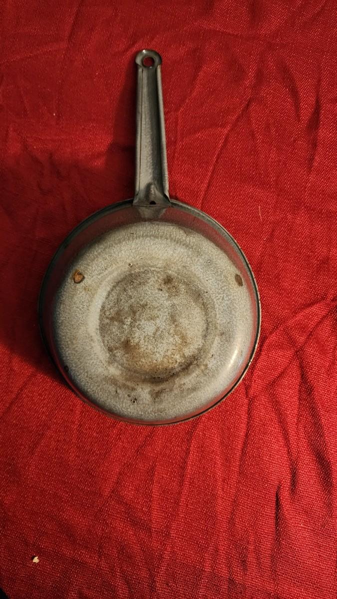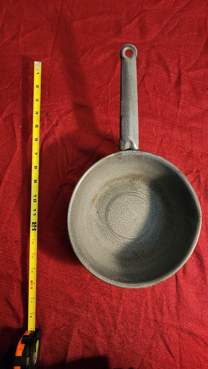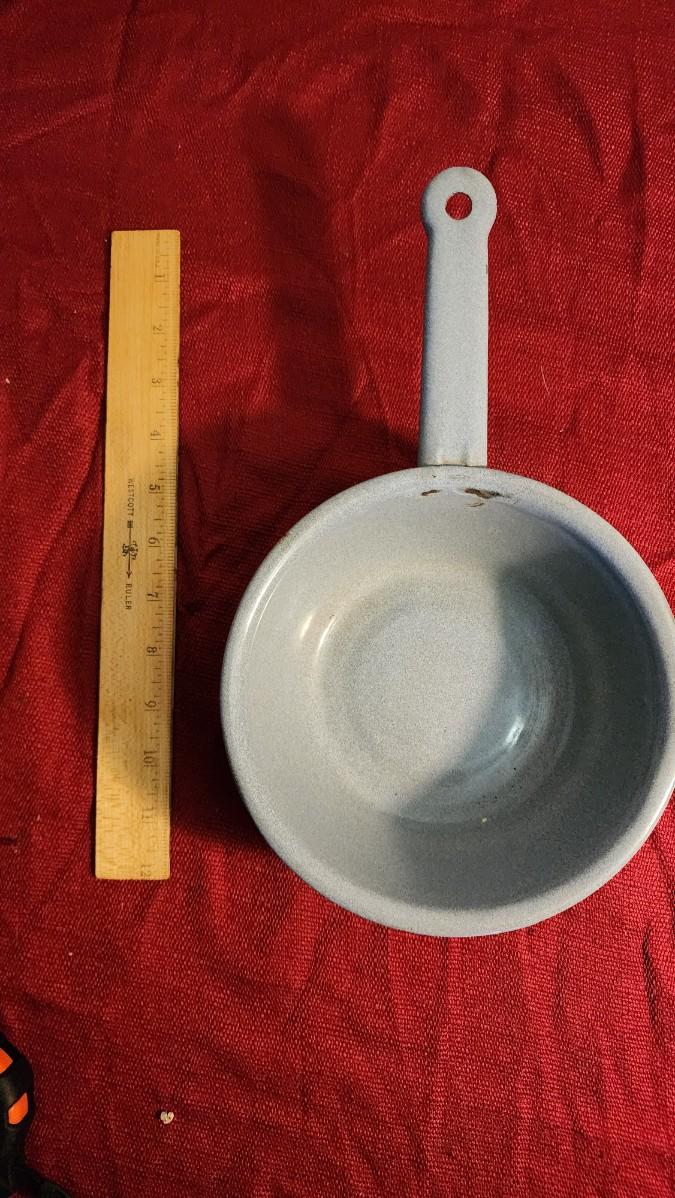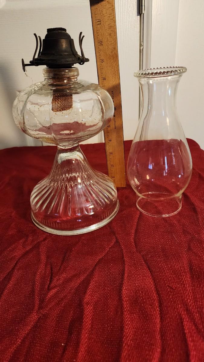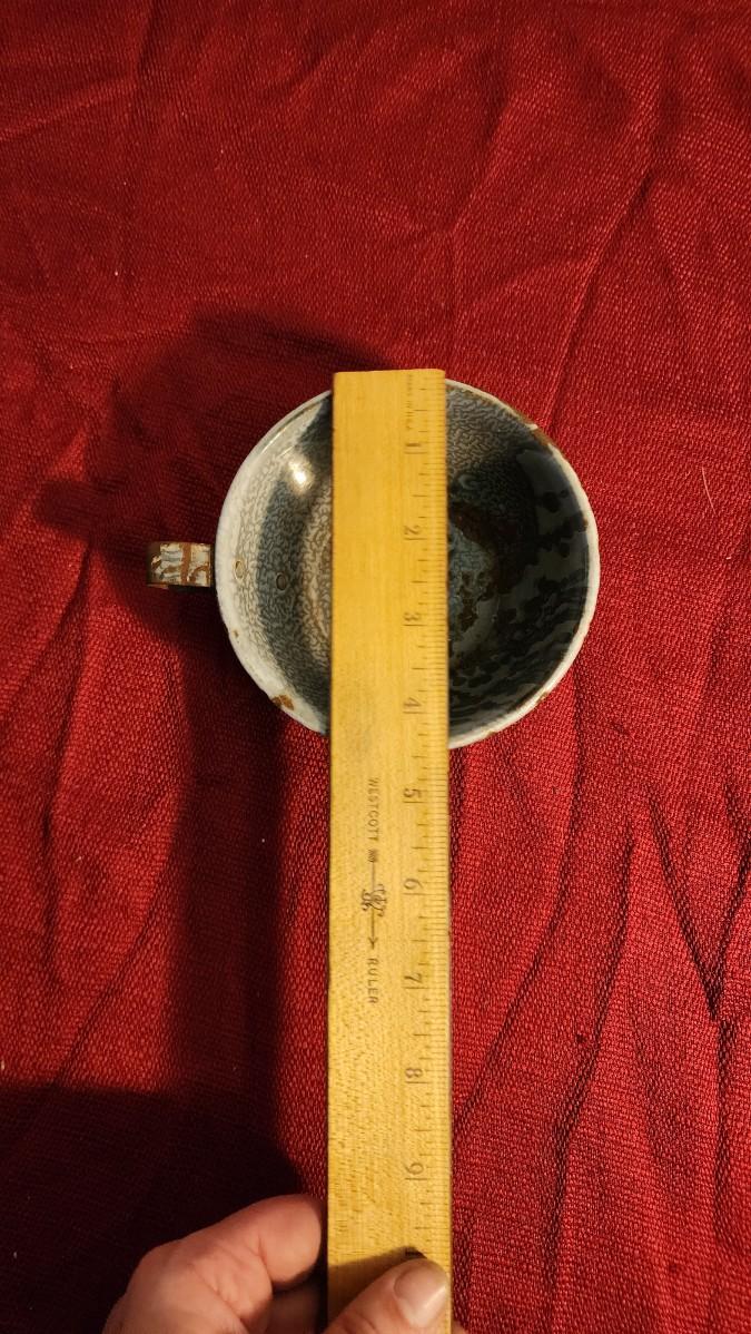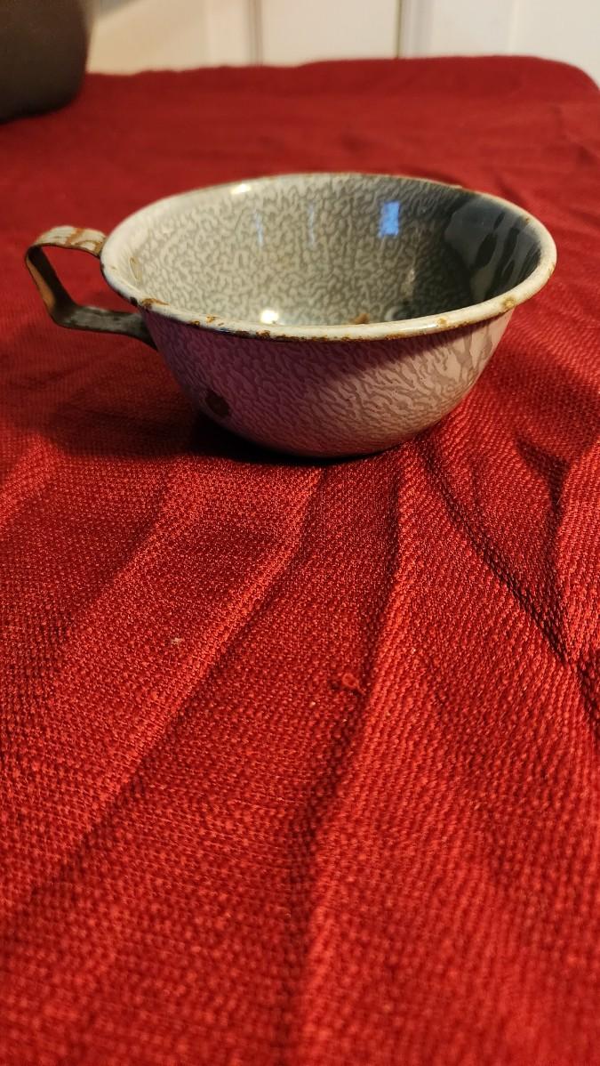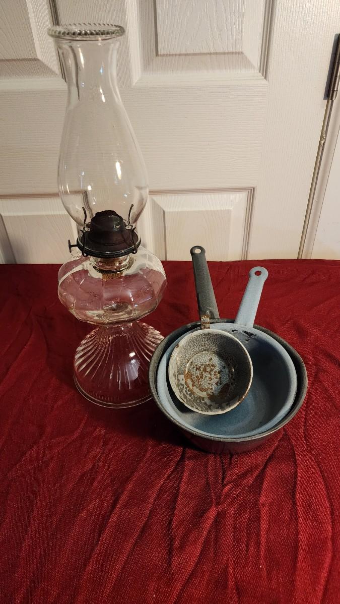 LOT:: 163 Vintage Hurricane Lamp, 2 Granite Ware Pots, Coffee Cup