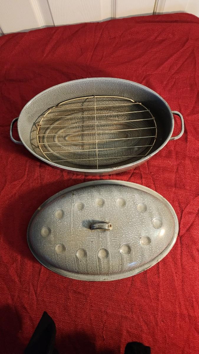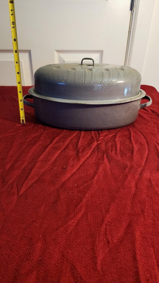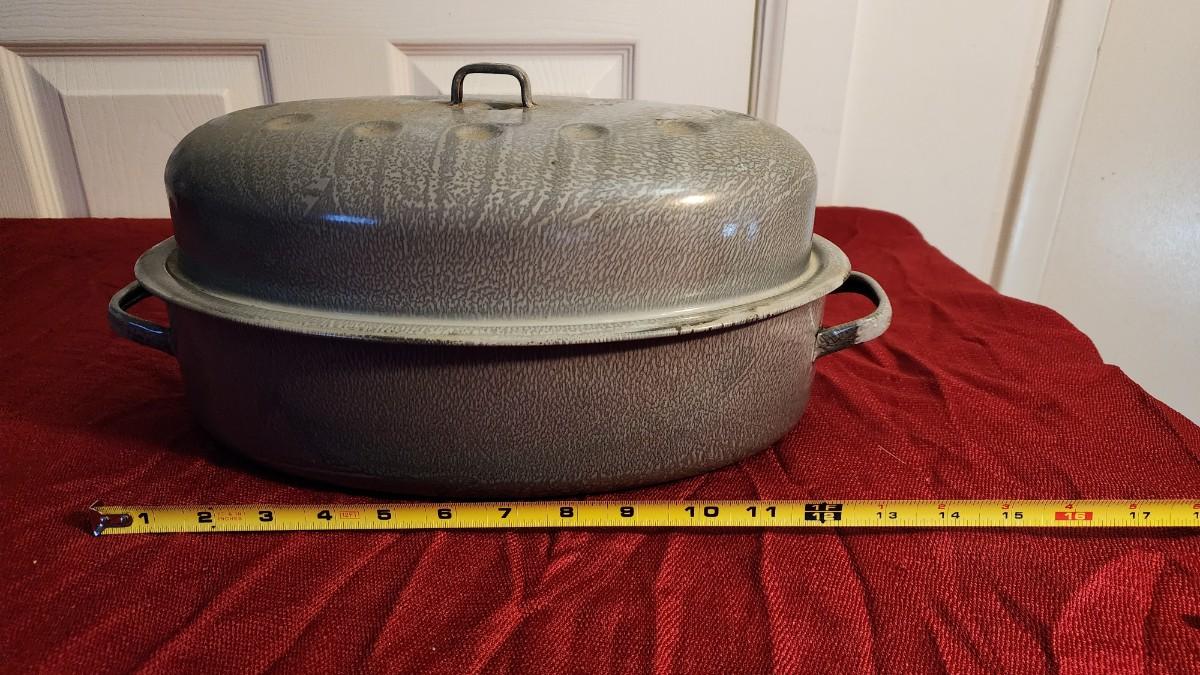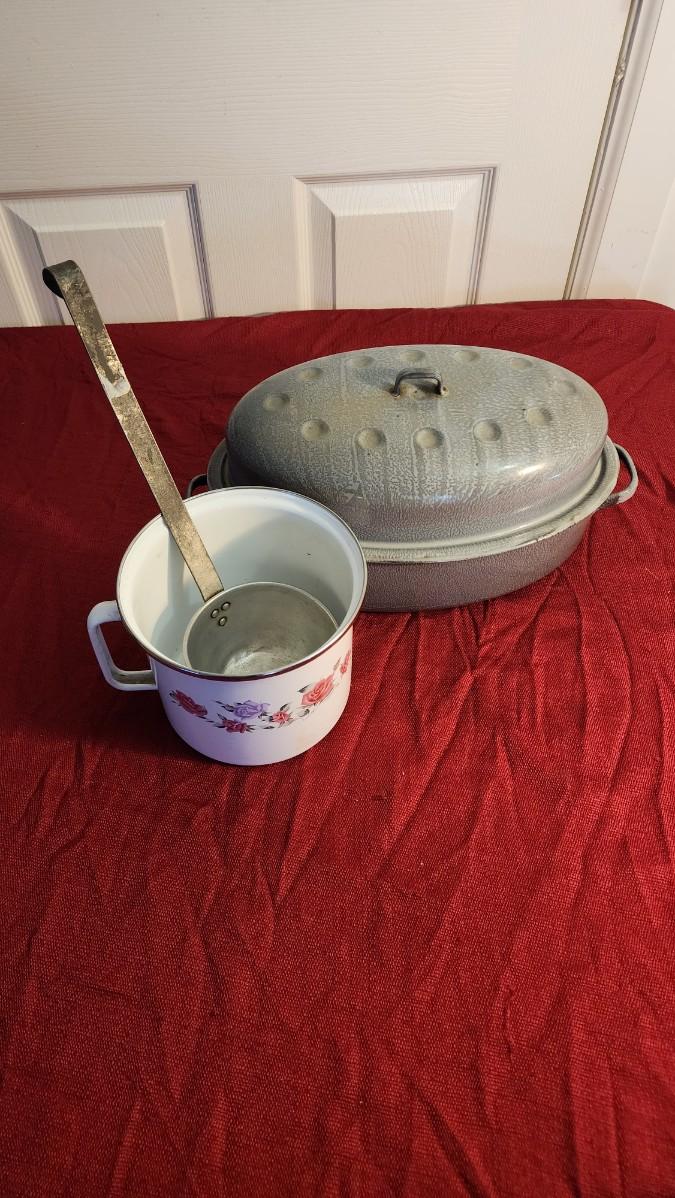 Roaster, Ladel, White Graniteware Planter. Please see all pictures as they are the best representation of the items. The pictures show condition, measurements if taken, and what is included in the lot. Due to the large amount that we photograph and the time frame, we are not always able to take measurements. All items unless noted, are pre-owned and have been used. If you purchased furniture, you must bring help. We do not allow one person to carry large furniture out on their own. Bring help, tools and a truck for the safety of our client’s homes, and your personal safety. Any damages that result to the property including walls, and floors due to moving of the furniture will be charged to the buyer. Company policy. Thank you.