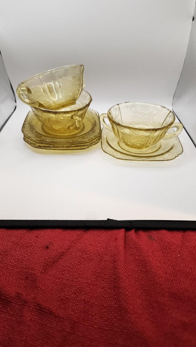 LOT::171 Federal Glass Co 1930s Marigold Depression Glass "Madrid" Pattern 3 Nappy Bowls & 5 Liners