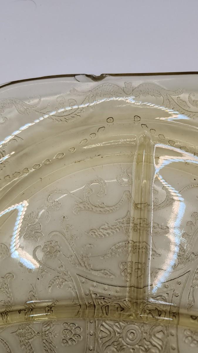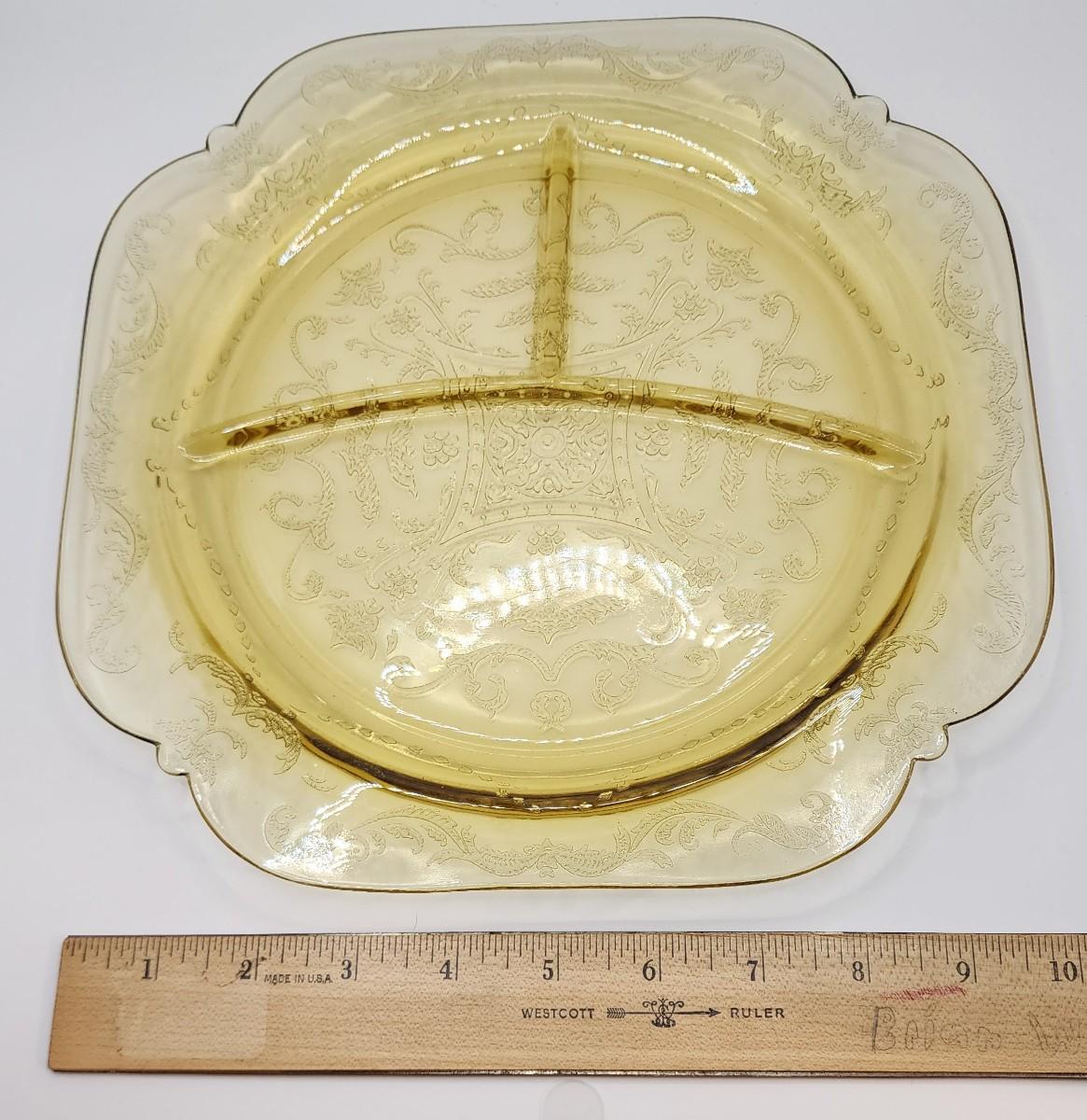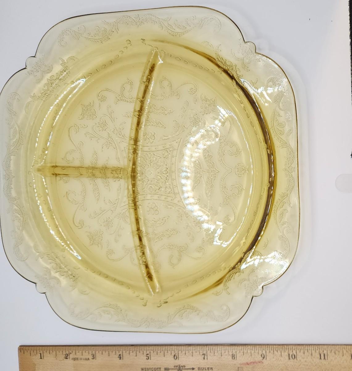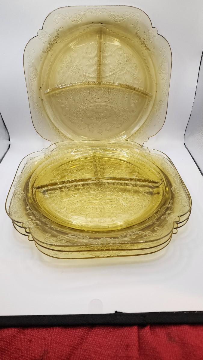 LOT::173 Federal Glass Co 1930s Marigold Depression Glass "Madrid" Pattern 7 Portioned Dinner/Luncheon Plates