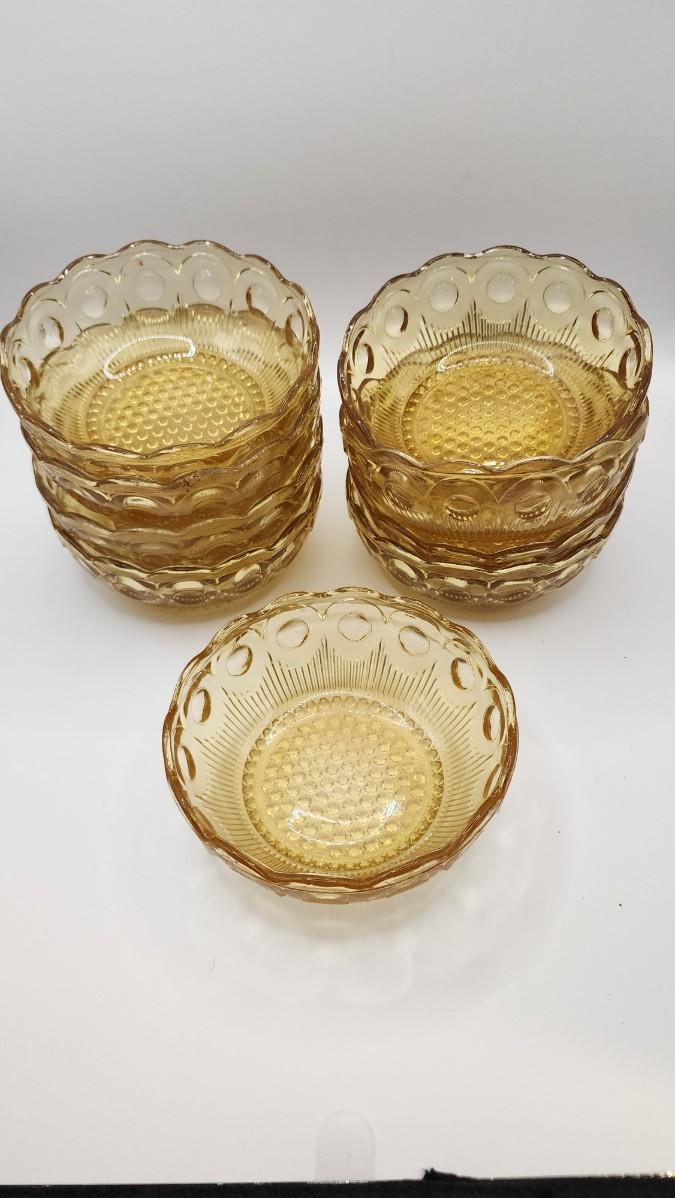 LOT::174 Bartlet Colin's Glass Co St. Genevieve Pattern Amber 9 Fruit Bowls
