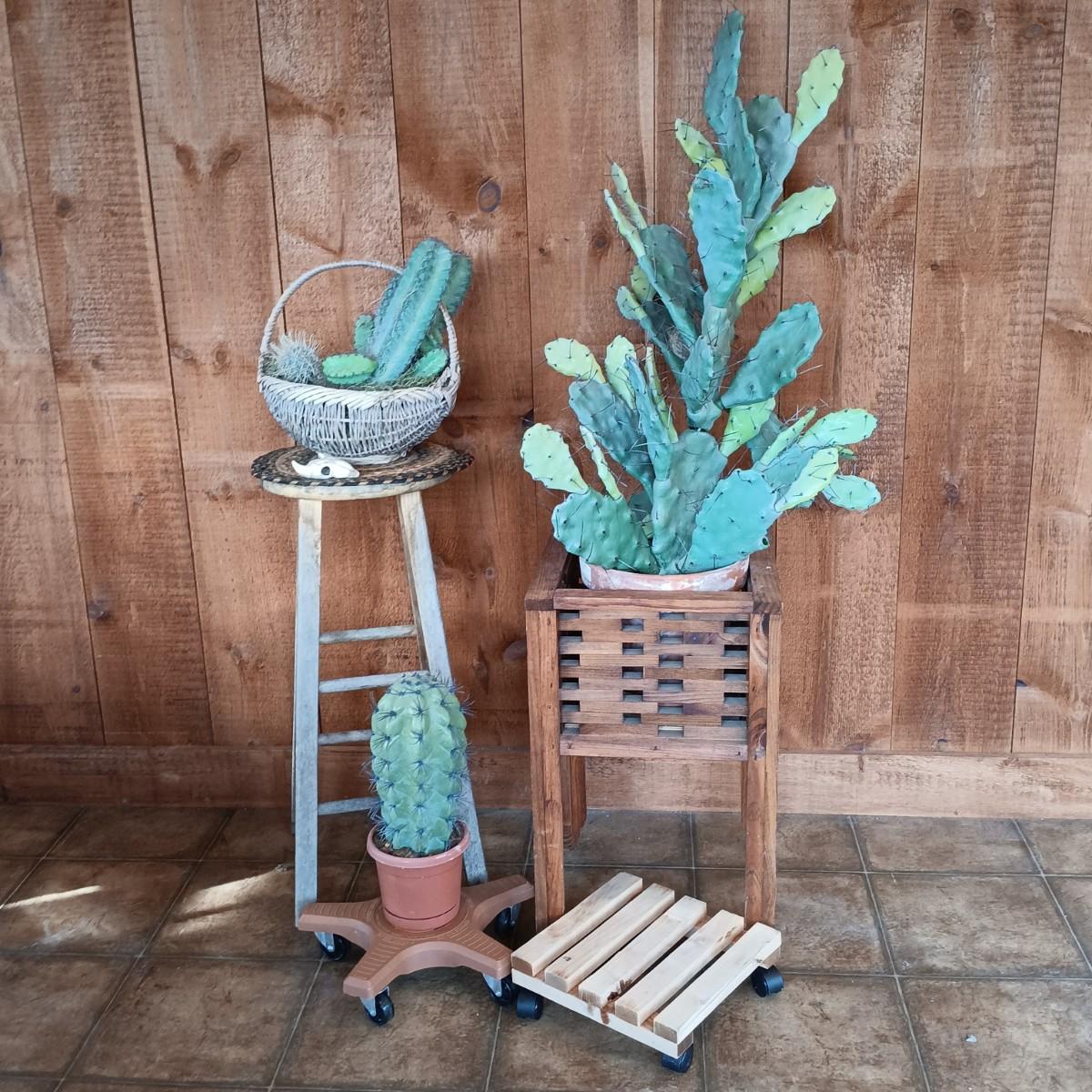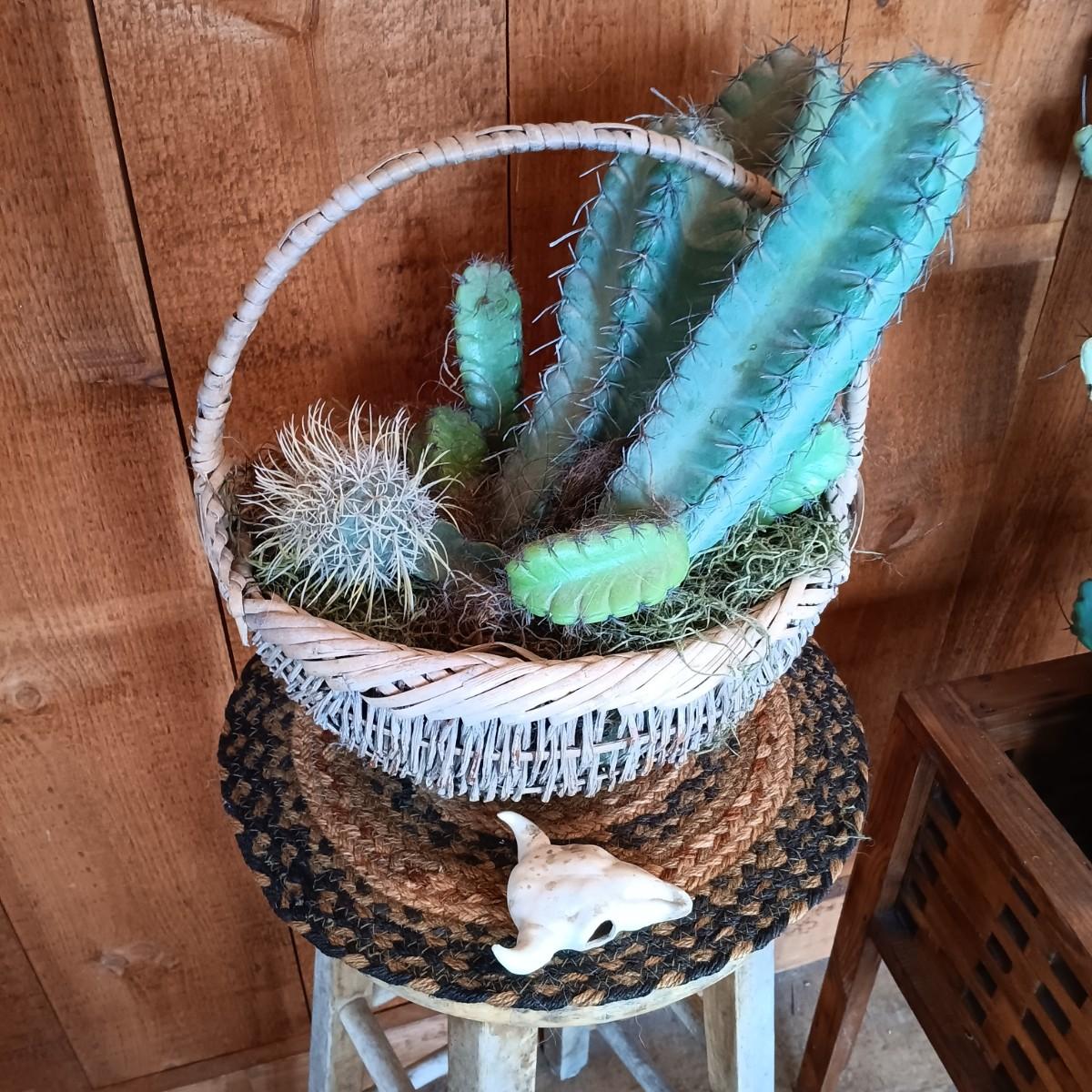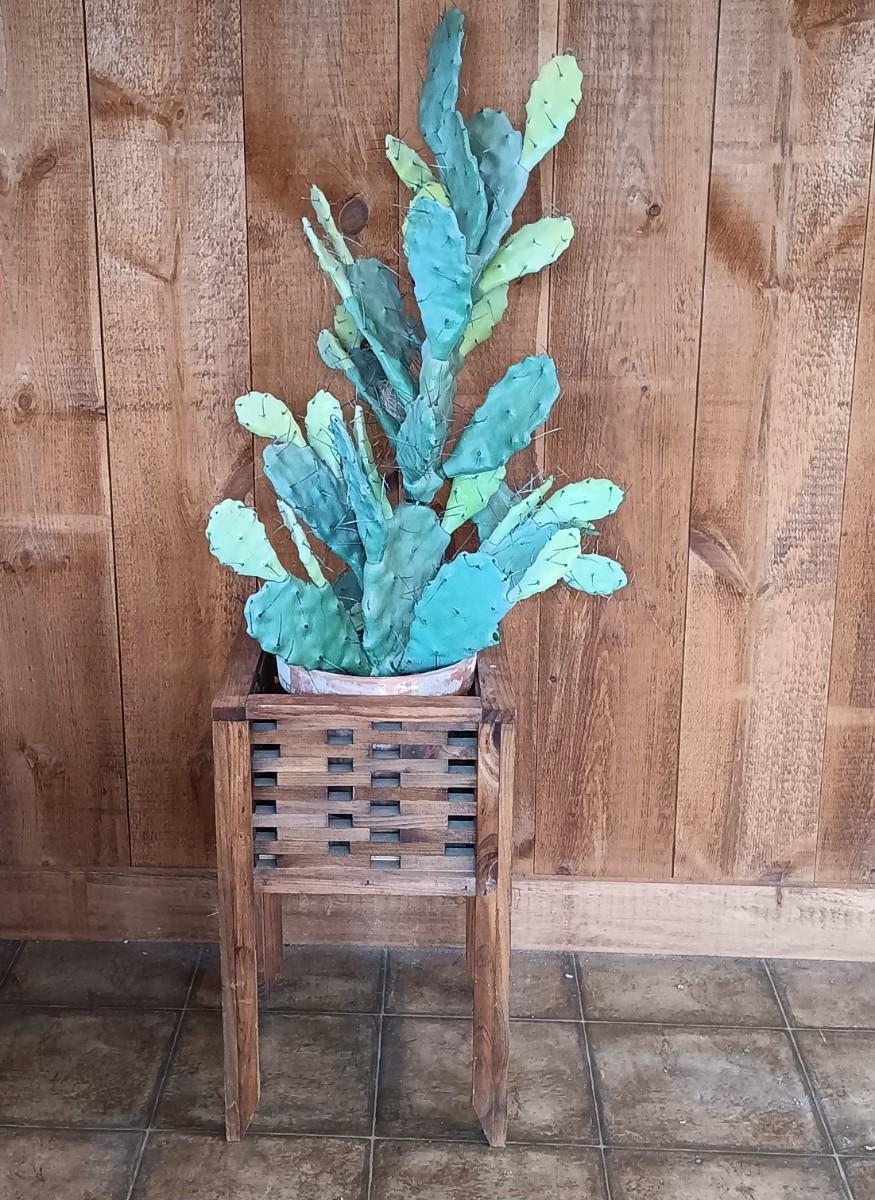 LOT 4K: Mid-Western Style Decorative/Faux Cacti with Plant Stands