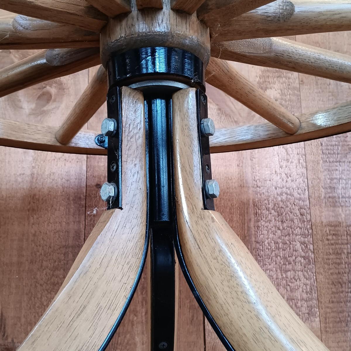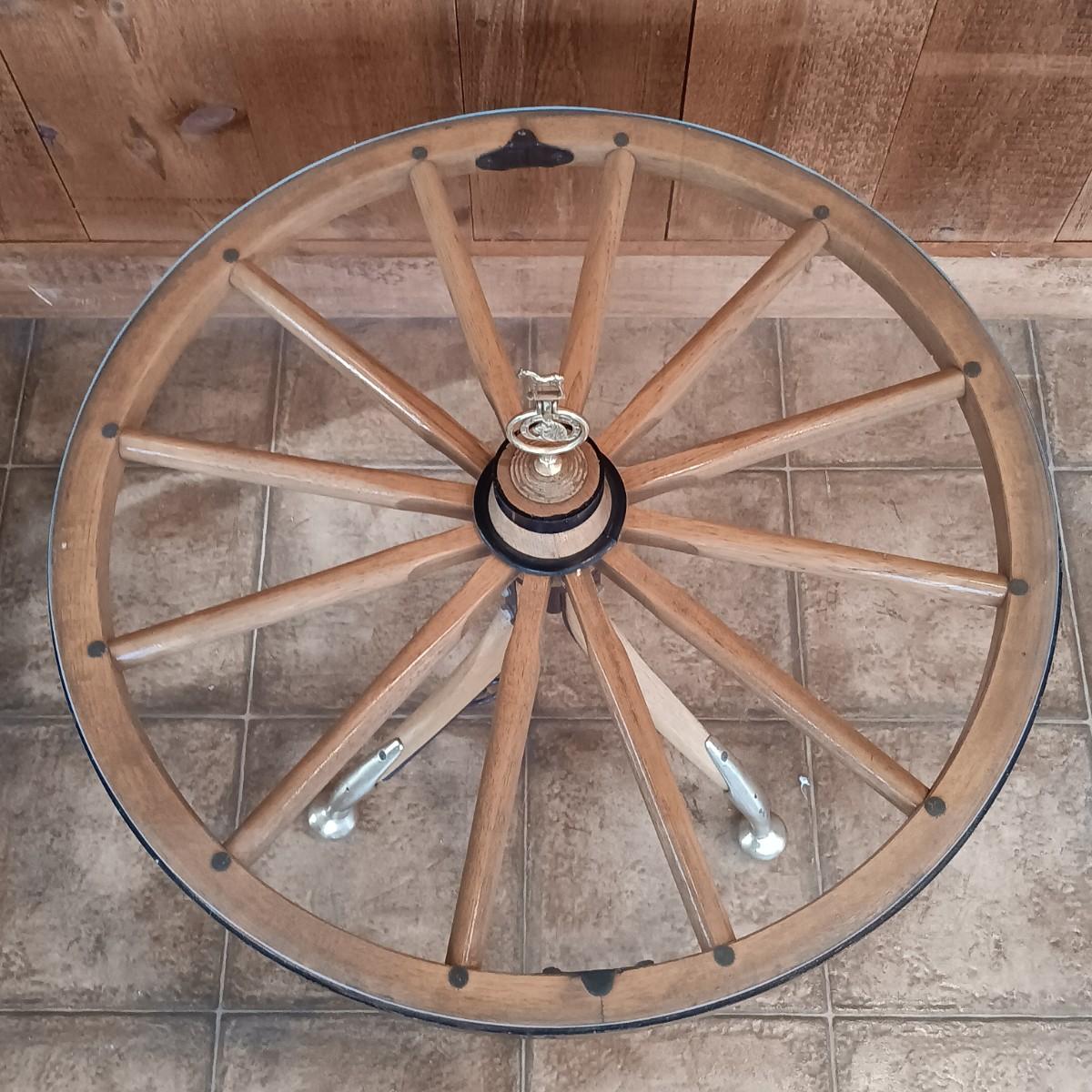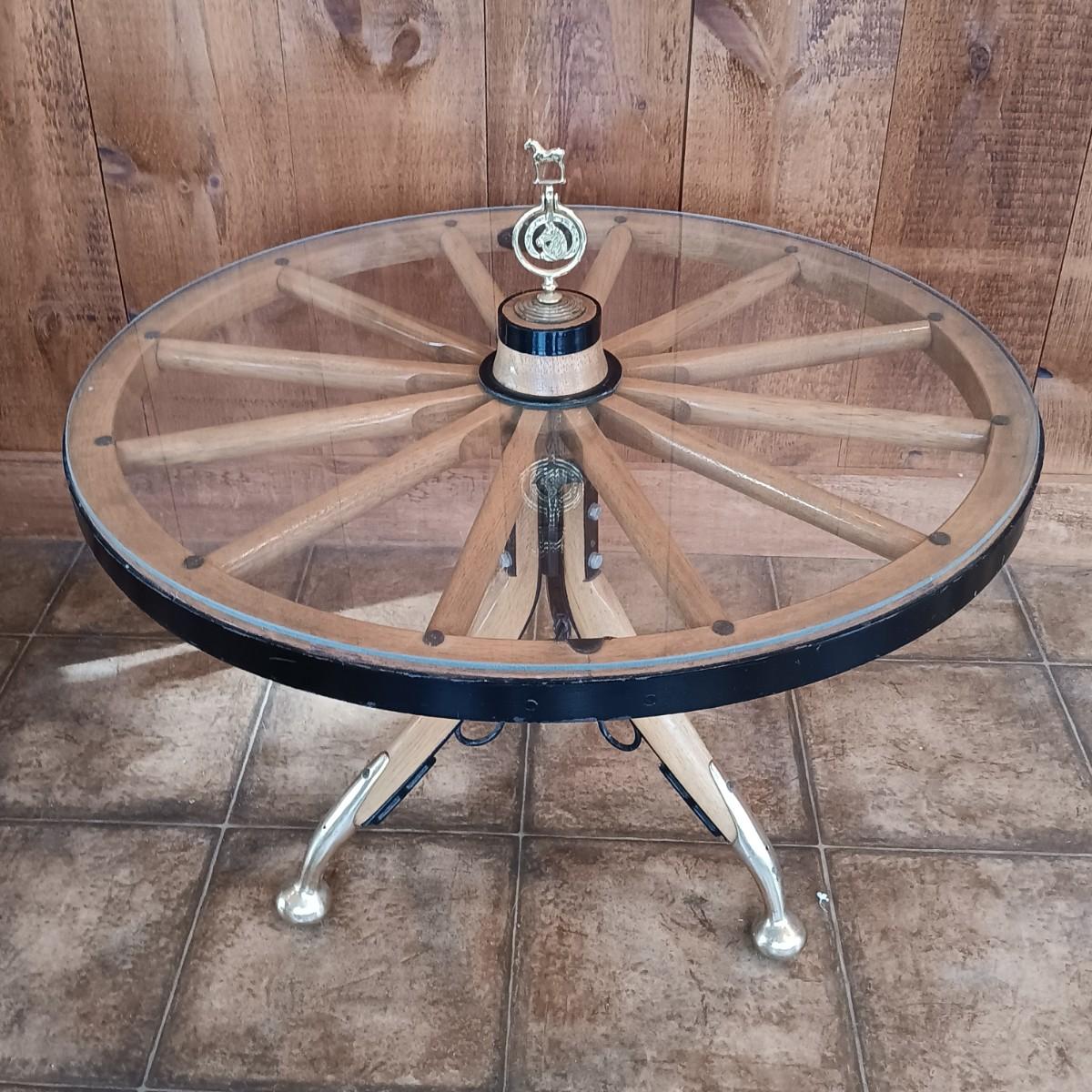 LOT 5K: Rustic Wagon Wheel Coffee Table with Glass Top