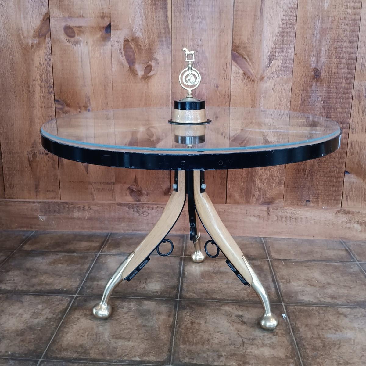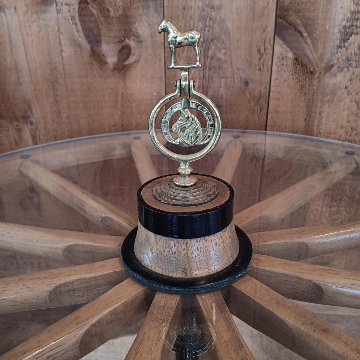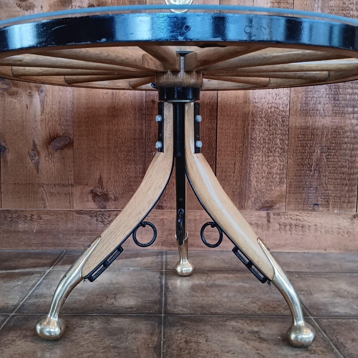 LOT 5K: Rustic Wagon Wheel Coffee Table with Glass Top
