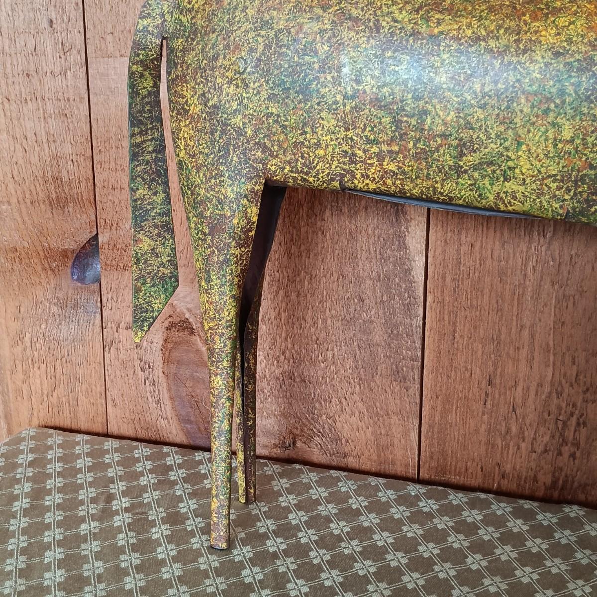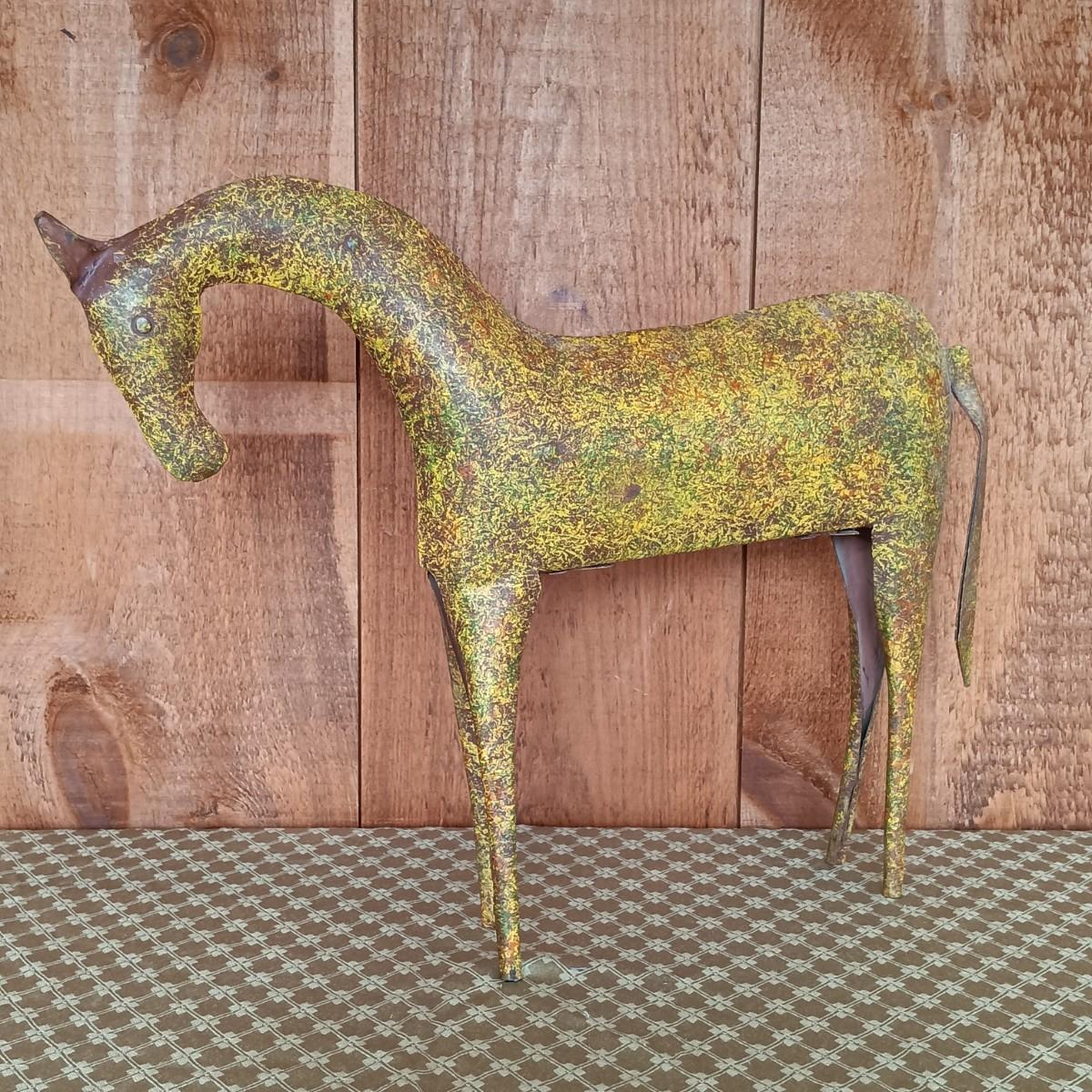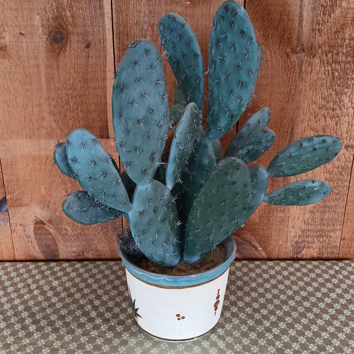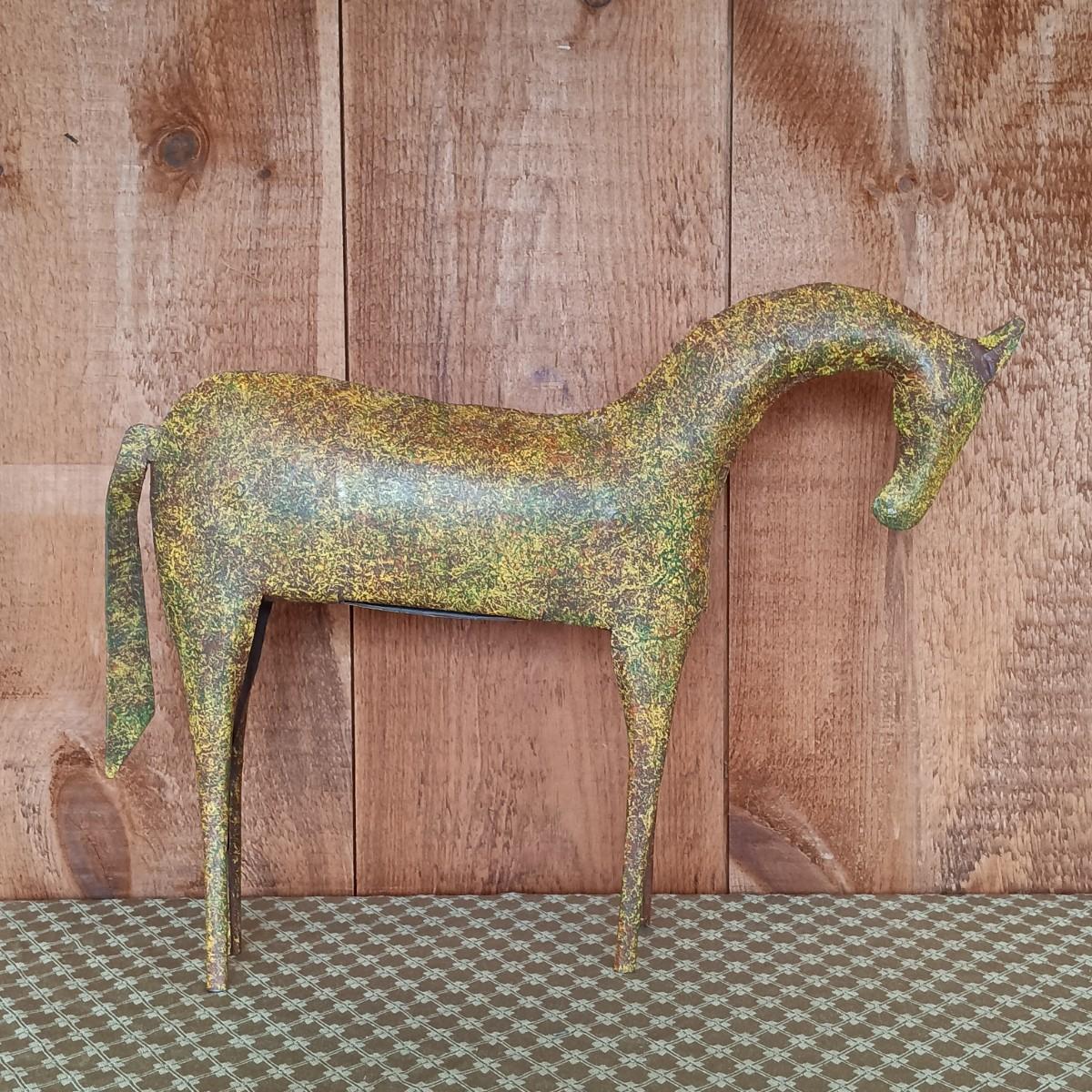 LOT 8K: Ray Swanson 'Little Apache Girl' Needlepointed Print, Speckled Metal Horse & Decorative Cactus in Tohala Pottery