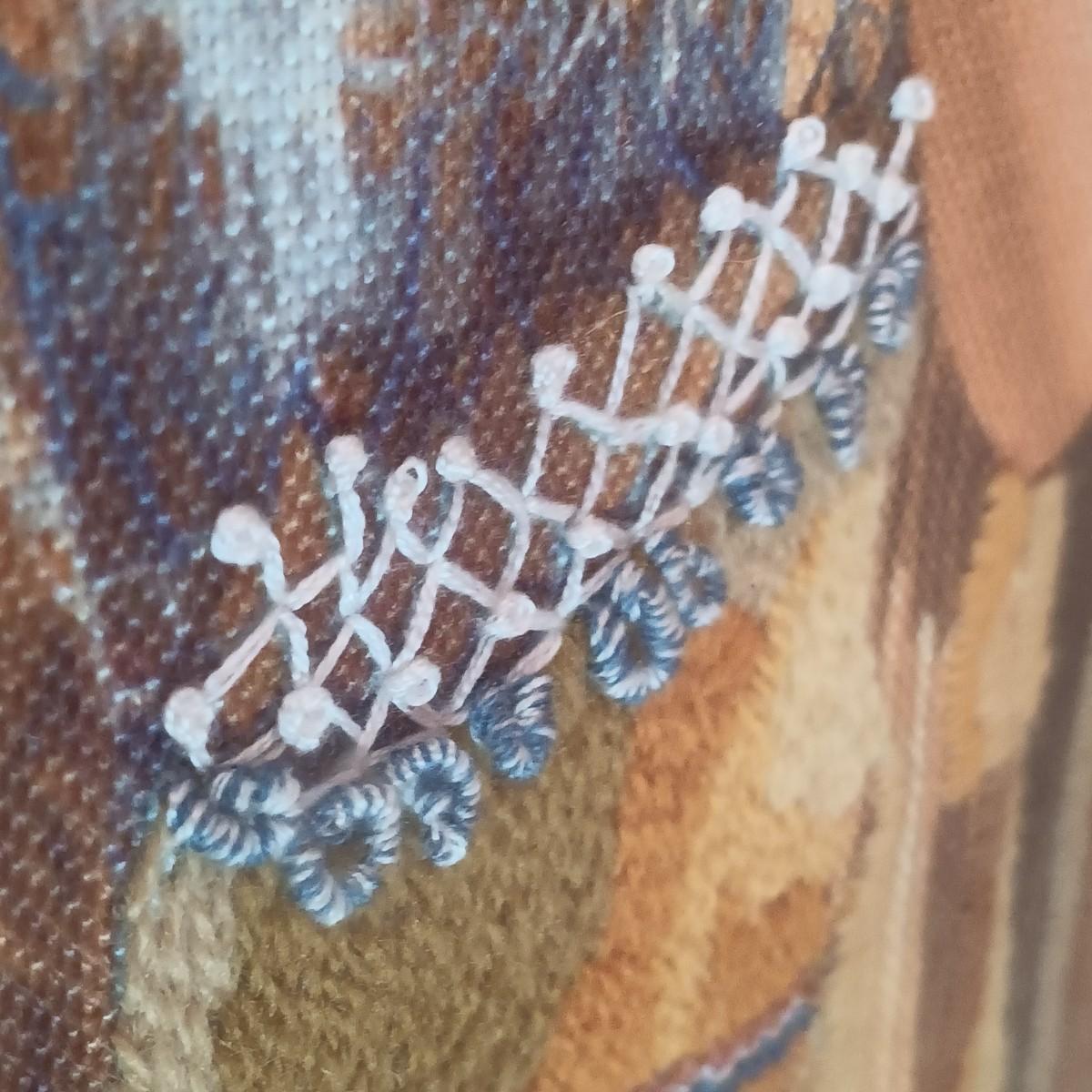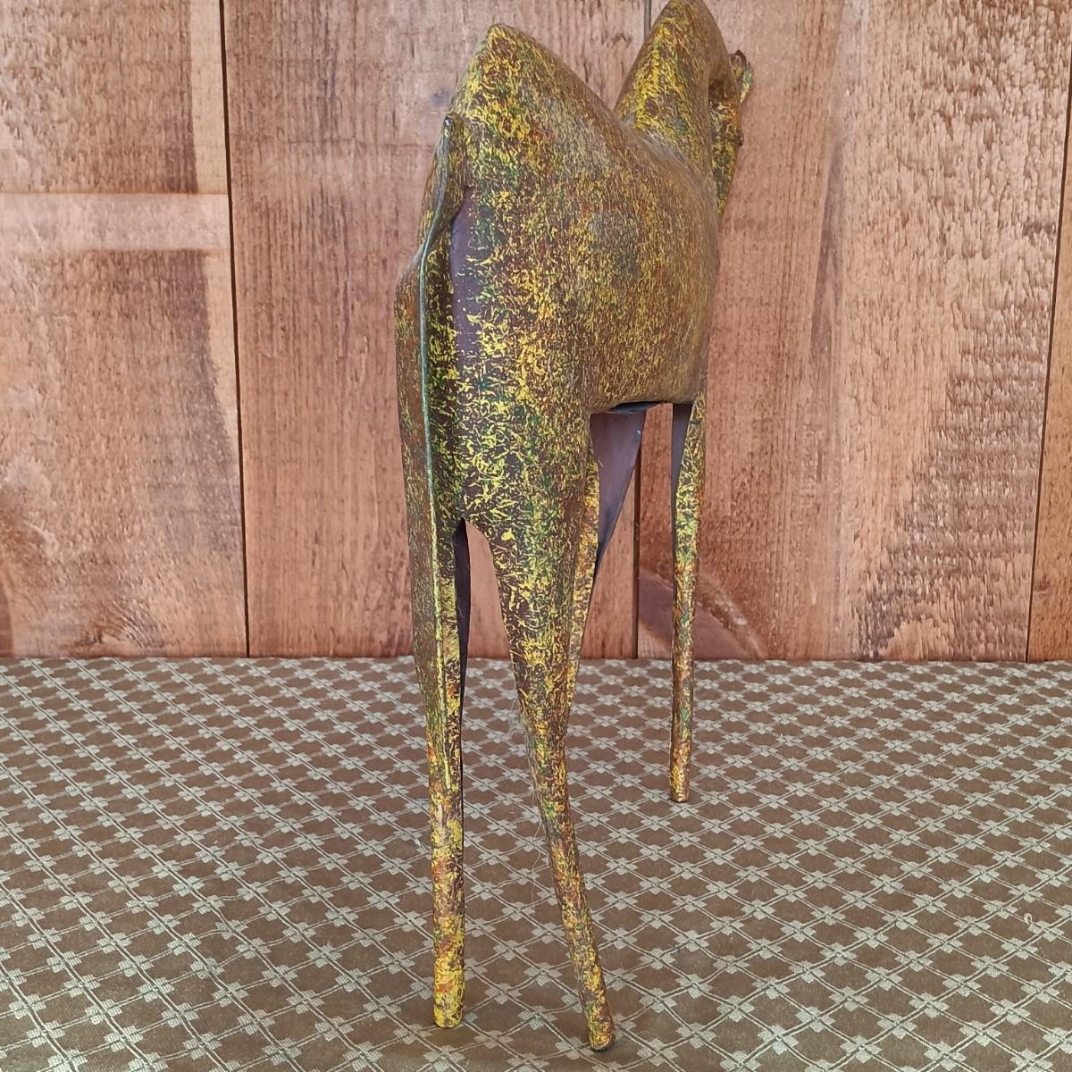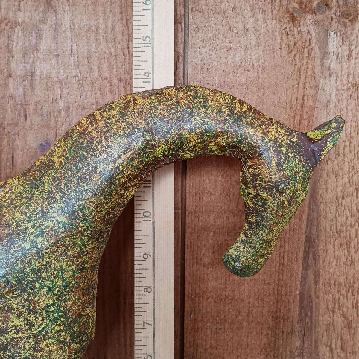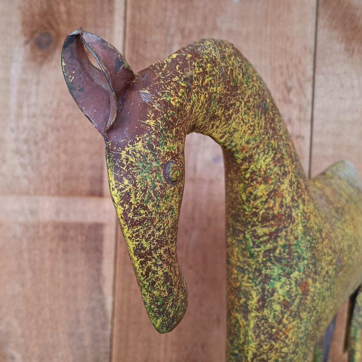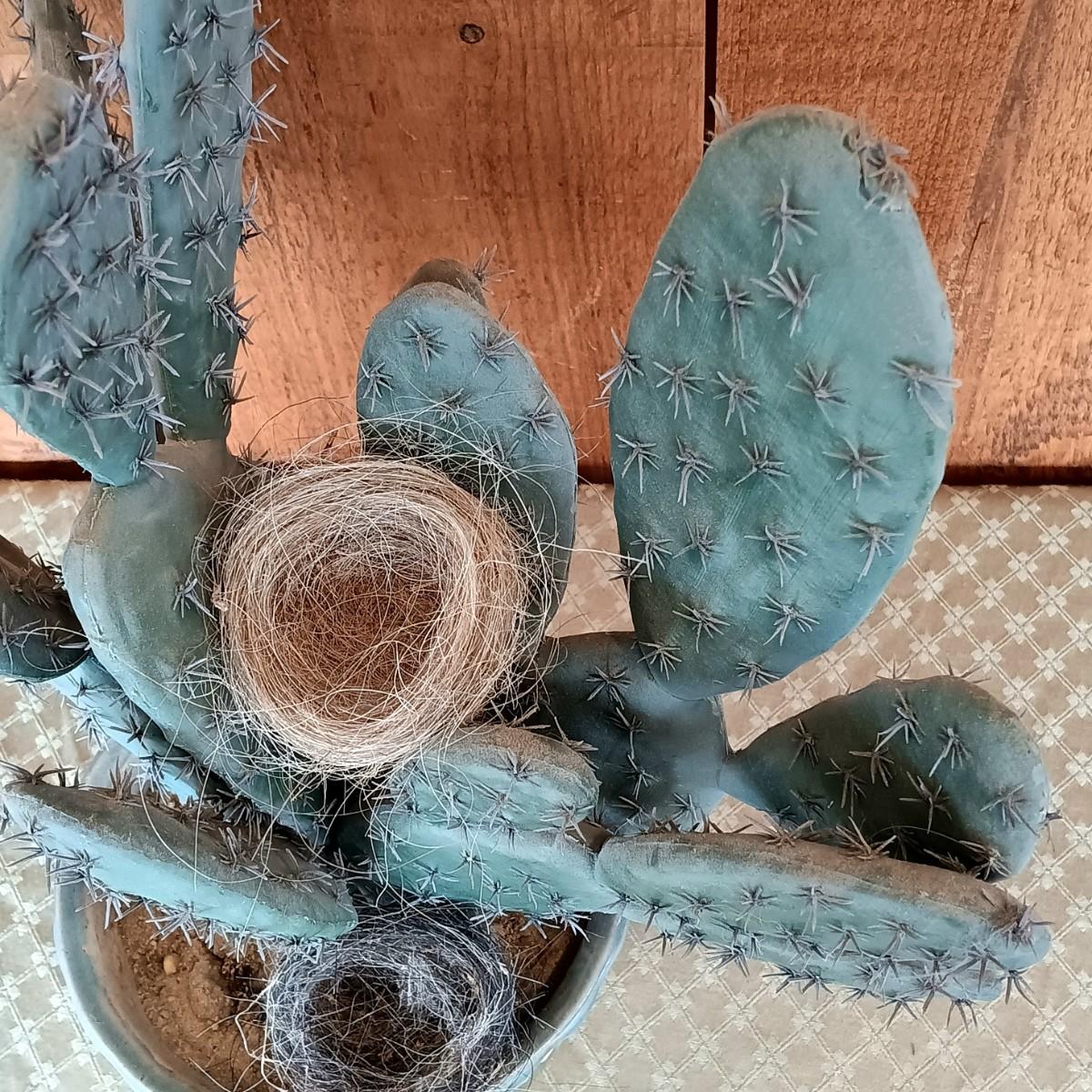 LOT 8K: Ray Swanson 'Little Apache Girl' Needlepointed Print, Speckled Metal Horse & Decorative Cactus in Tohala Pottery