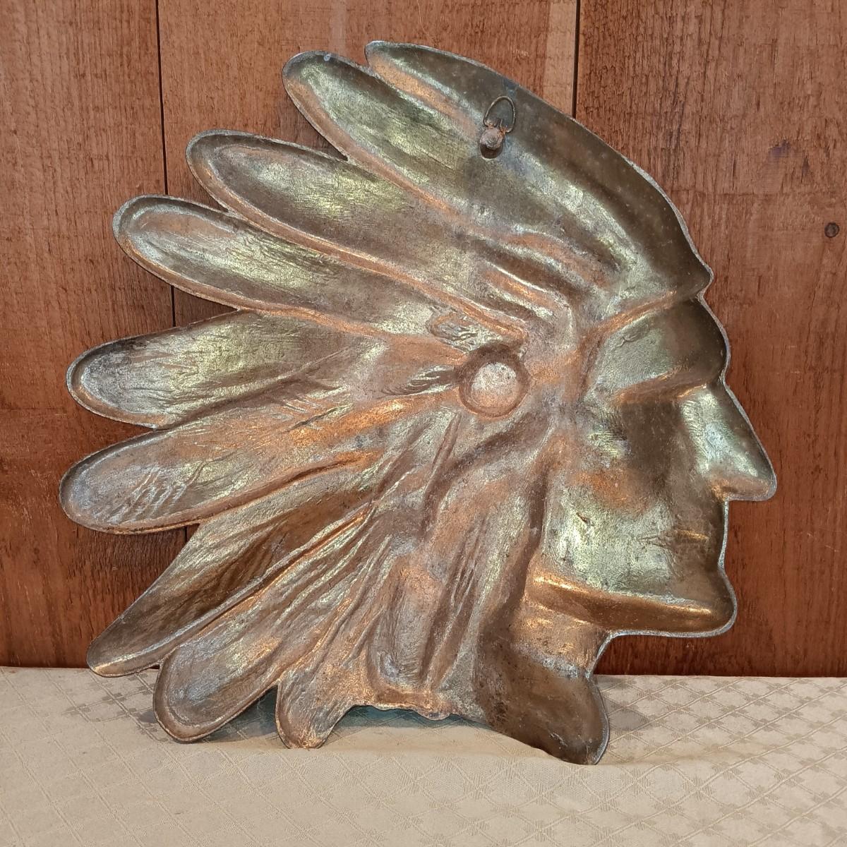 LOT 22K: 14" Bronze Native American Chief Wall Plaque