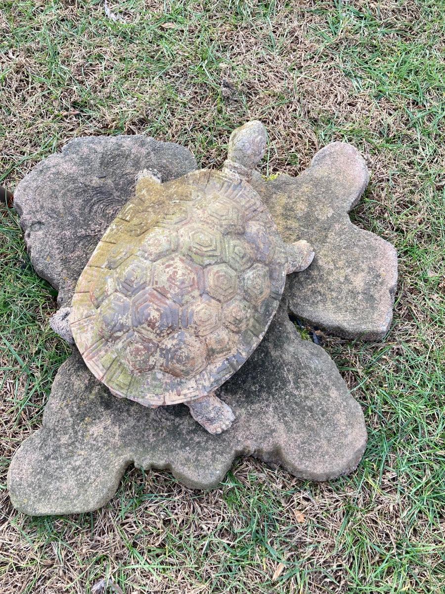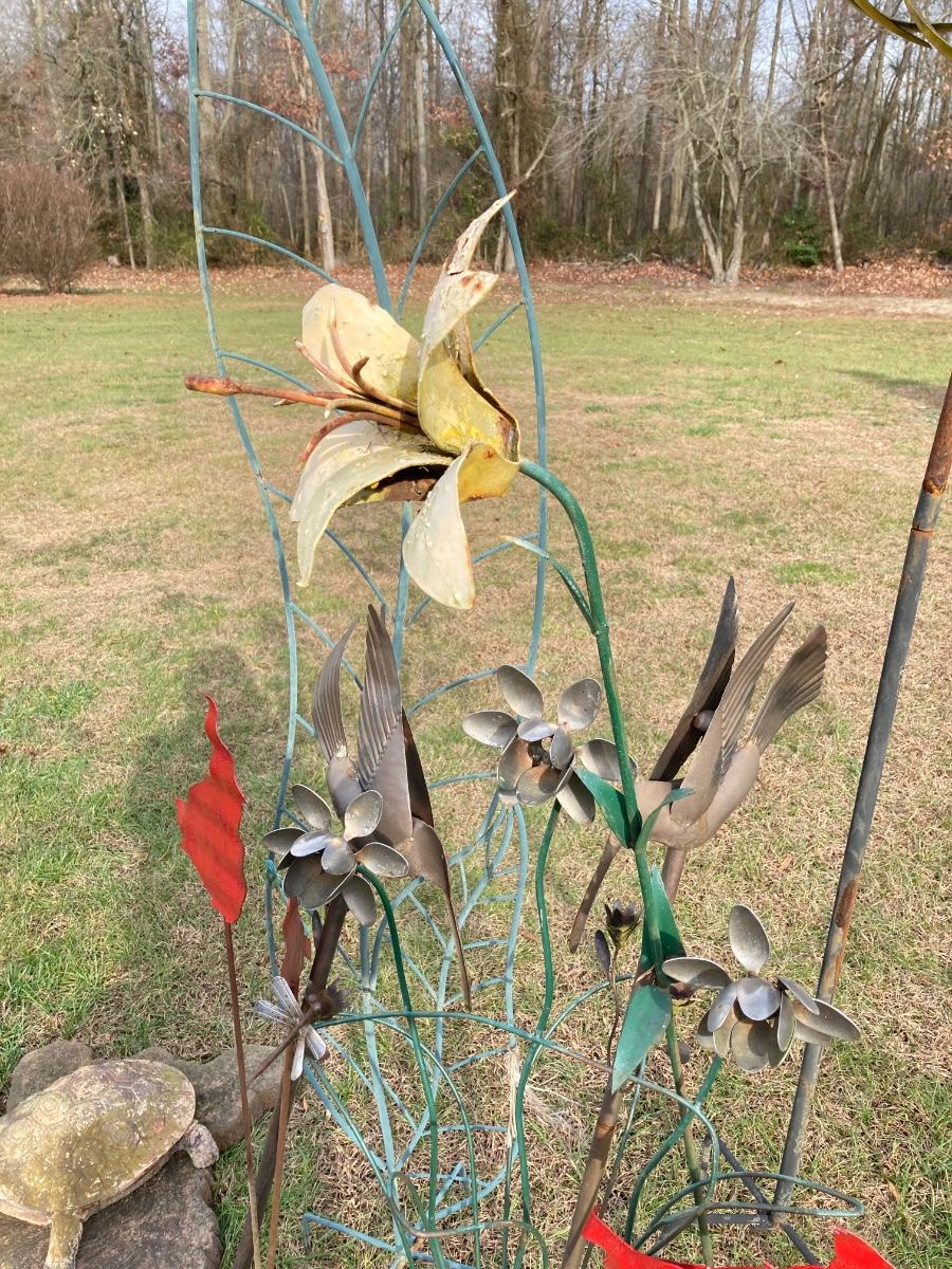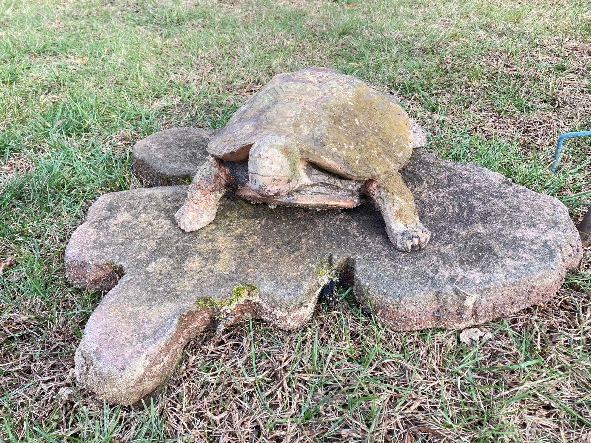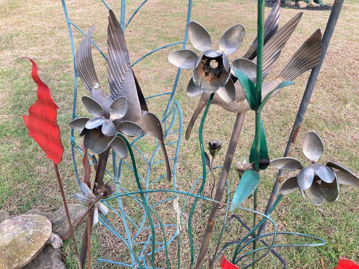 LOT 31J: Outdoor Yard Decor - Concrete Turtle with Metal Flowers and More