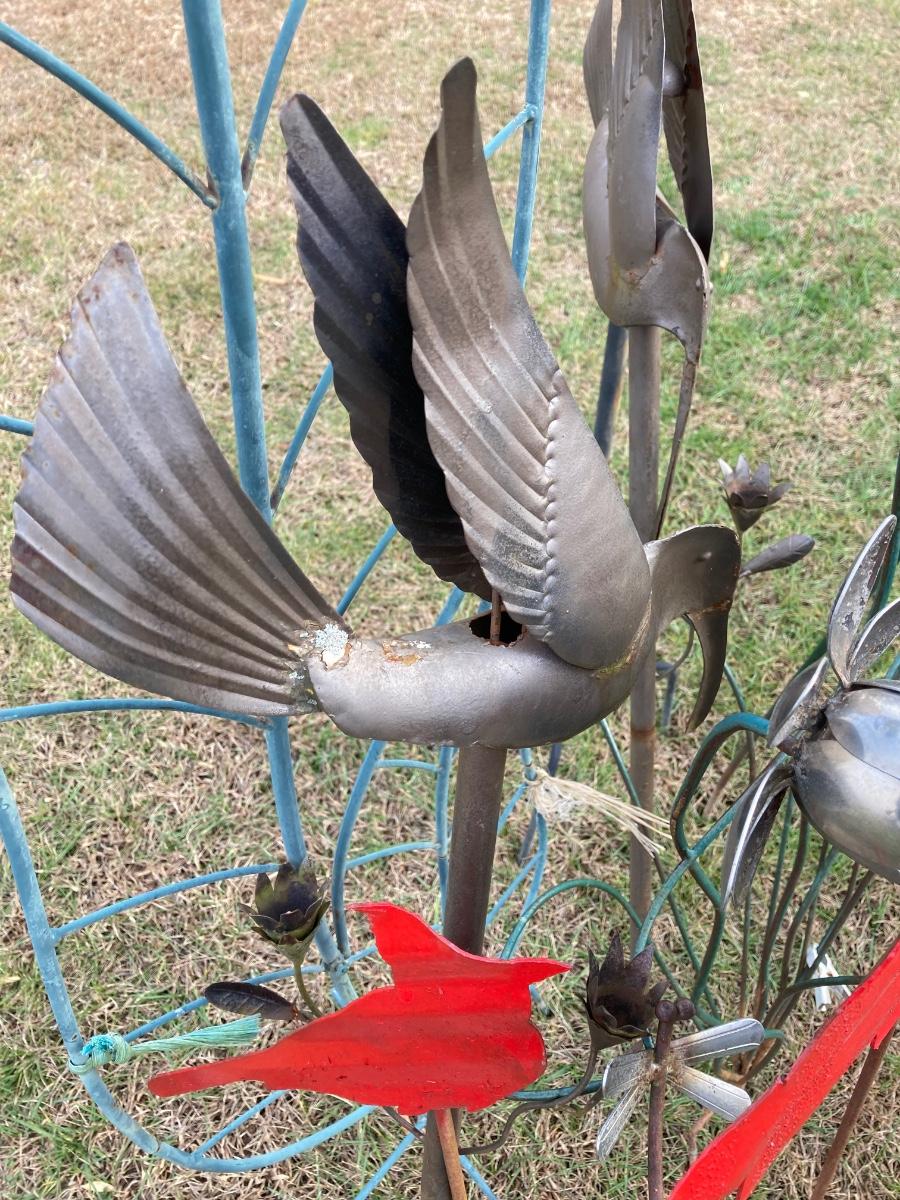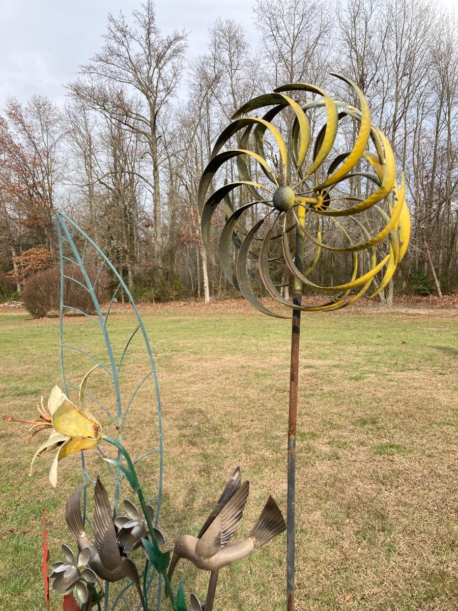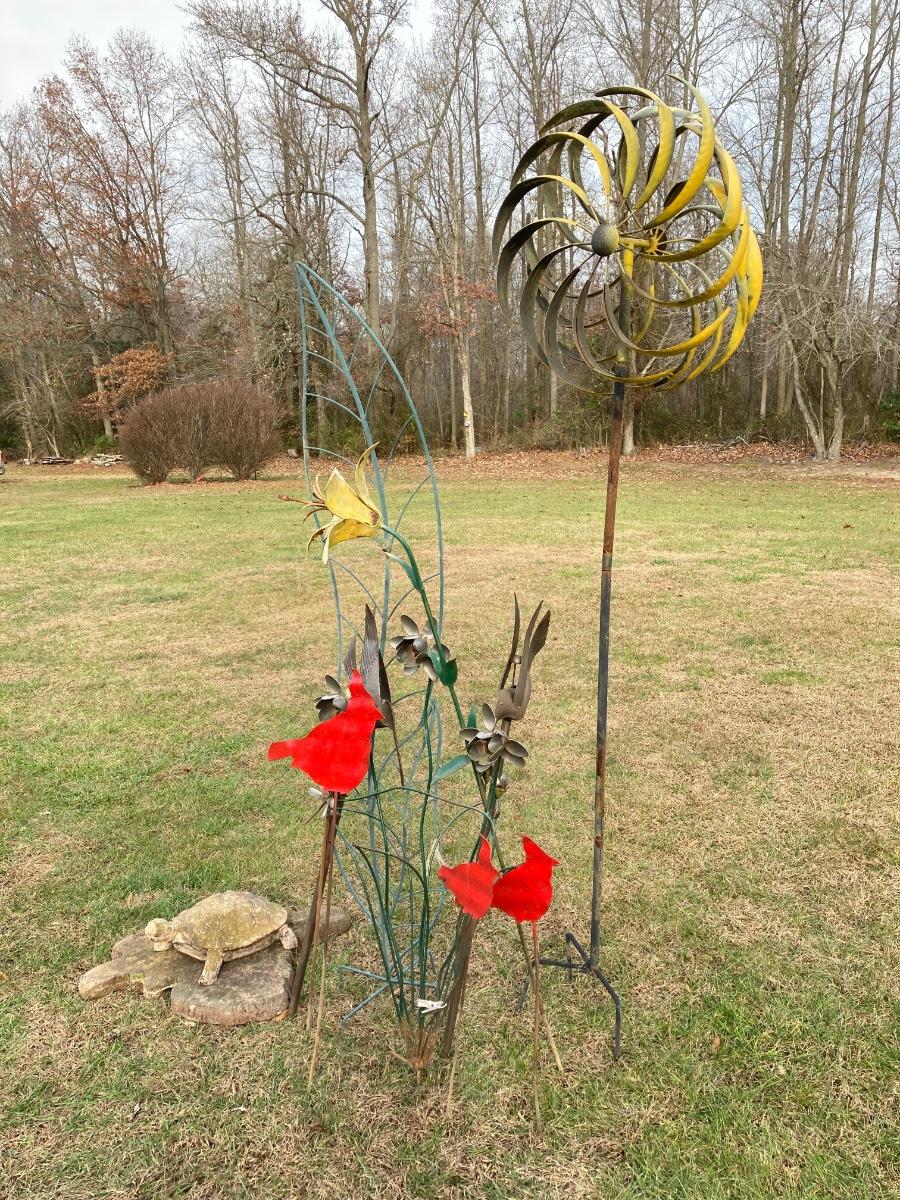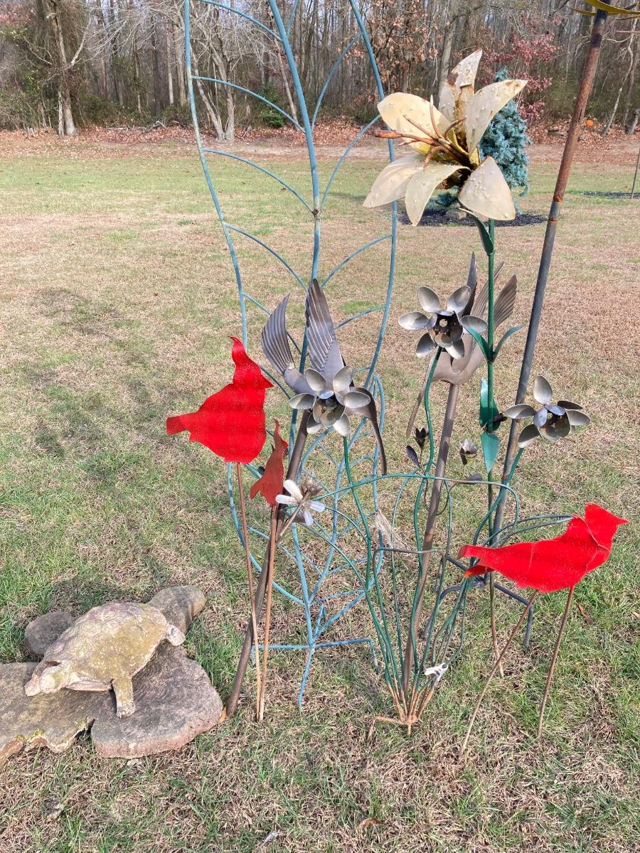 LOT 31J: Outdoor Yard Decor - Concrete Turtle with Metal Flowers and More