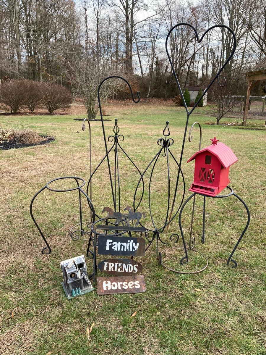 LOT 32J: Collection of Outdoor Plant Holders with Birdhouses and More