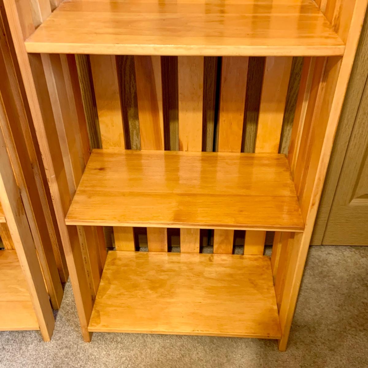 Each shelf measures 21 1/2 x 10 x 55". Please see all pictures as they are the best representation of the items. The pictures show condition, measurements if taken, and what is included in the lot. Due to the large amount that we photograph and the time frame, we are not always able to take measurements. All items unless noted, are pre-owned and have been used. If you purchased furniture, you must bring help. We do not allow one person to carry large furniture out on their own. Bring help, tools and a truck for the safety of our client’s homes, and your personal safety. Any damages that result to the property including walls, and floors due to moving of the furniture will be charged to the buyer. Company policy. Thank you.
