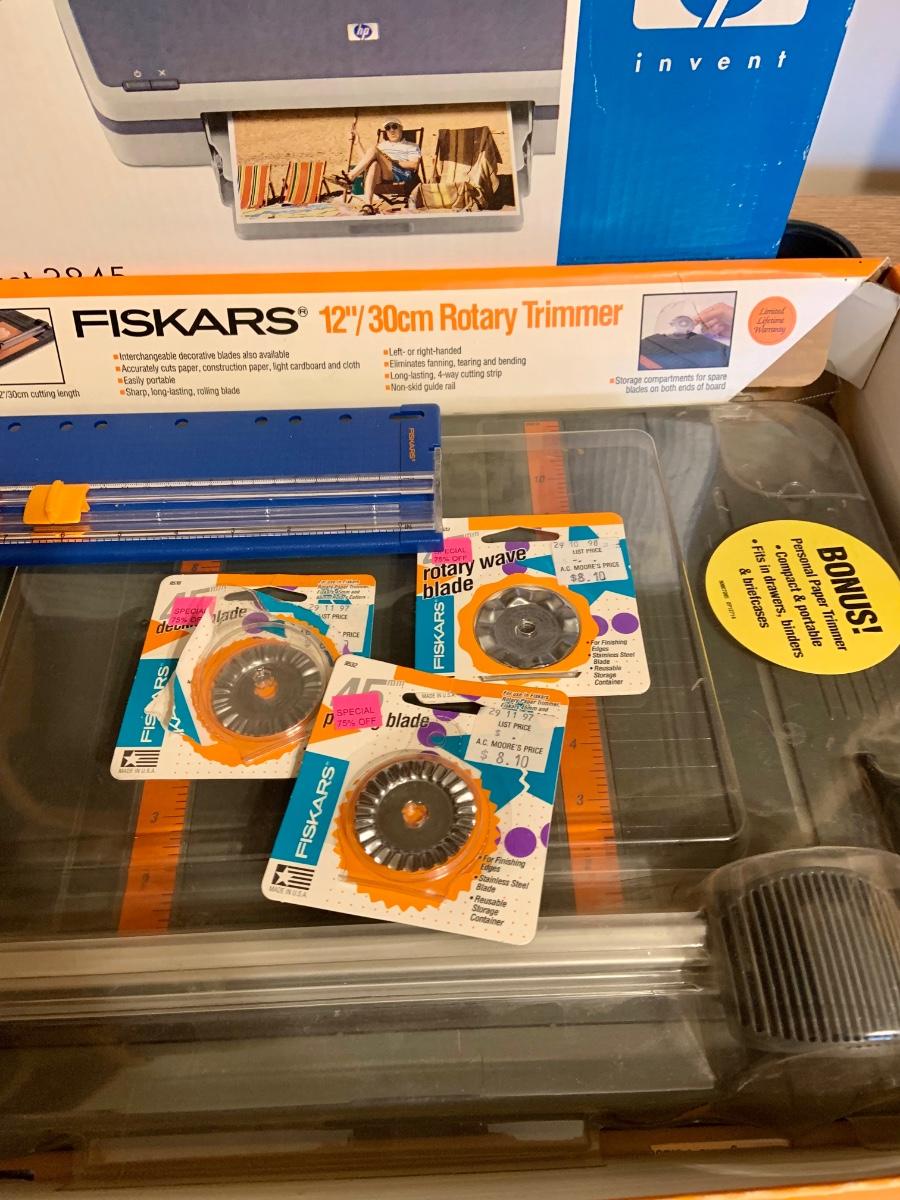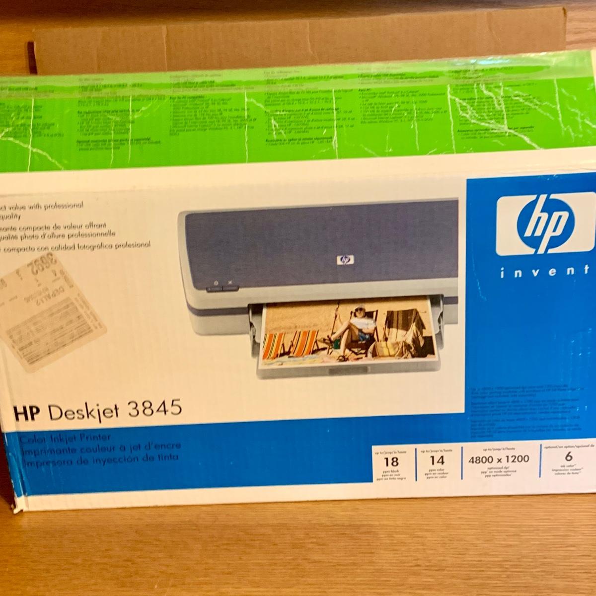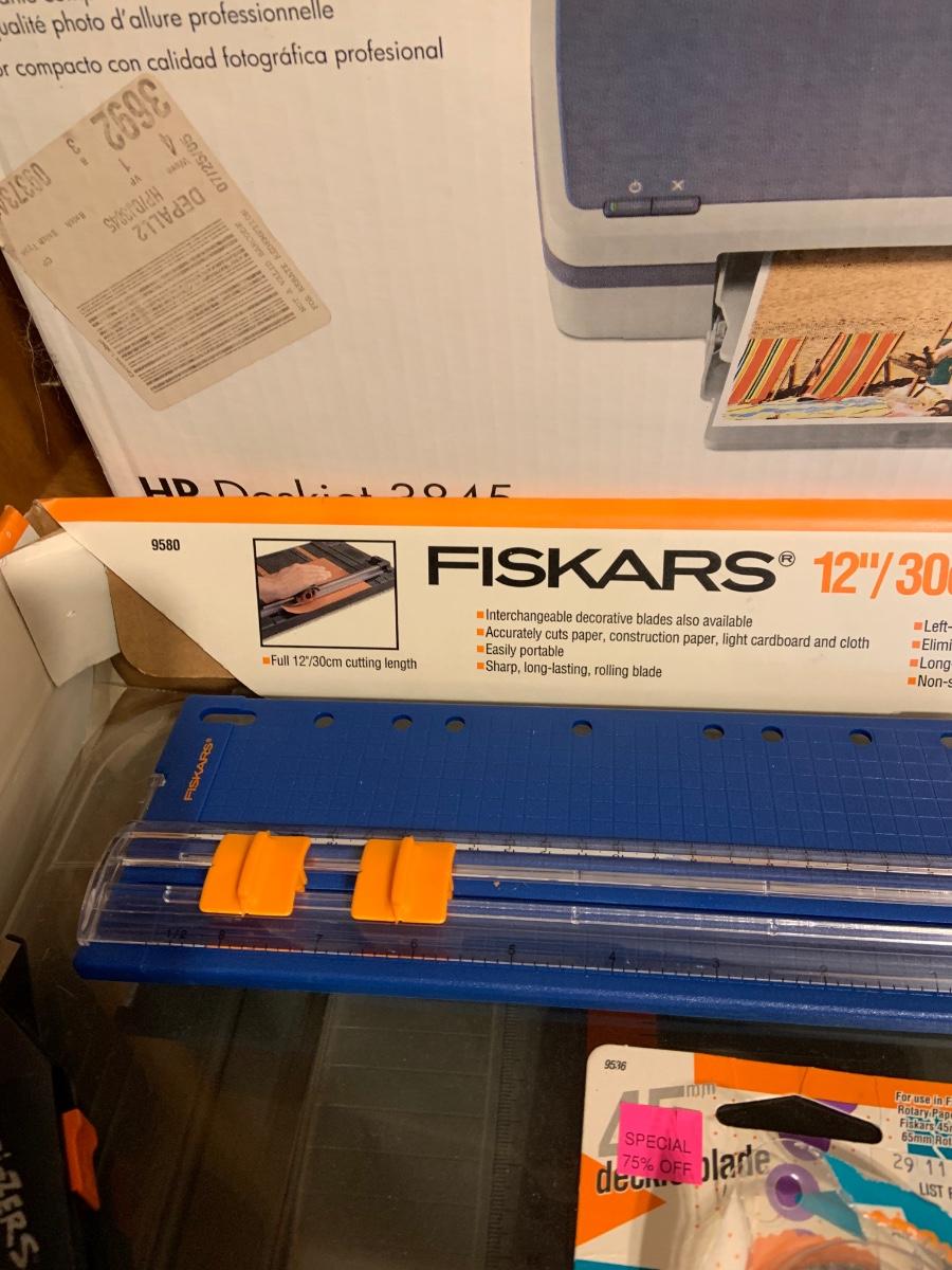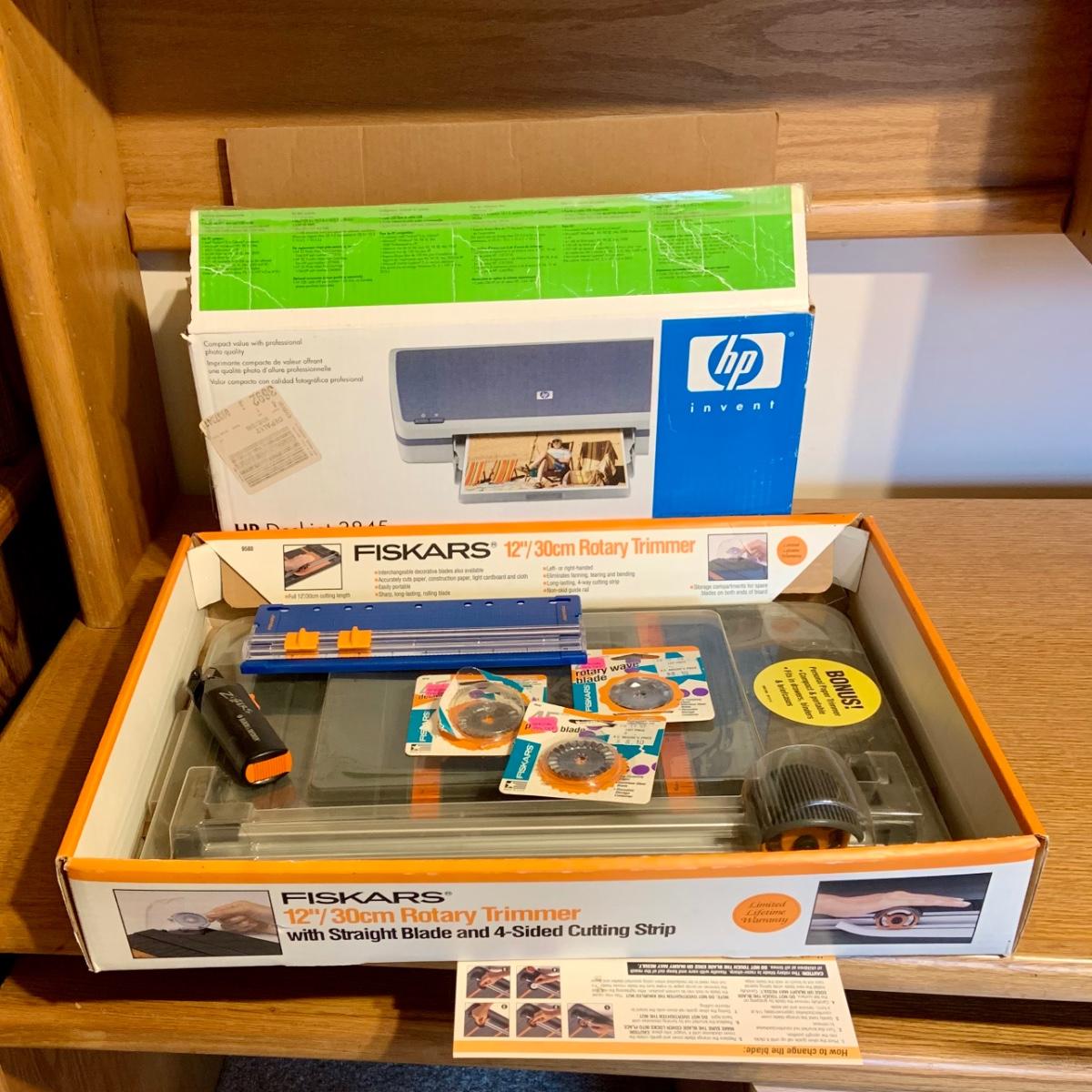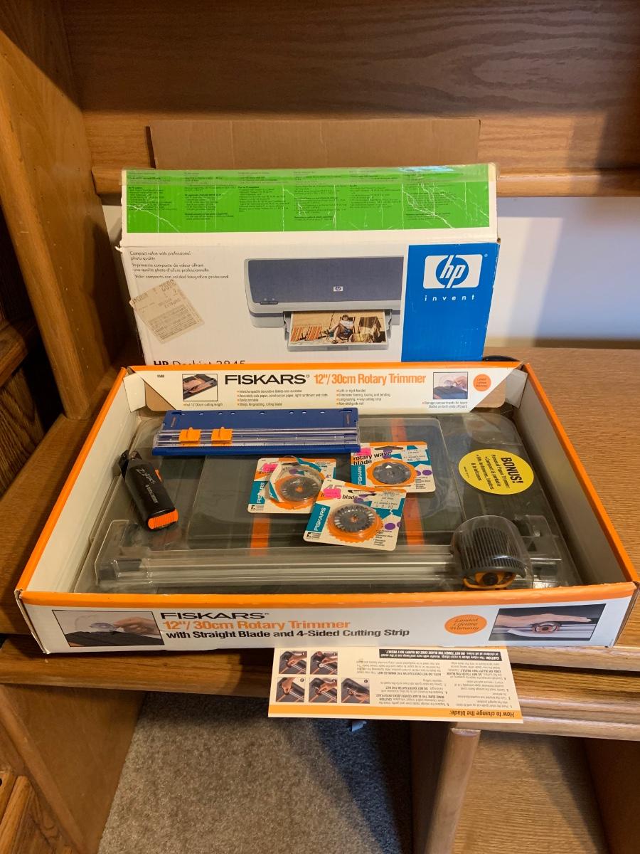 LOT:68G: New Used HP Deskjet 3845 Pinter and Ink Cartridges, and a Piskars Paper Cutter in Original Box