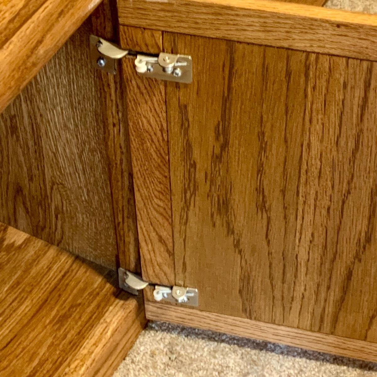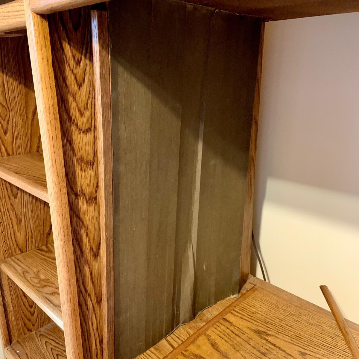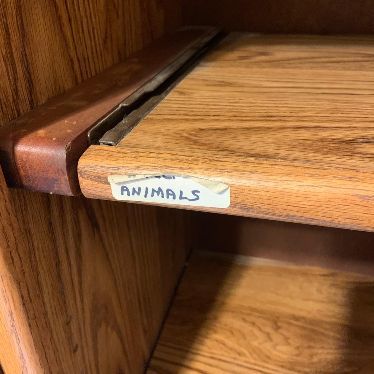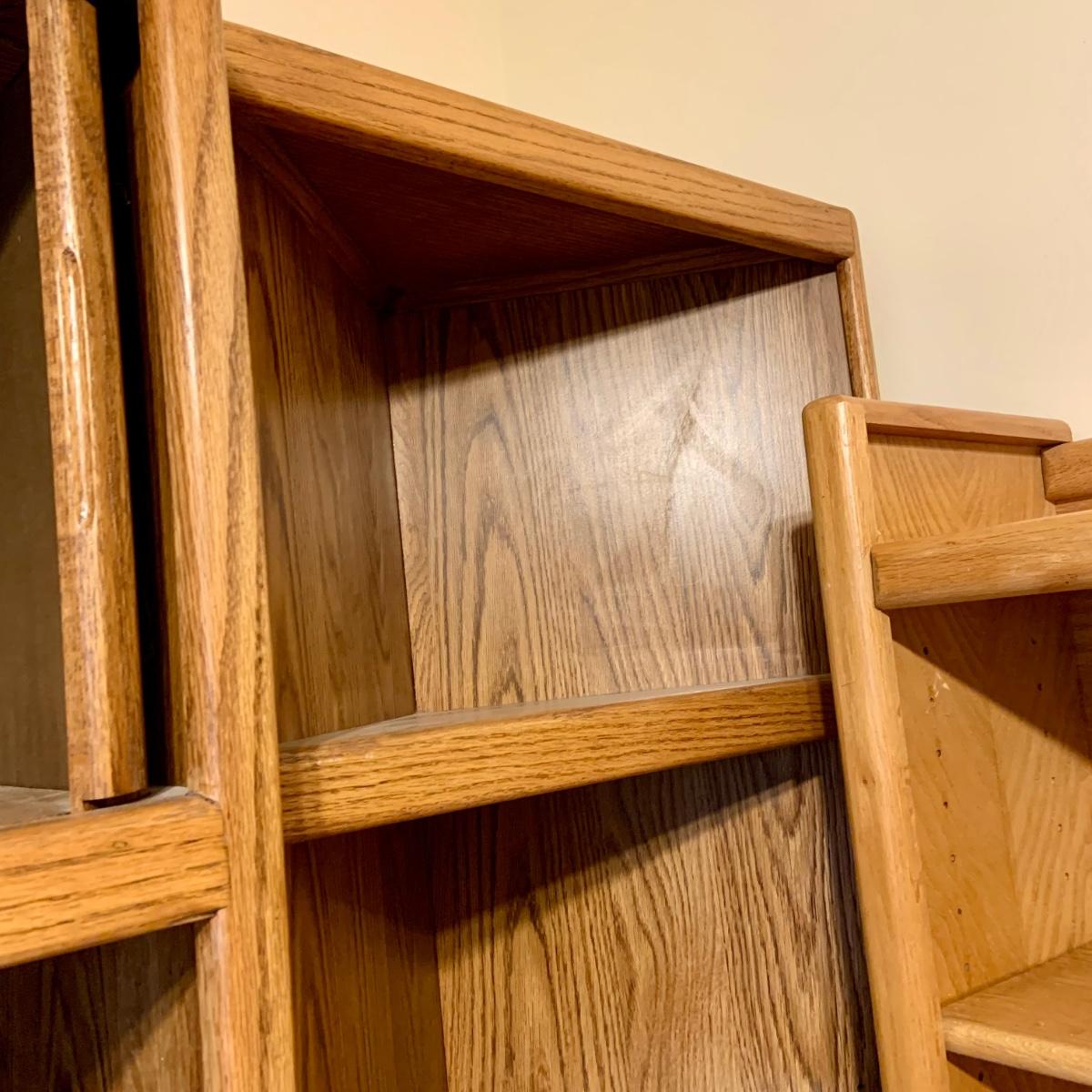 One of sliding doors to the TV stand won't close and needs repair. There are also labels on the shelves that need removed. The 2 shelves with the top sliding doors measure 23 x 18 s 71" each. The TV stand is 32 x 22 x 71" and the corner shelf is 22 x 10 x 71" Please see all pictures as they are the best representation of the items. The pictures show condition, measurements if taken, and what is included in the lot. Due to the large amount that we photograph and the time frame, we are not always able to take measurements. All items unless noted, are pre-owned and have been used. If you purchased furniture, you must bring help. We do not allow one person to carry large furniture out on their own. Bring help, tools and a truck for the safety of our client’s homes, and your personal safety. Any damages that result to the property including walls, and floors due to moving of the furniture will be charged to the buyer. Company policy. Thank you.