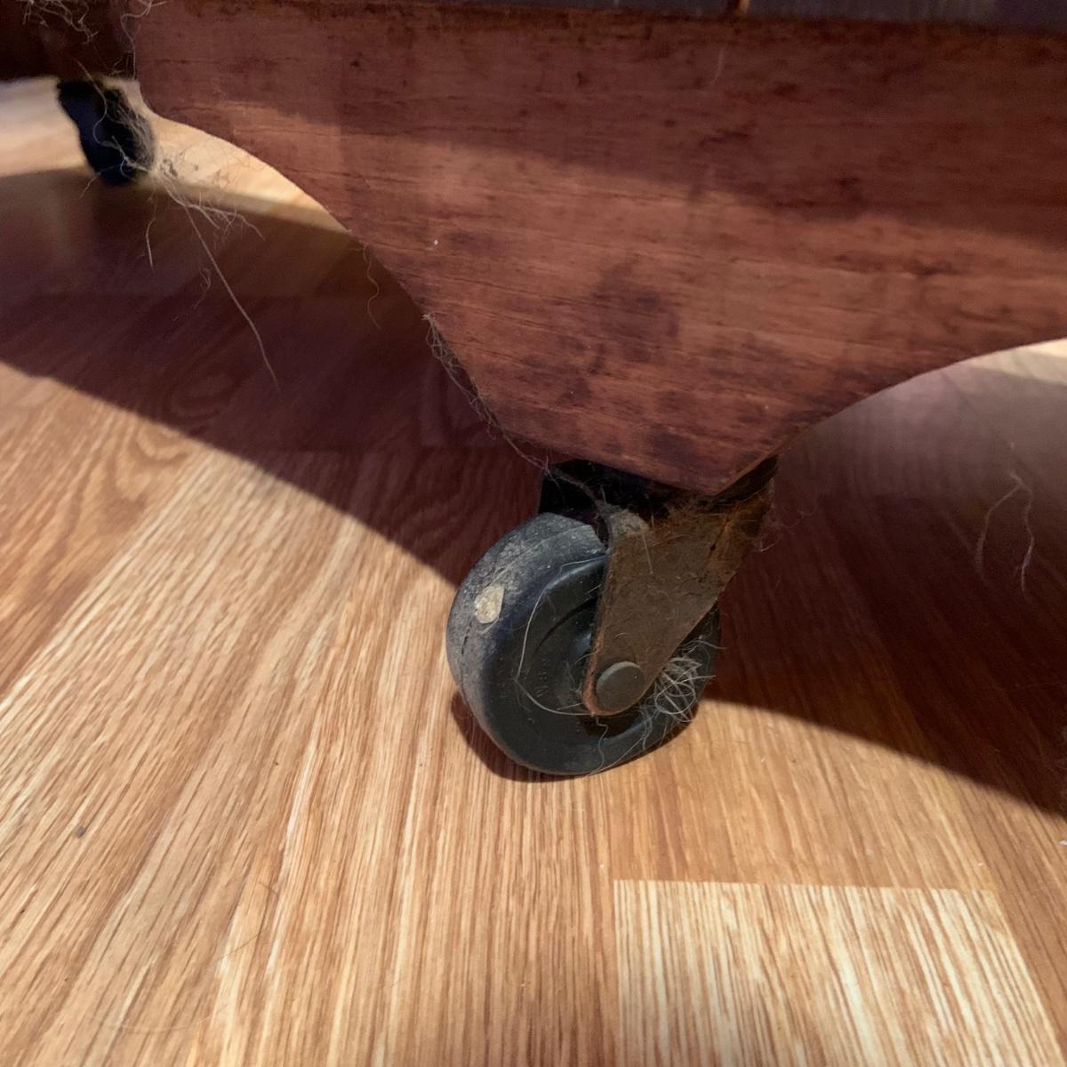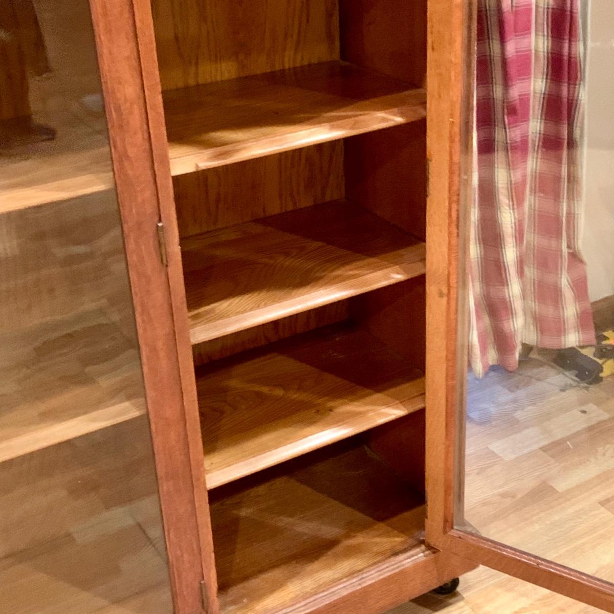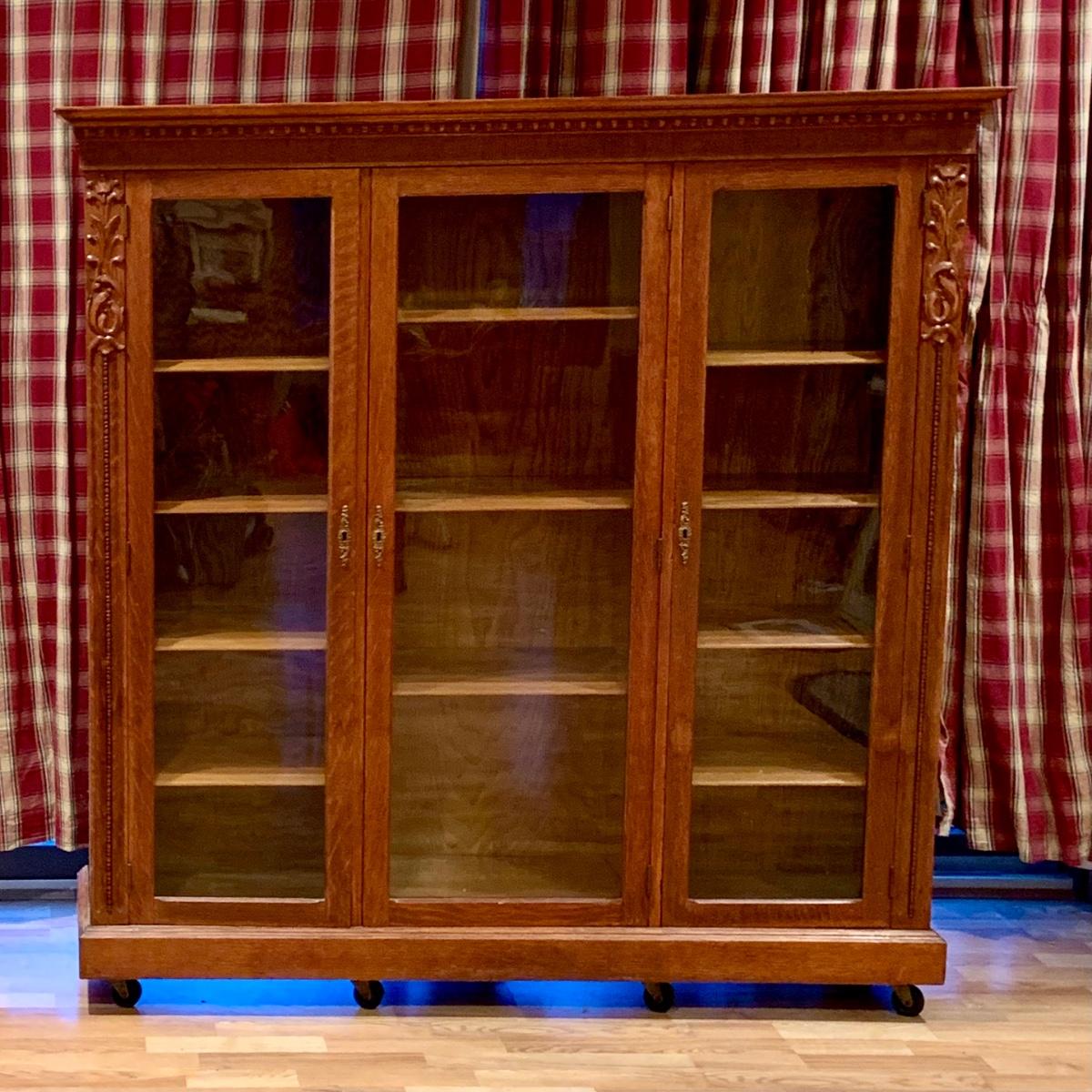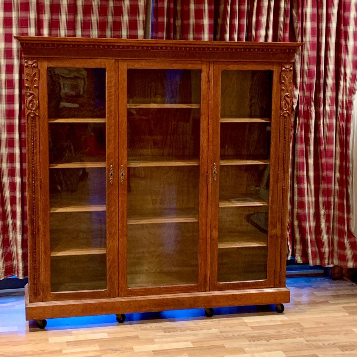 LOT:80G: Vintage Victorian Style Wooden Triple Book Shelf with Wheels.