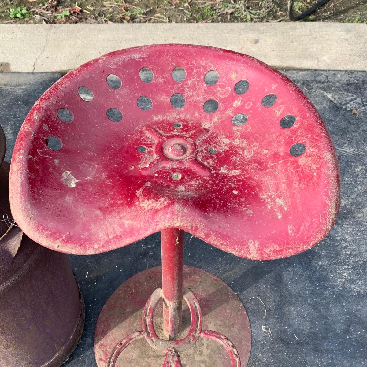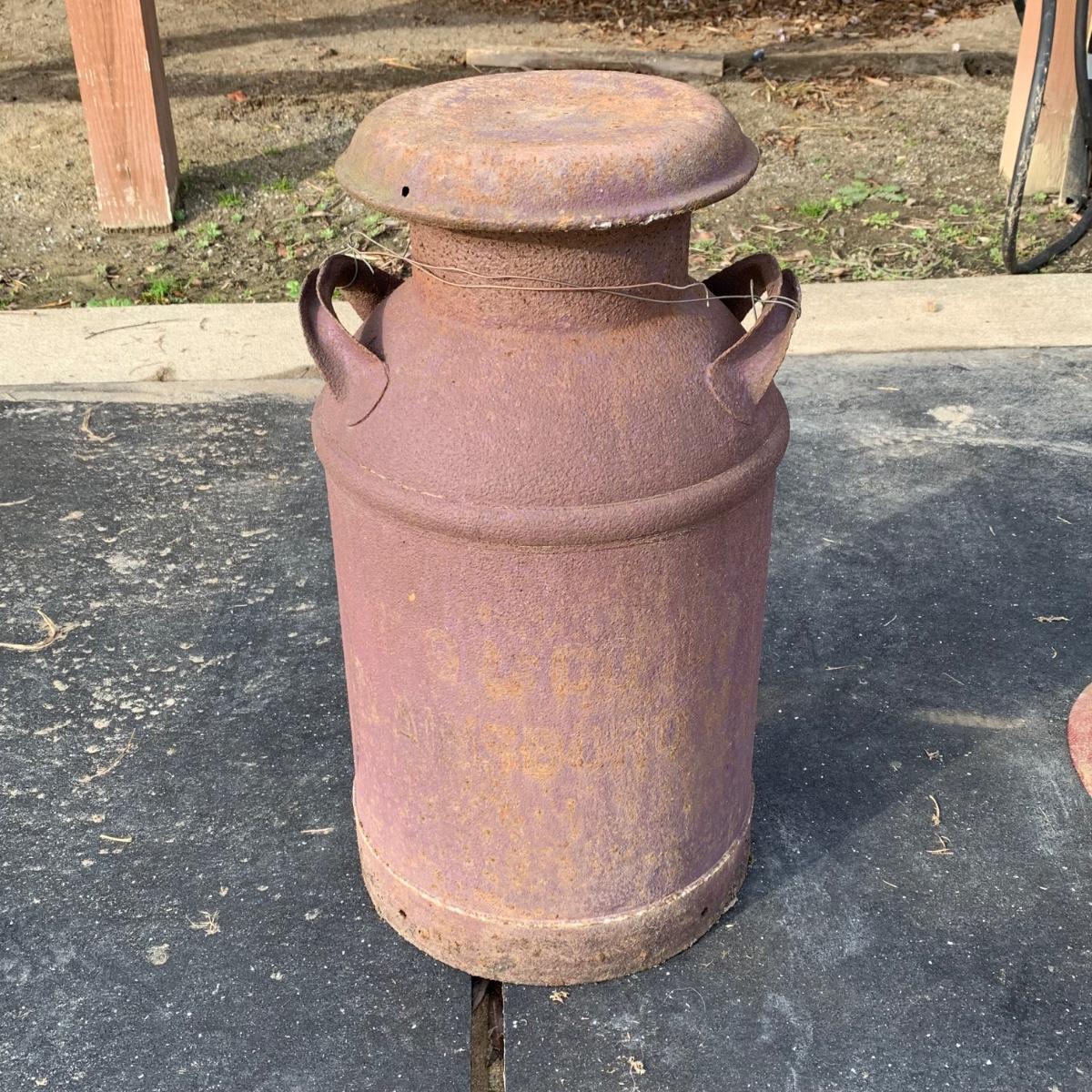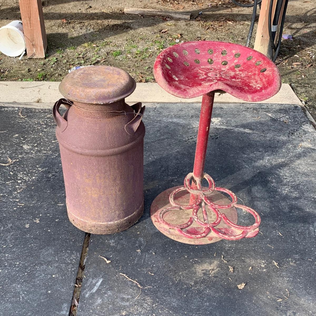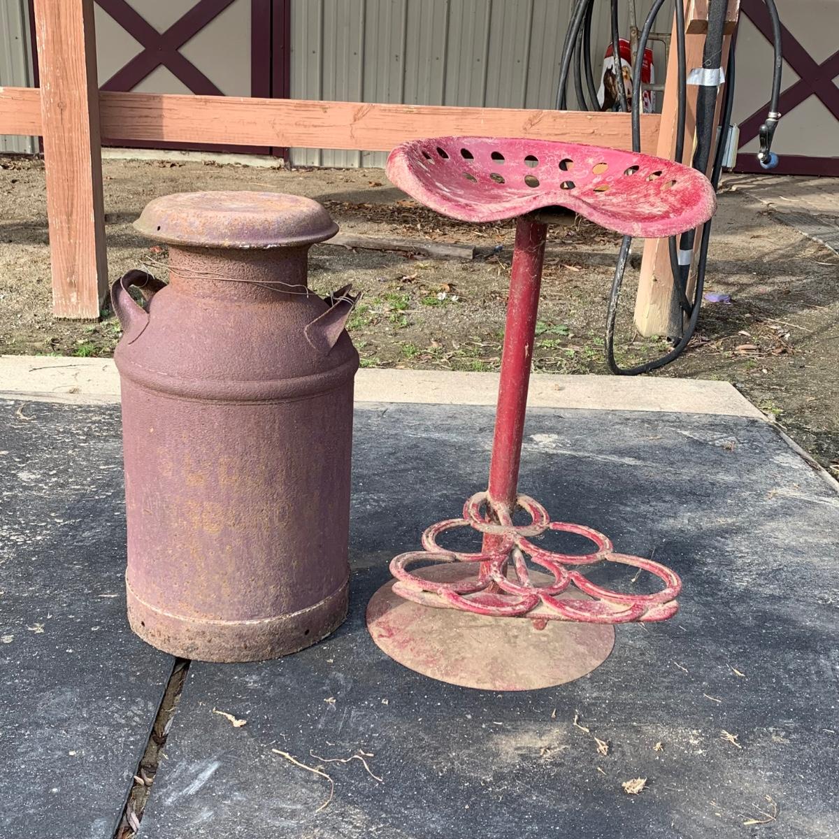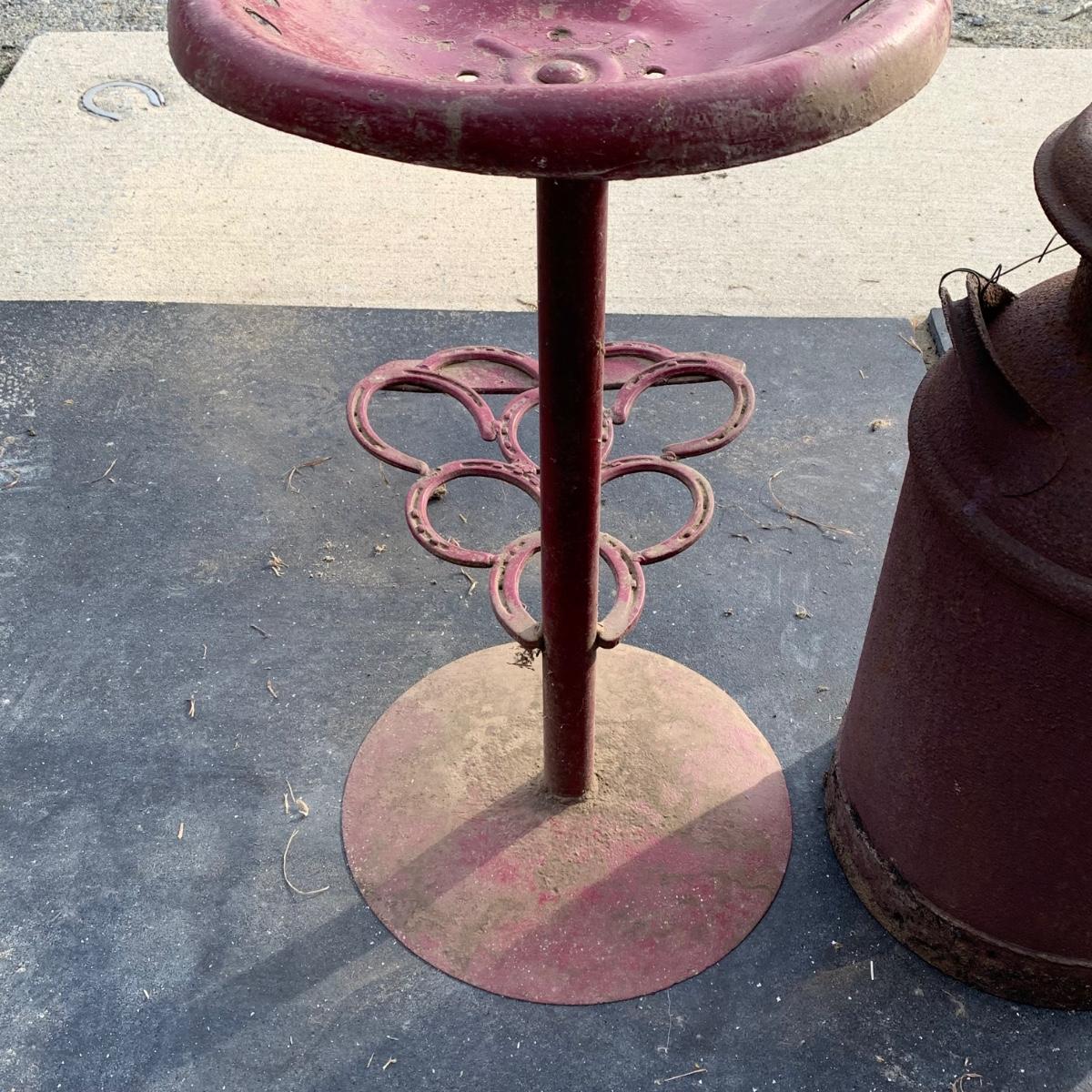 LOT 84R: Vintage Milk Can & Tracker Seat/Horseshoe Stool